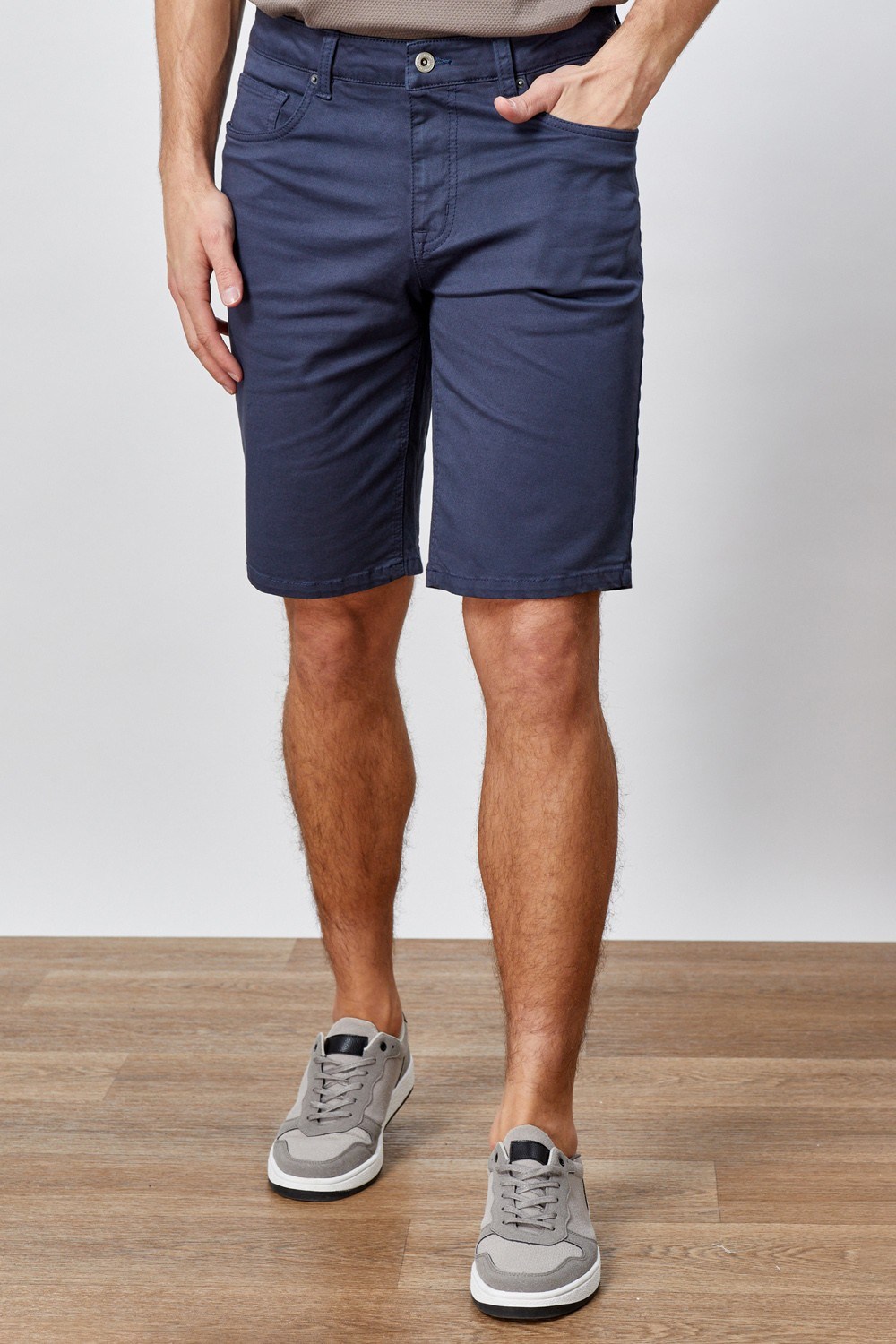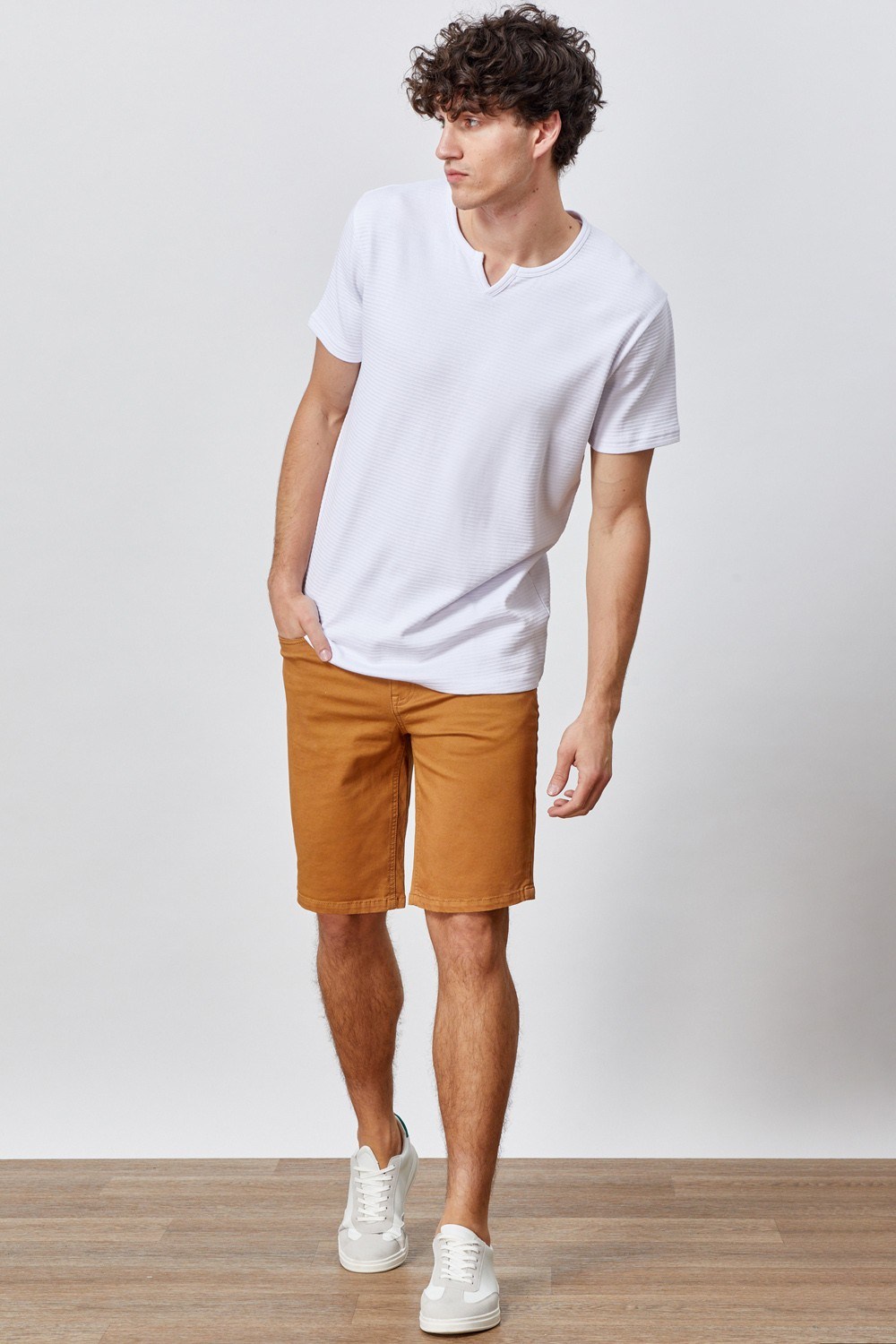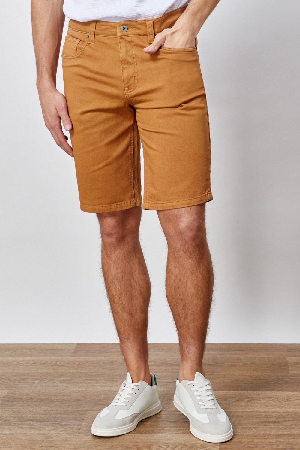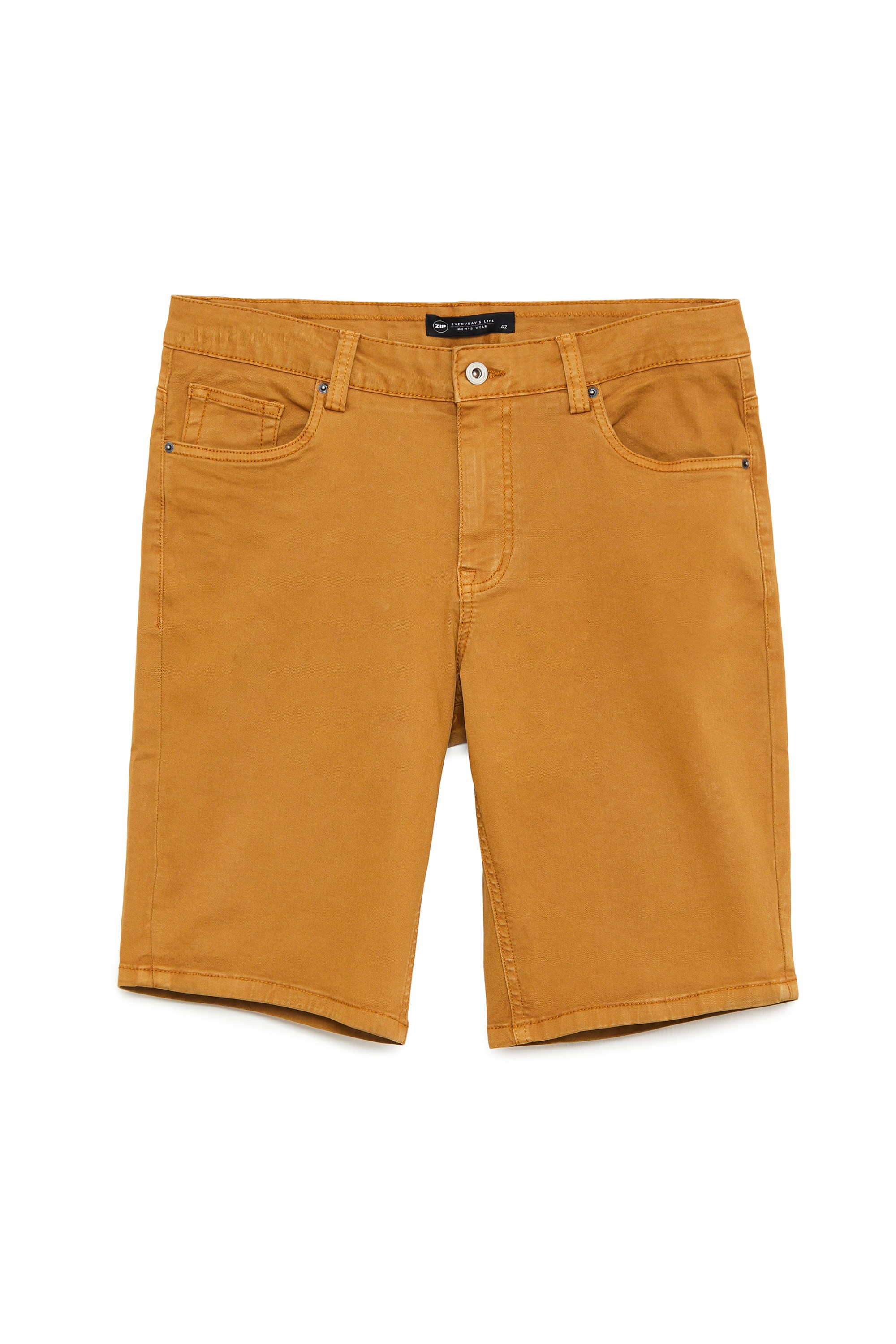 | מכנסי ברמודה "5 כיסים" בעיצוב ג'ינסי בד צבוע עם שטיפת GARMENT WASHהרכב בד:98% כותנה, 2% אלסטןגובה דוגמן: 192 ס"ממידה דוגמן:L |