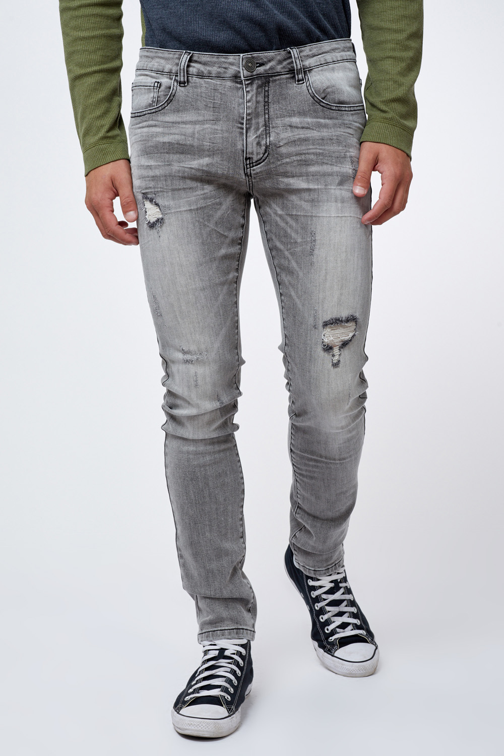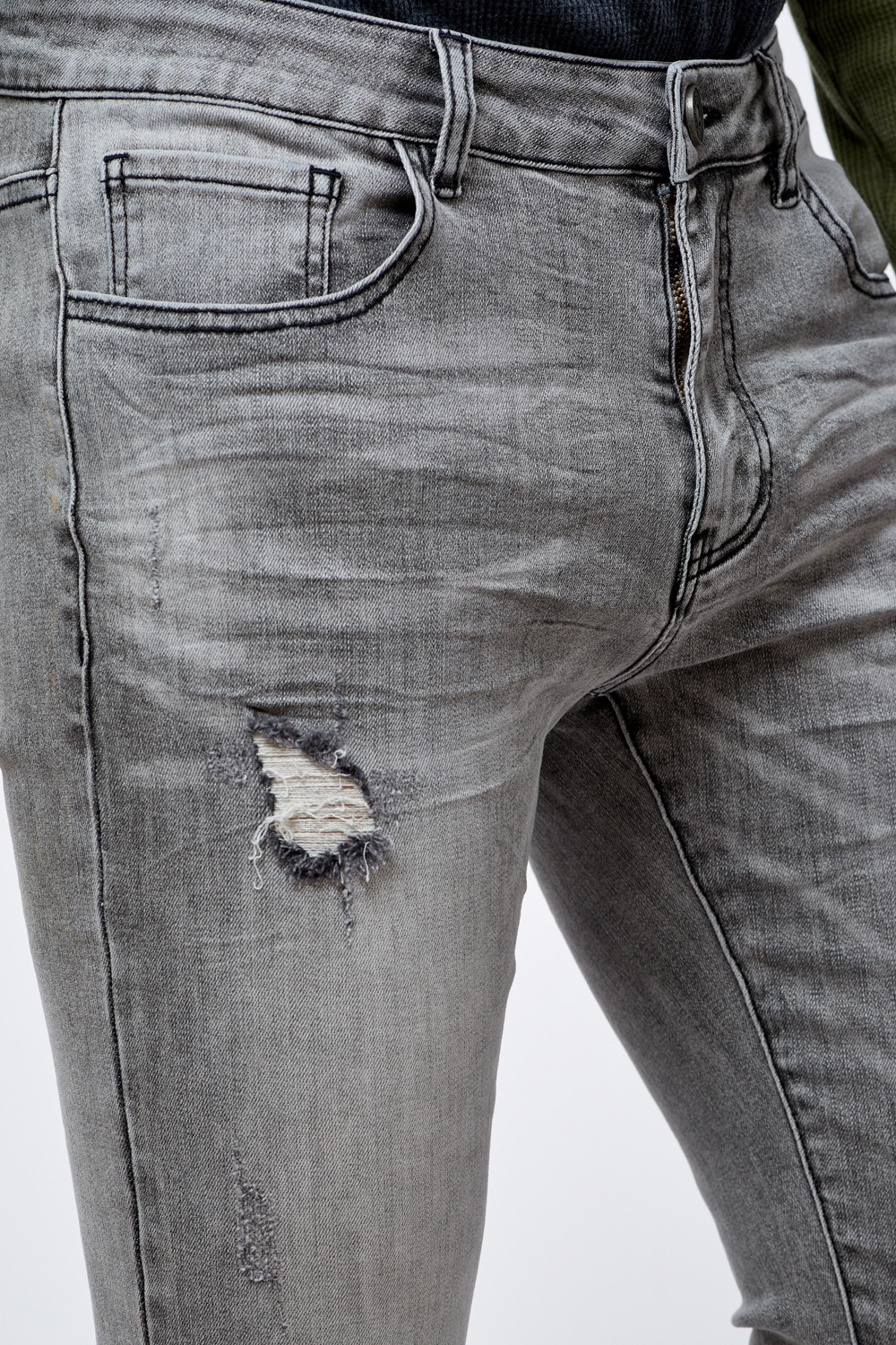 גינס אפור משופשף עם קרעים