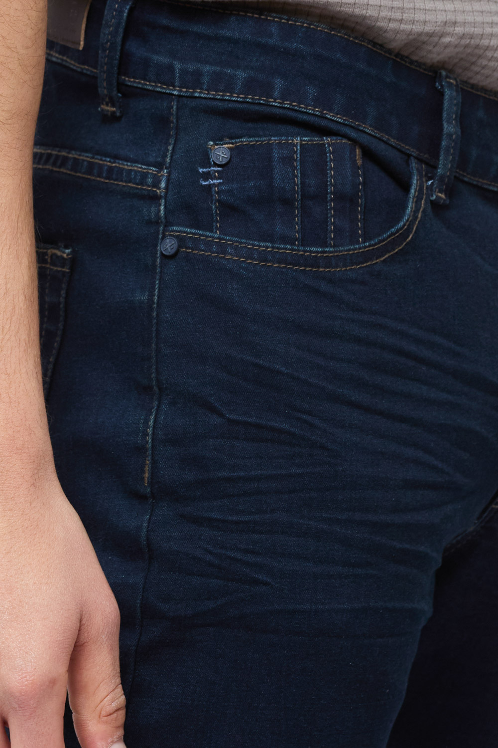 ג'ינס בסיס כחול כהה חלק בגזרה צרה