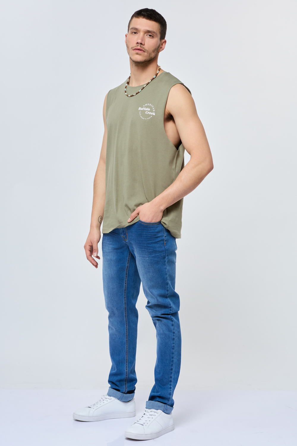 ג'ינס בסיס כחול חלק בגזרה צרה