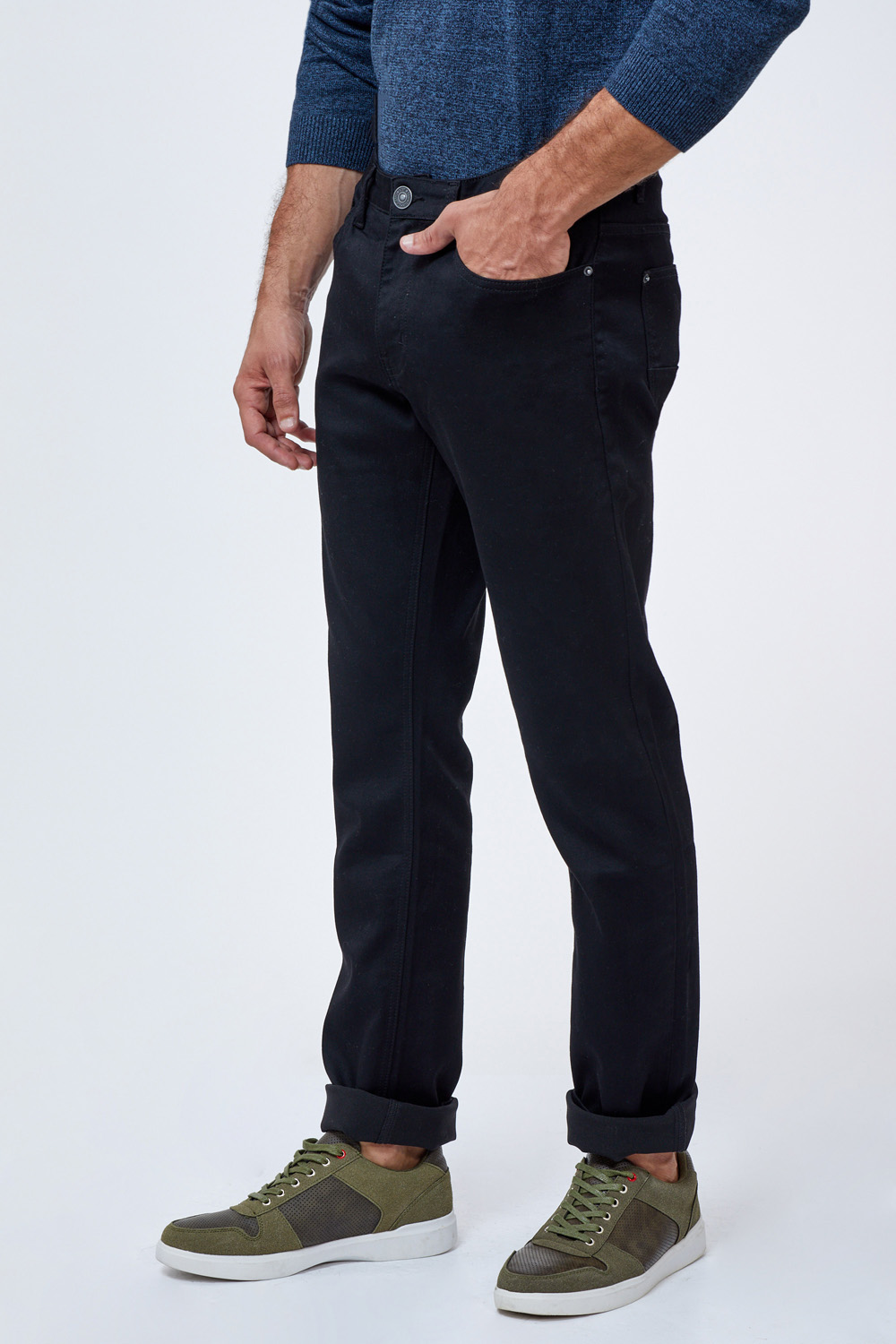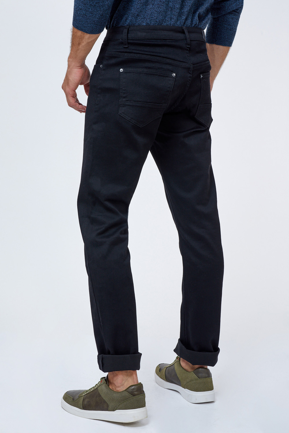 ג'ינס שחור חלק בסיסי גזרה ישרה/רחבה