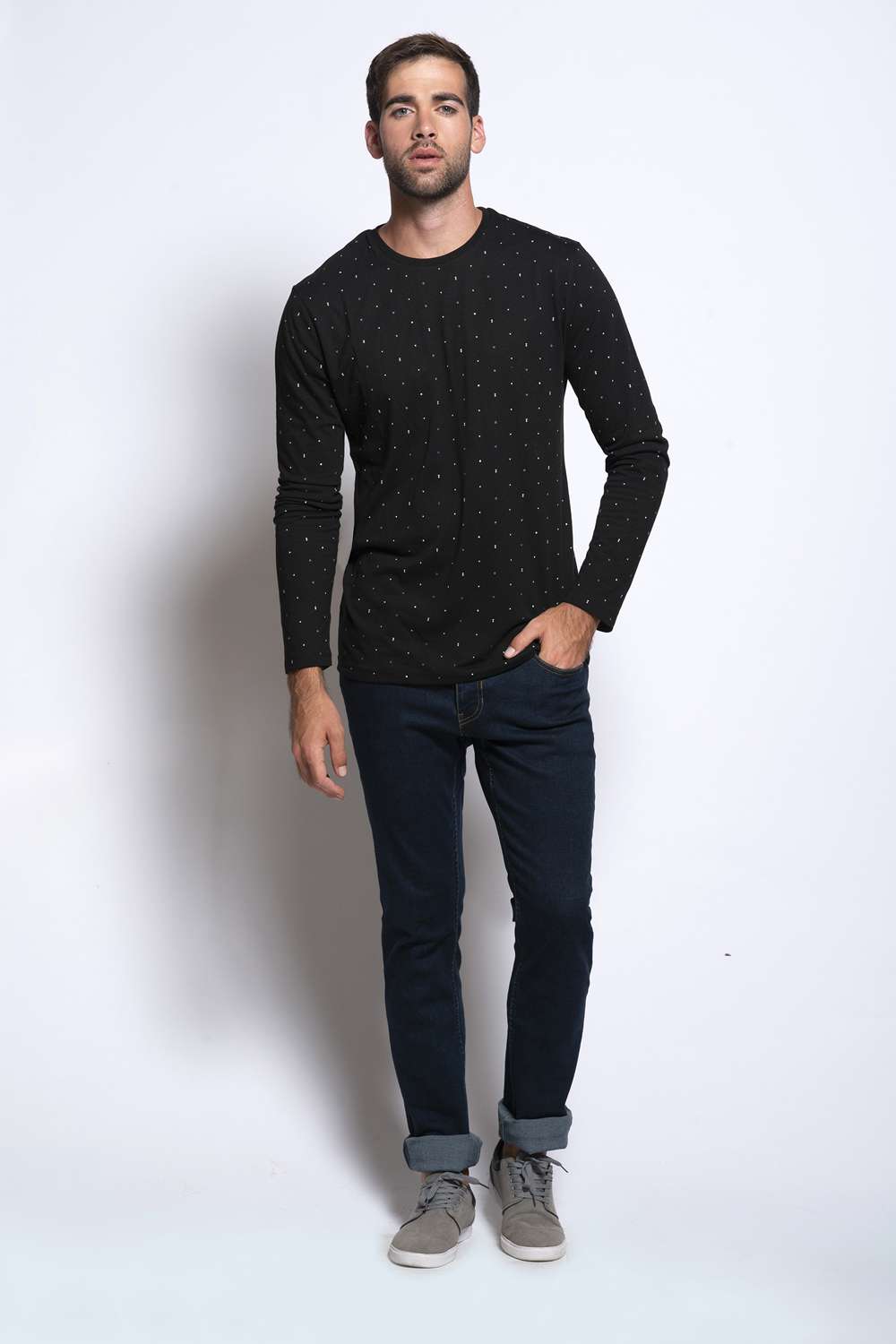 חולצת טי עם מפתח צוואר Y בצבע קונטרסטי