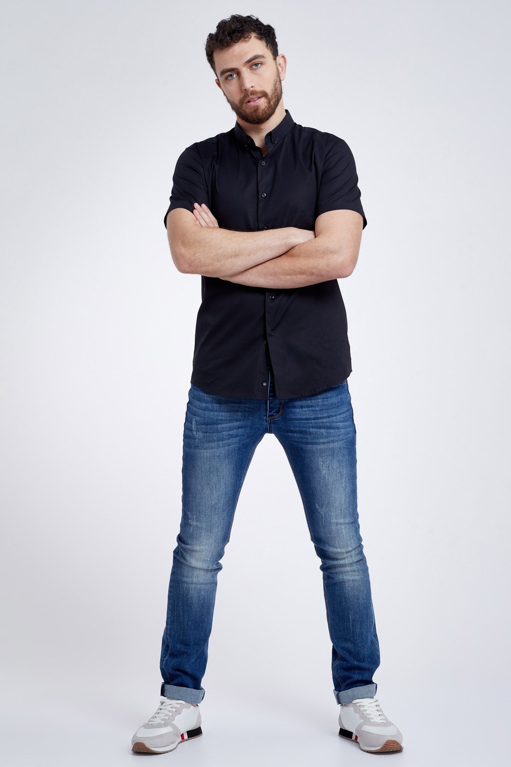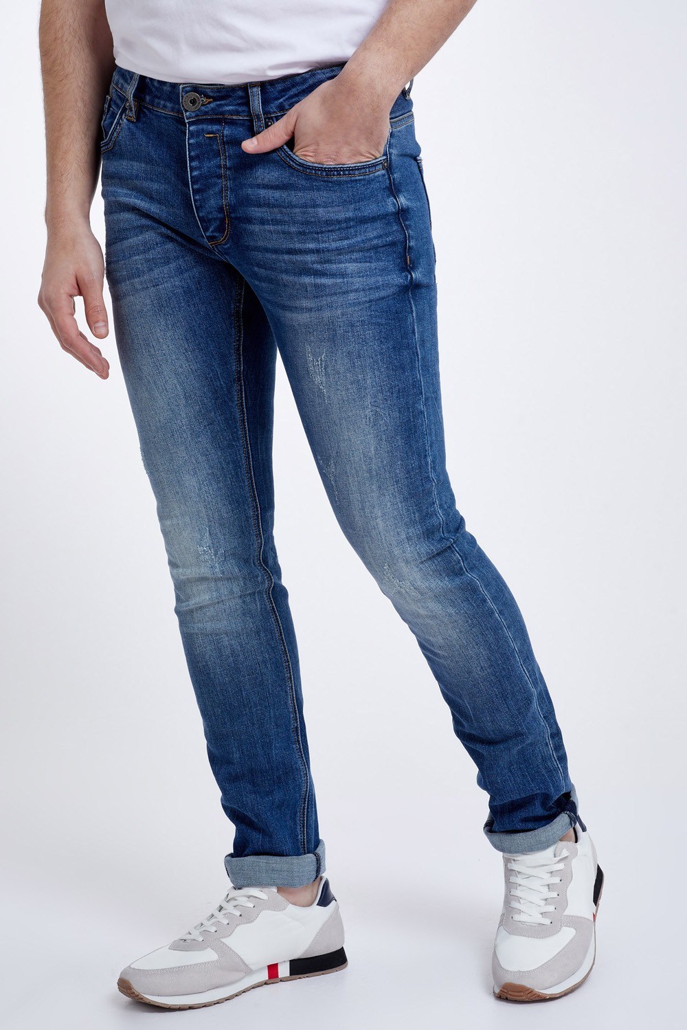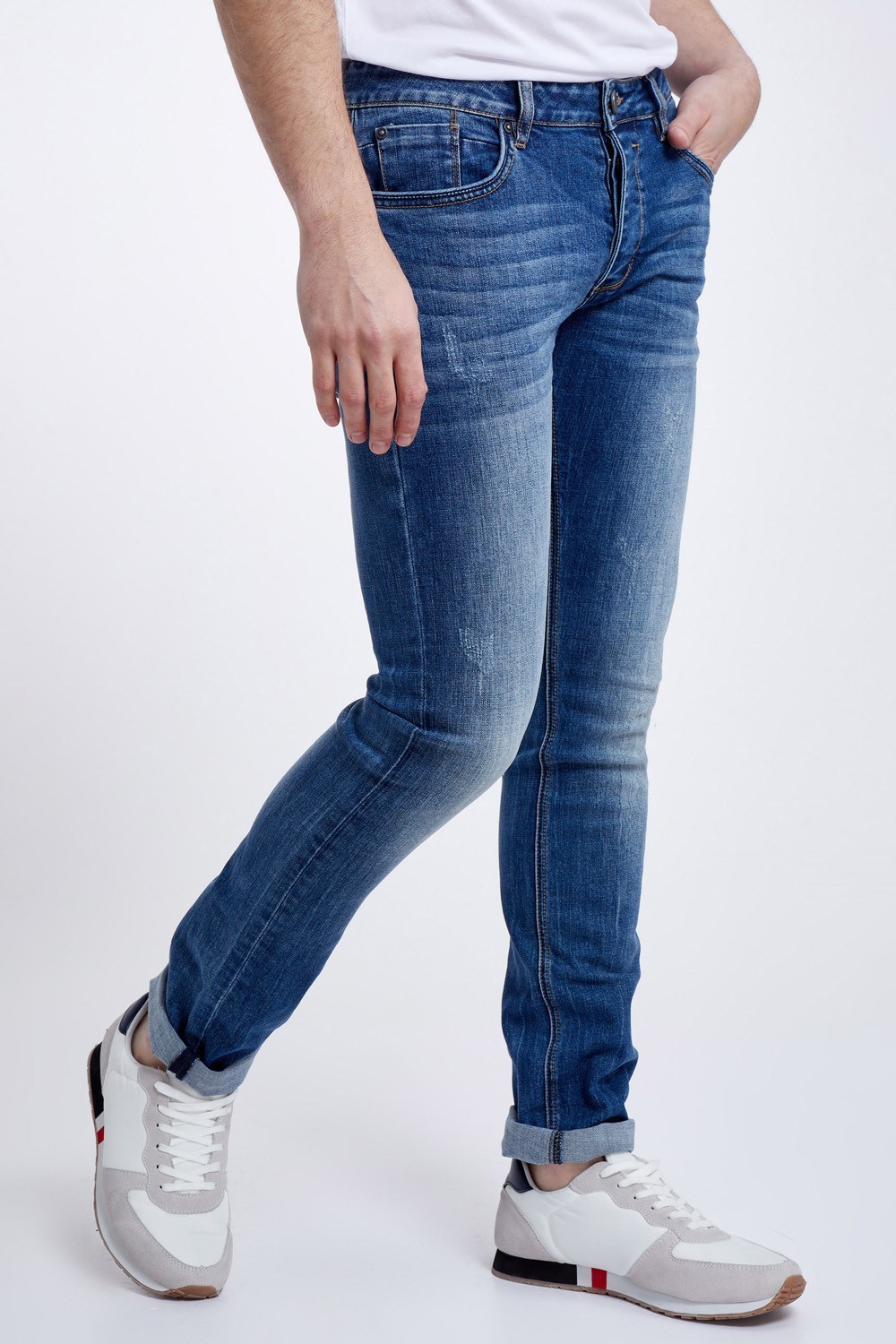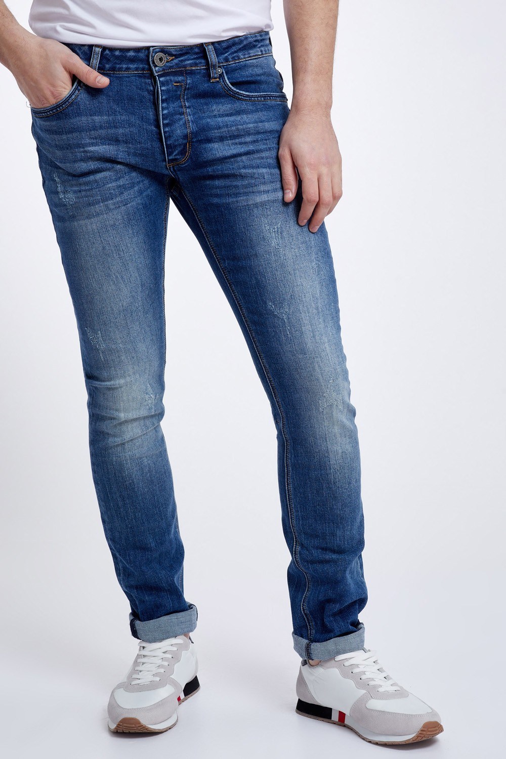 ג'ינס כחול עם שפשופים קלים