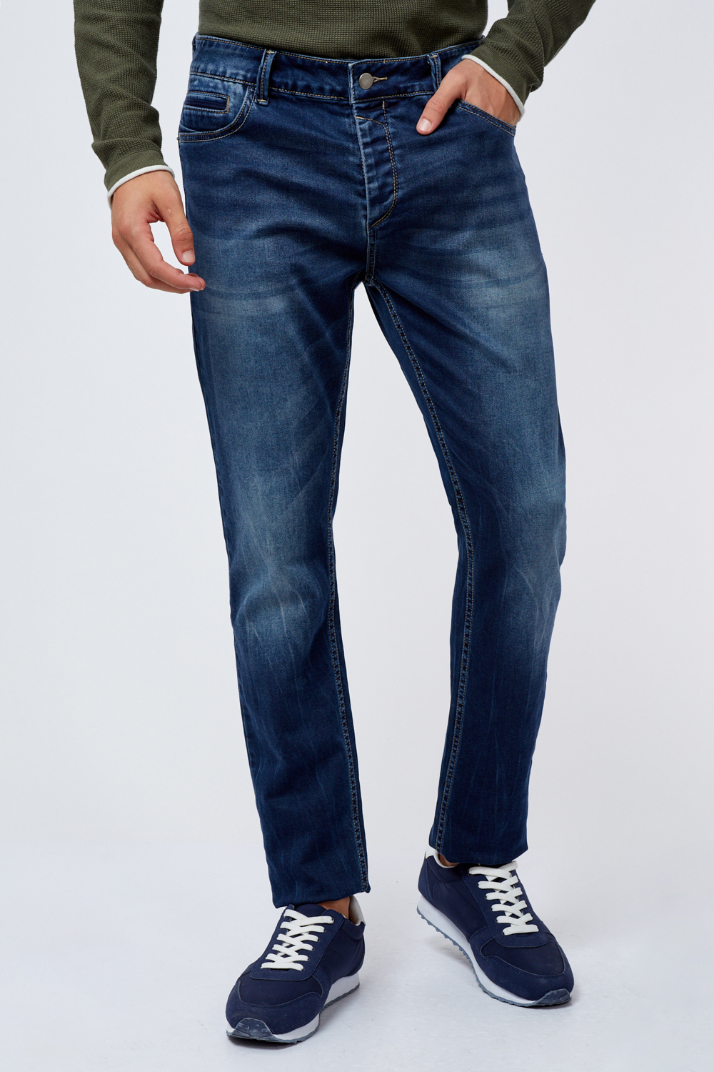 ג'ינס כחול כהה עם שטיפה