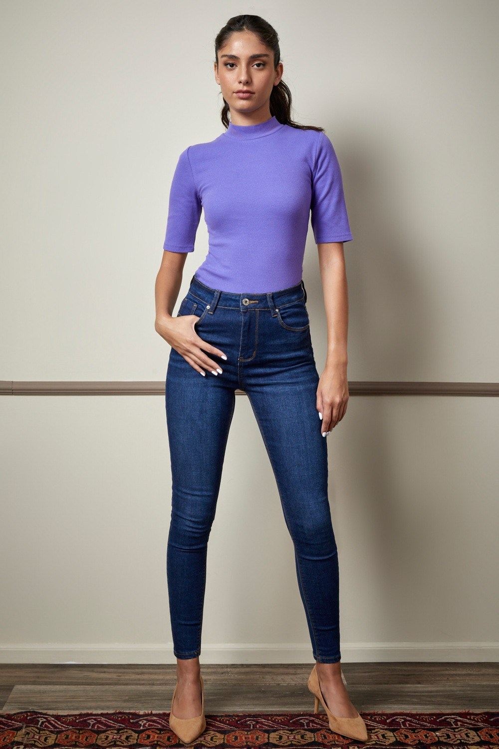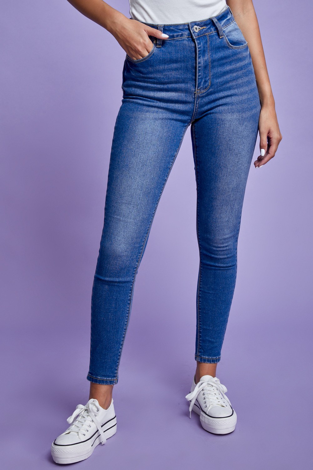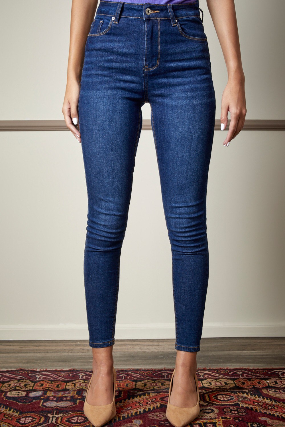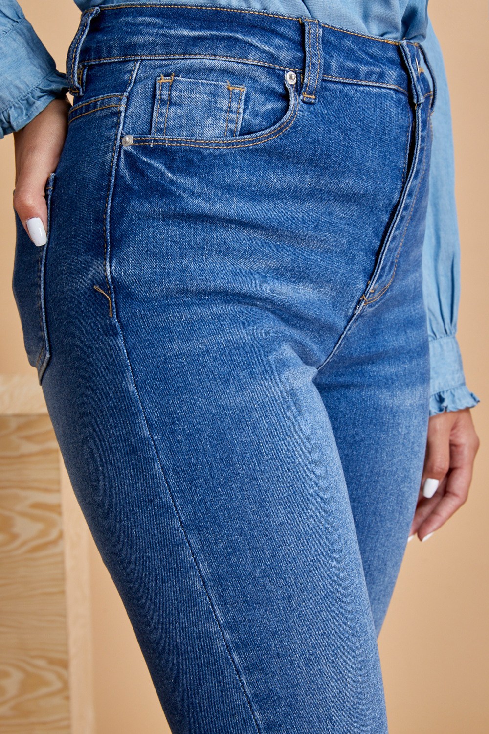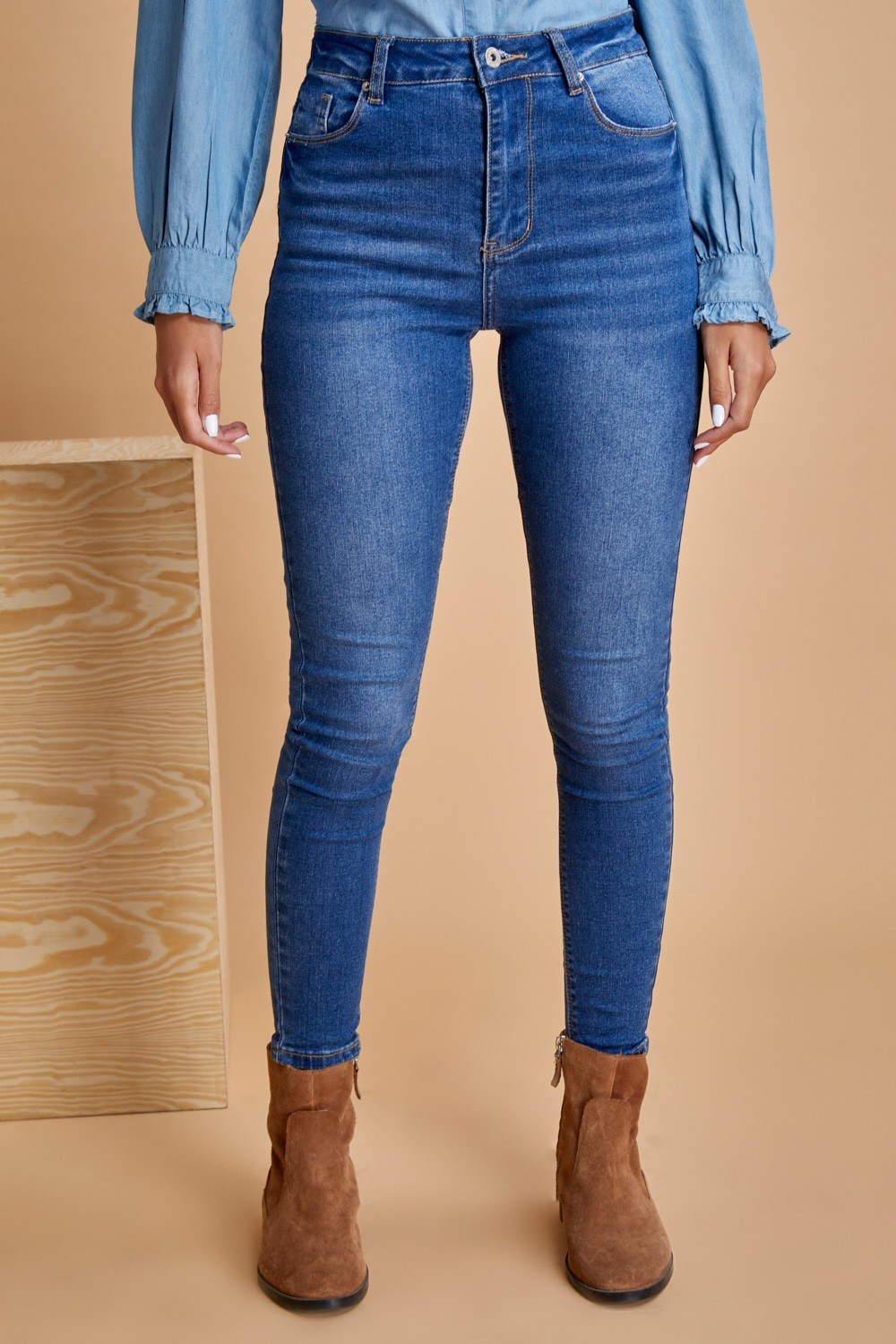 ג'ינס בגזרת סקיני עם מותן גבוהה