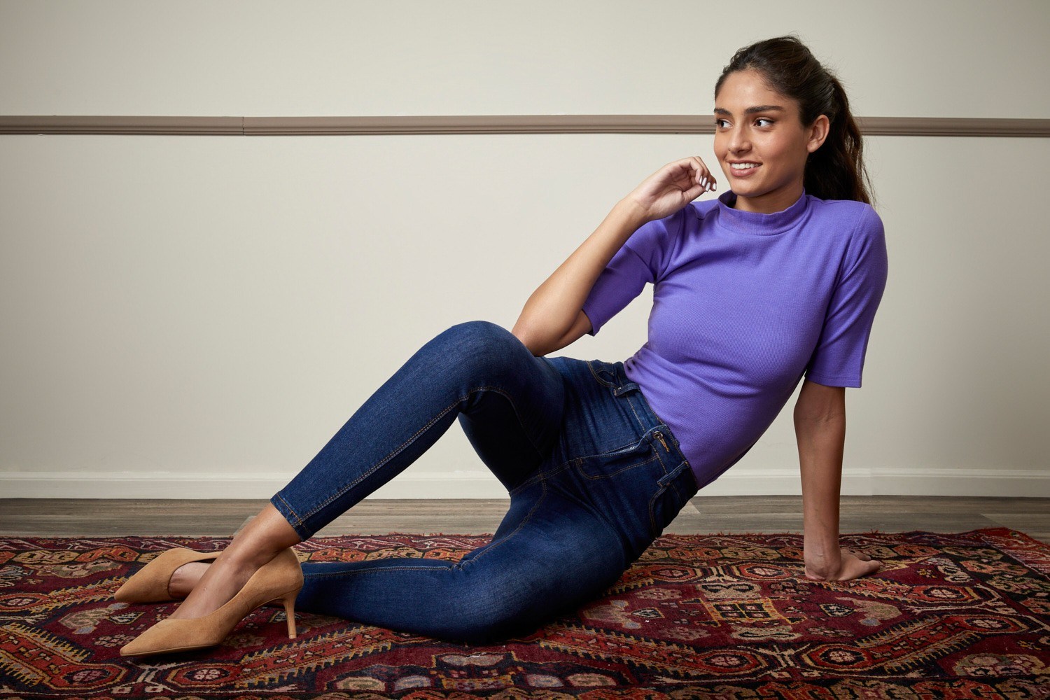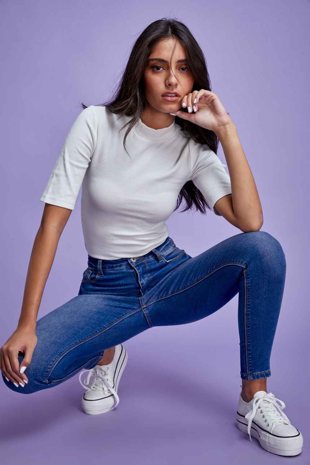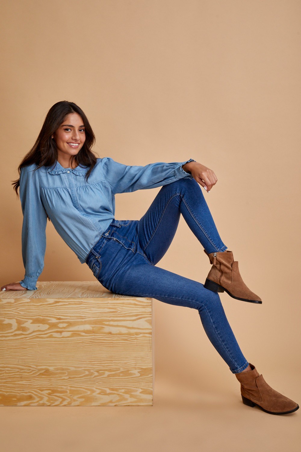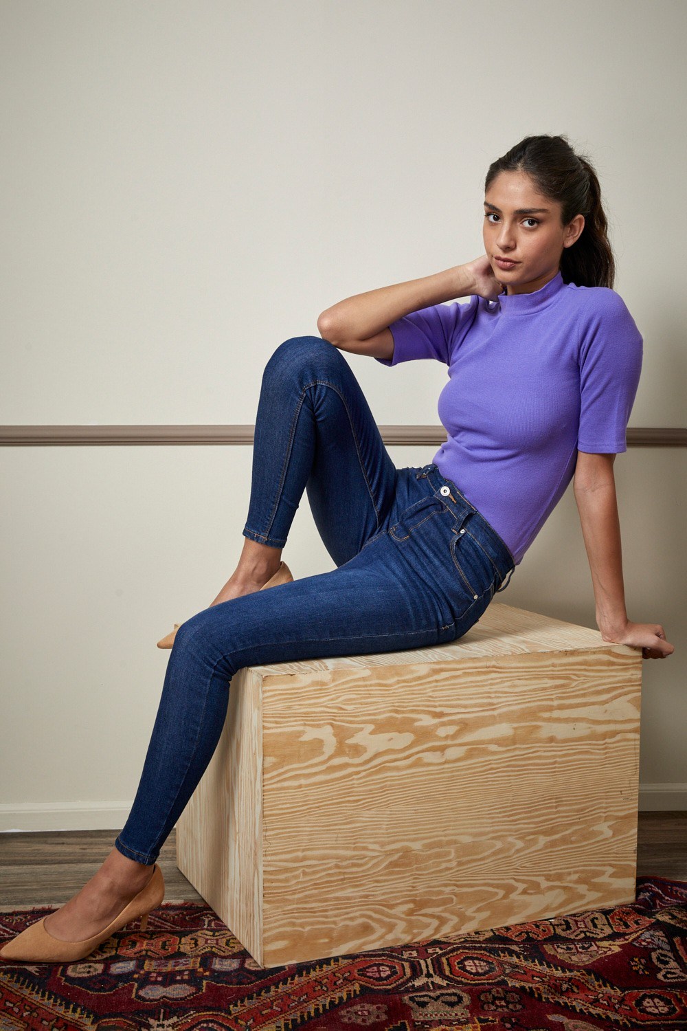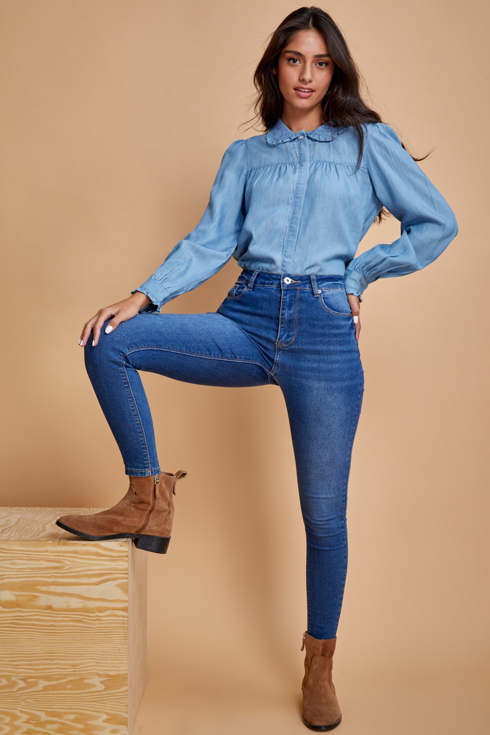 ג'ינס בגזרת סקיני עם מותן גבוהה