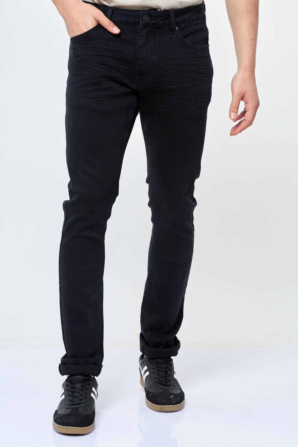 ג'ינס שחור חלק בסיסי גזרה צרה