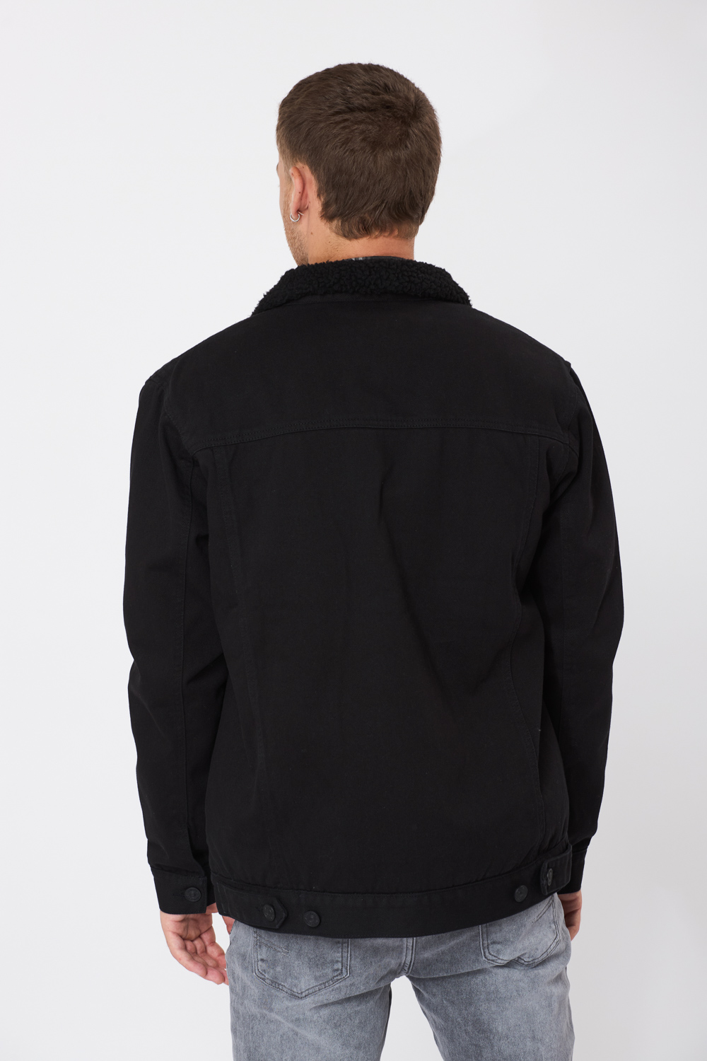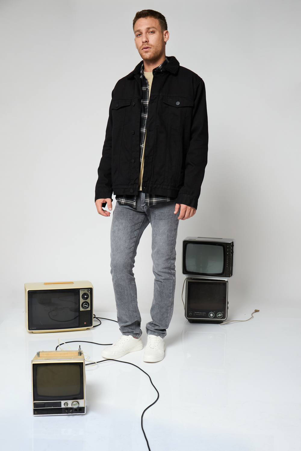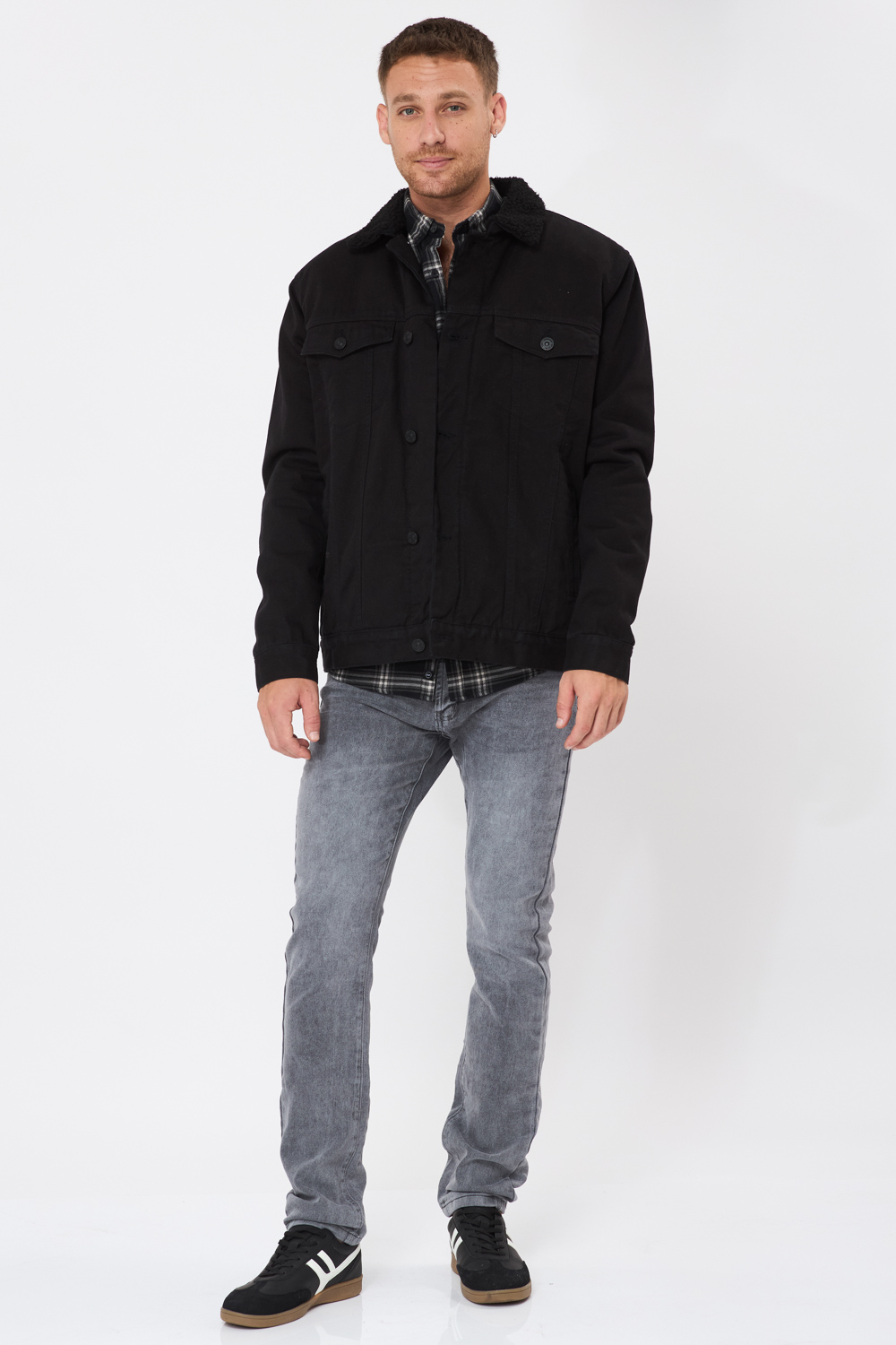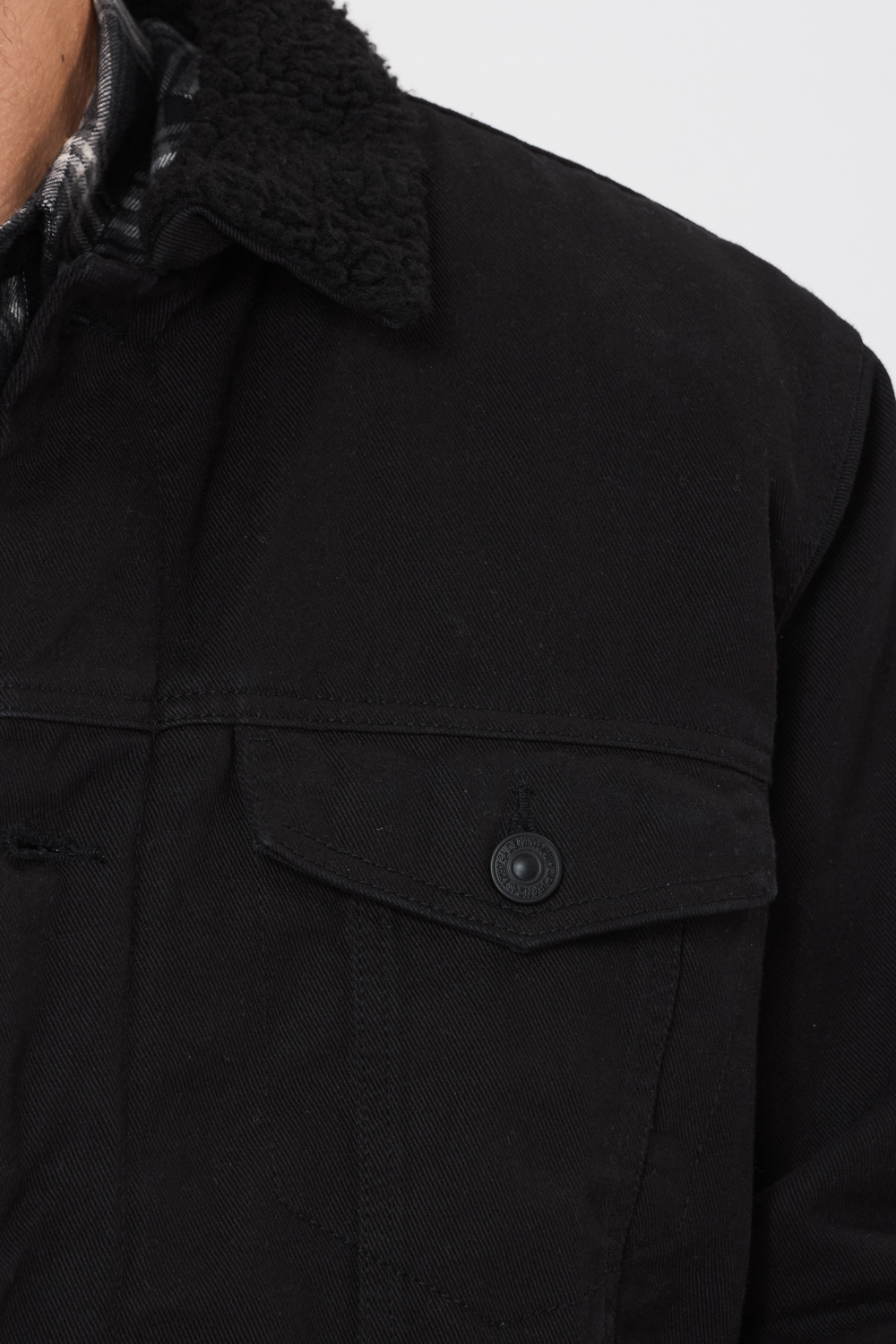 חולצת פלנל משבצות עם כיס – שחור