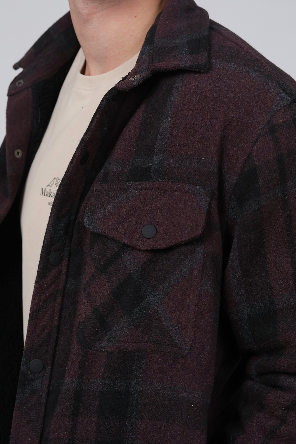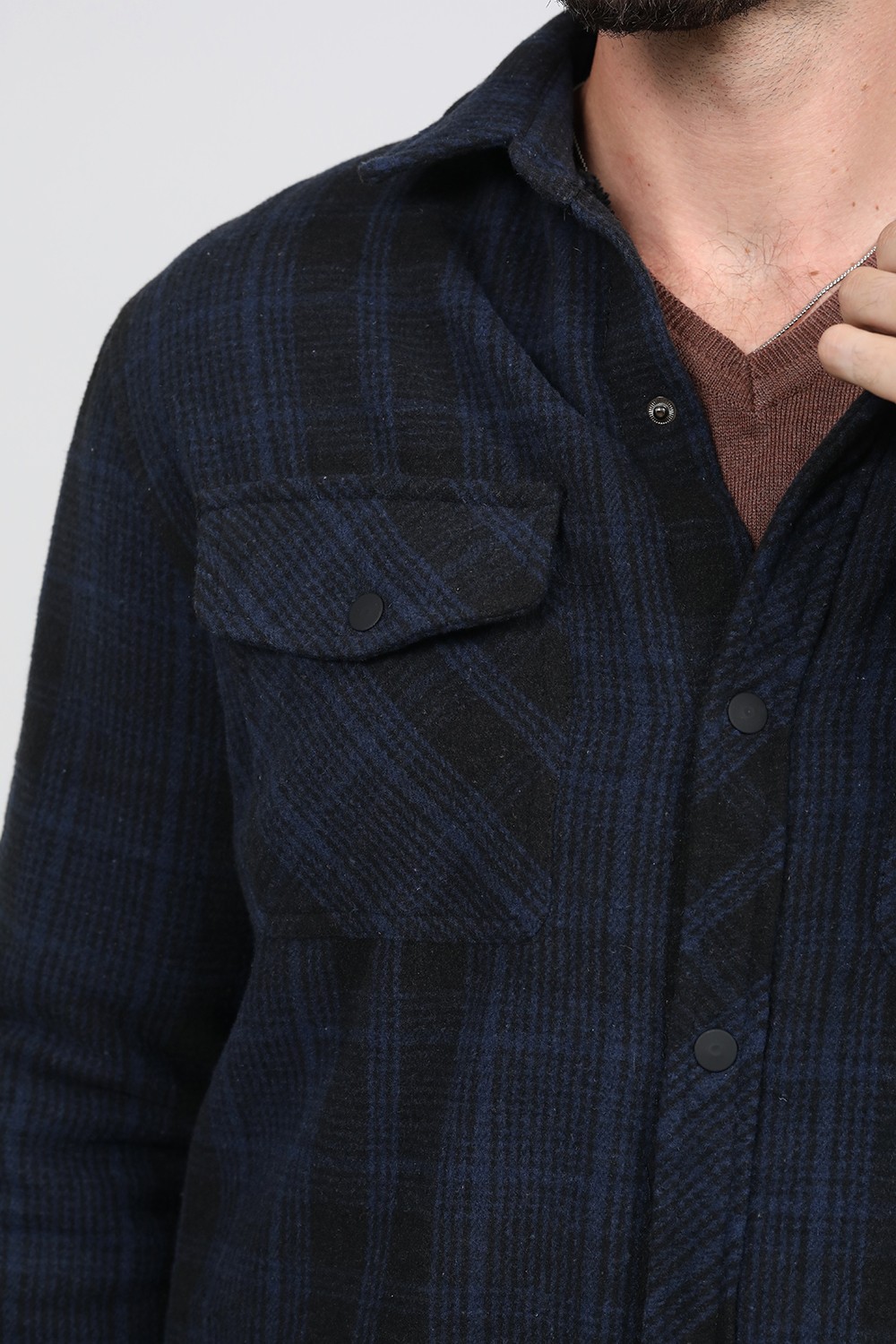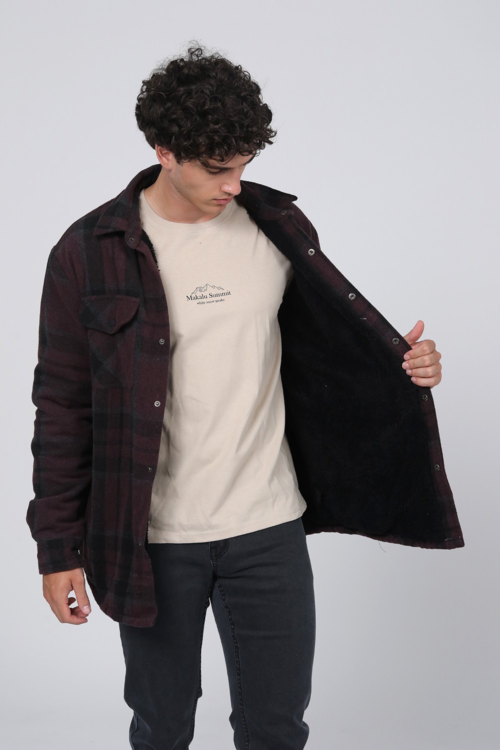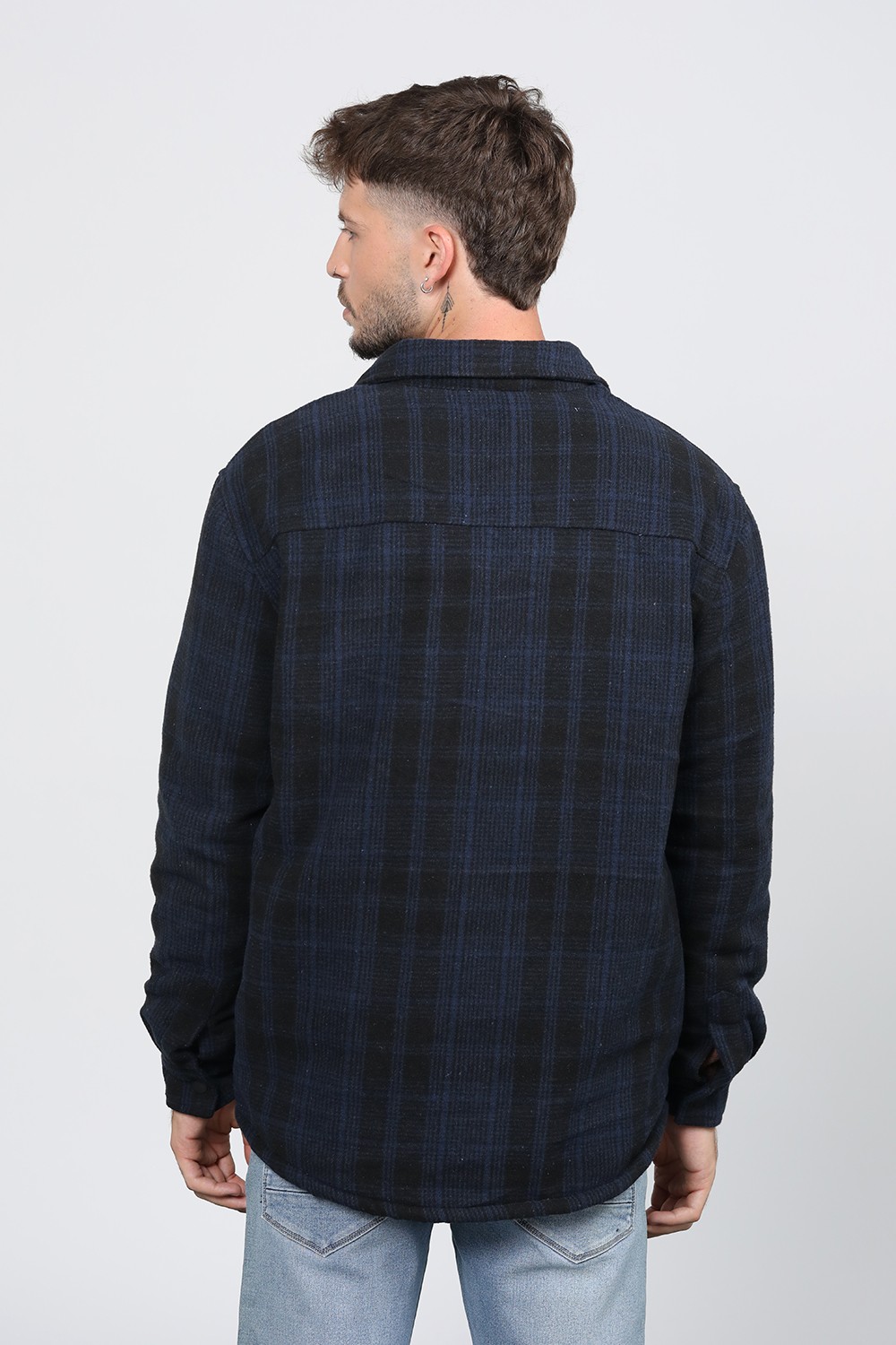 ג'קט עבה משבצות פלנל עם בטנת דמוי פרווה