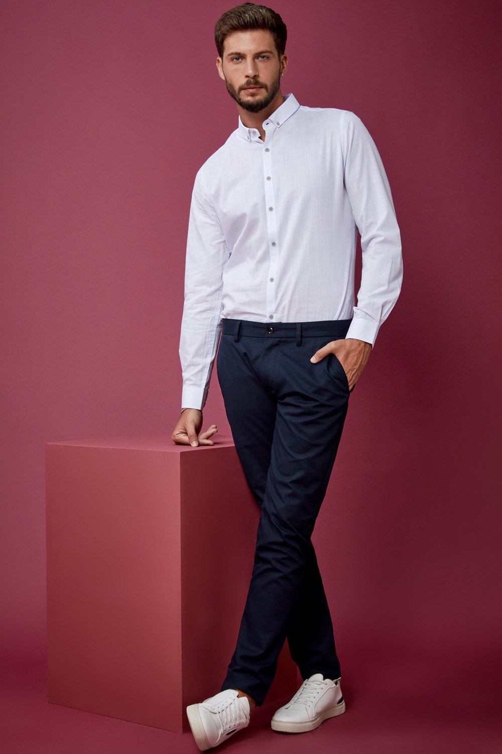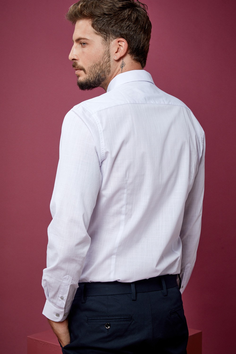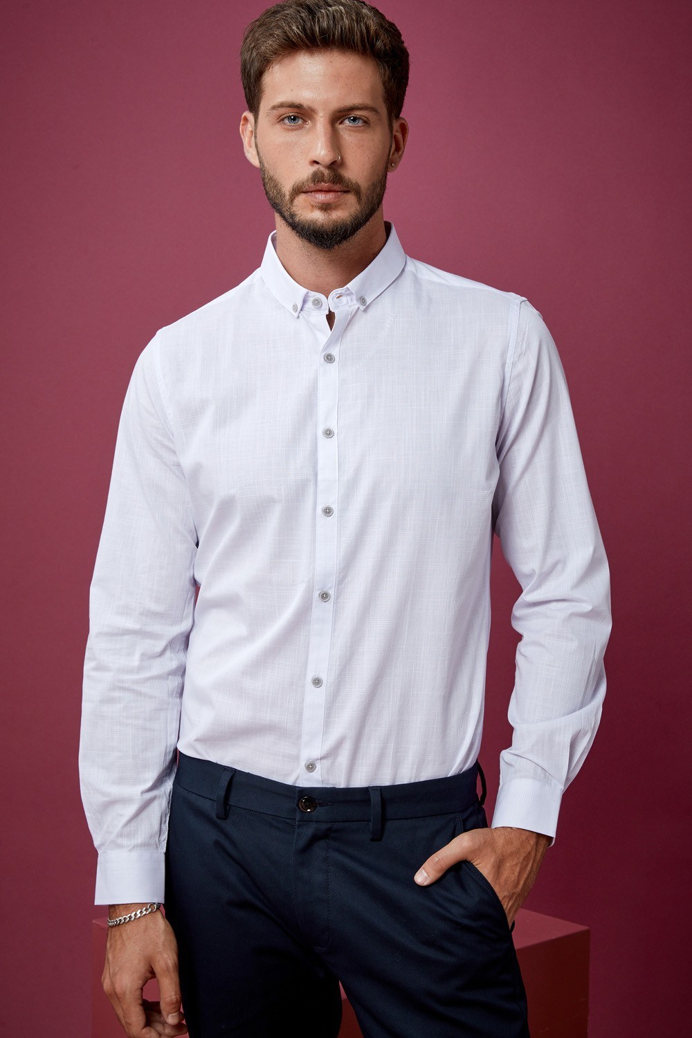 חולצה מכופתרת אלגנטית טקסטורת שתי וערב