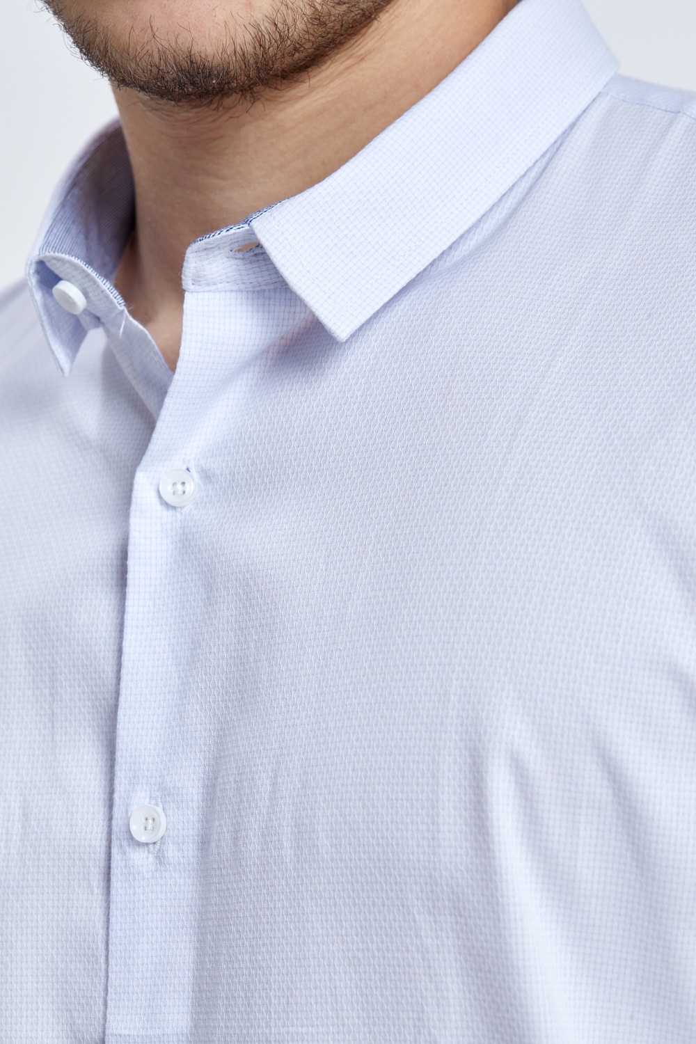 בד DOBBY אלגנטי עם טקסטורה בגווני לבן ותכלת