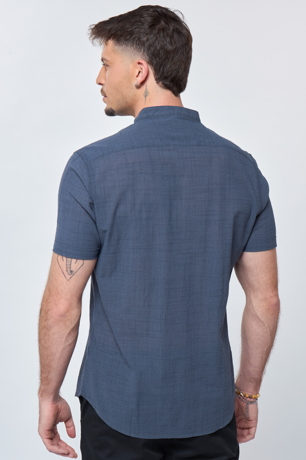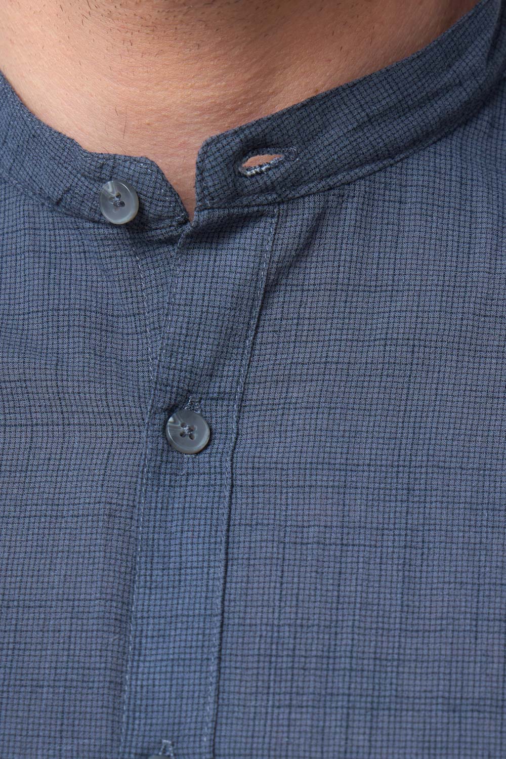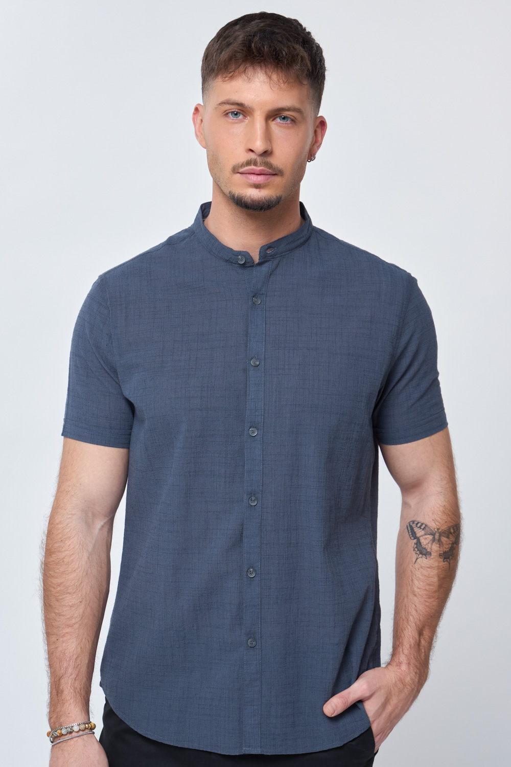 חולצה מכופתרת גריד אפקט קמטים צווארון סיני