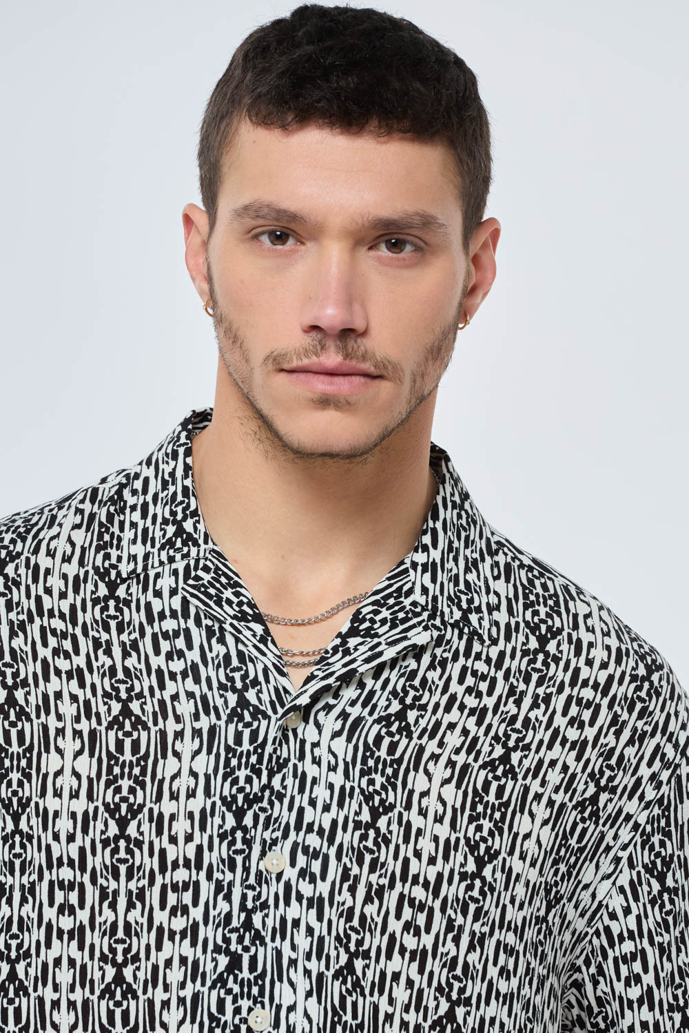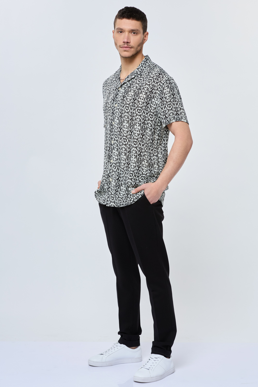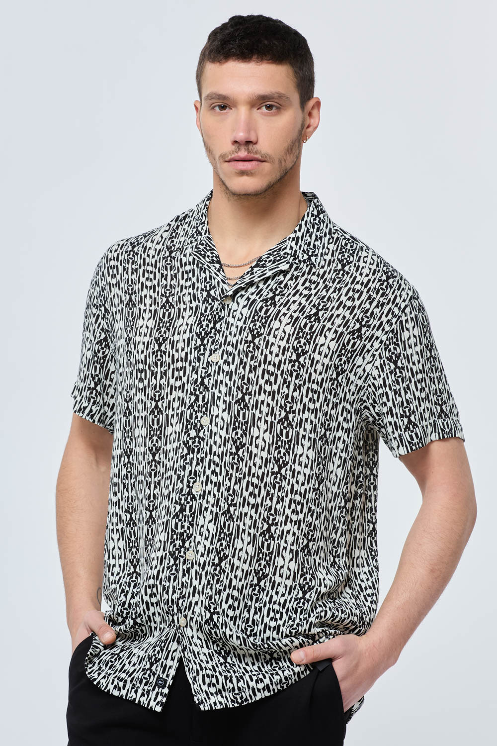 חולצה מכופתרת הדפס שחור לבן