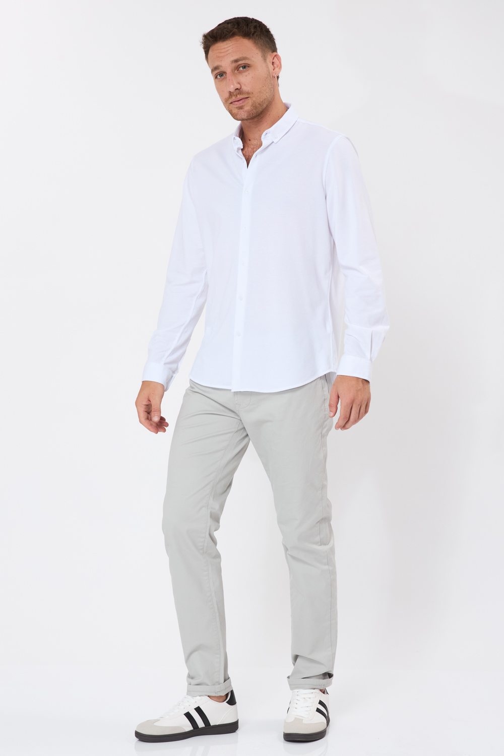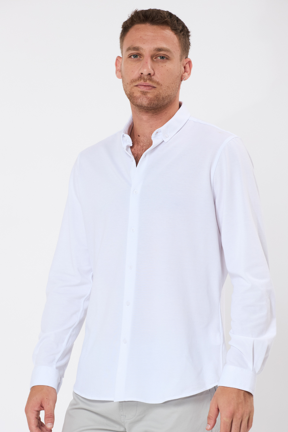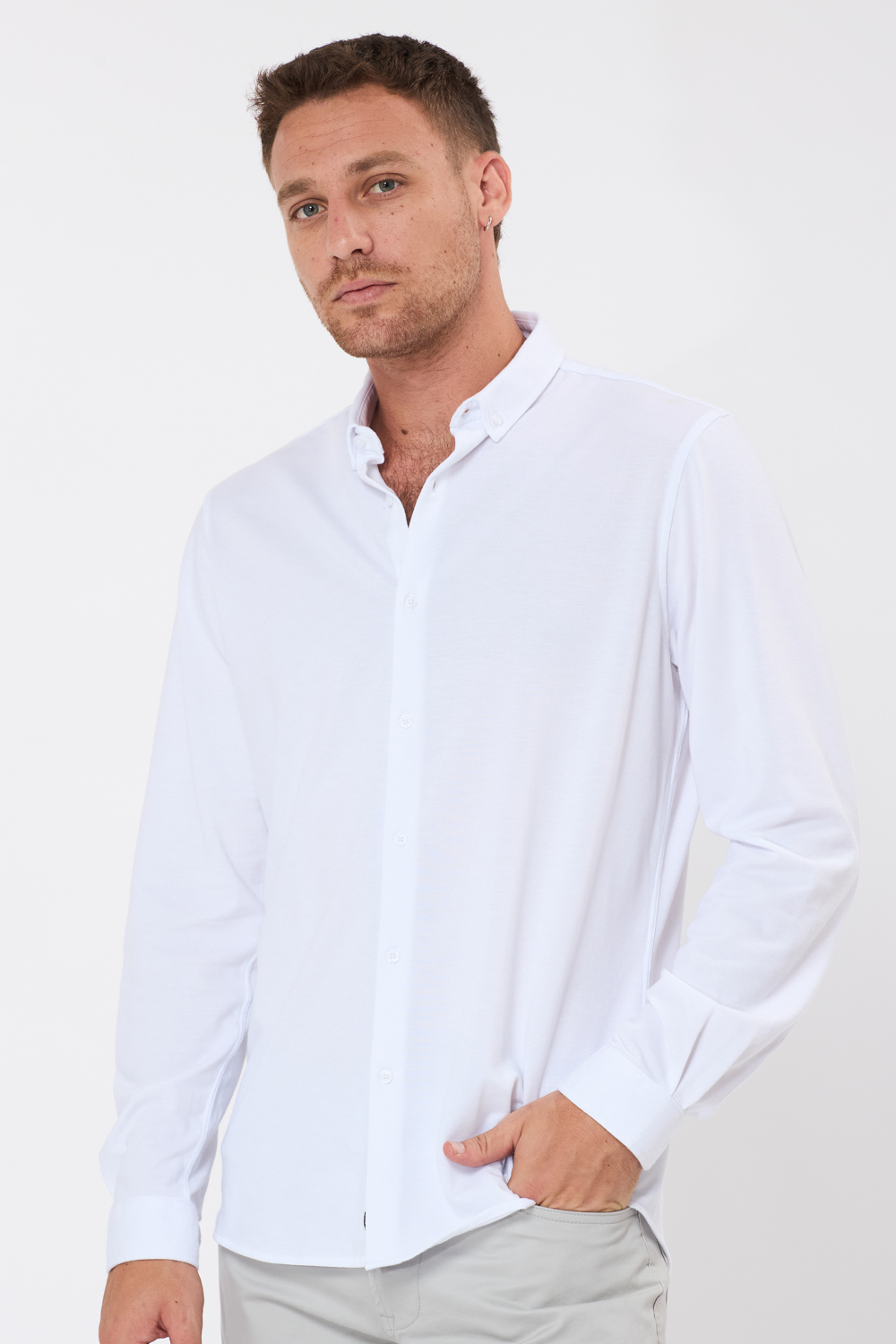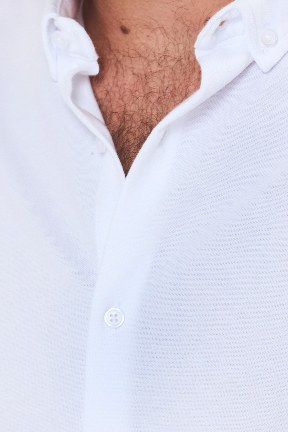 חולצה מכופתרת פיקה ג'רסי – לבן