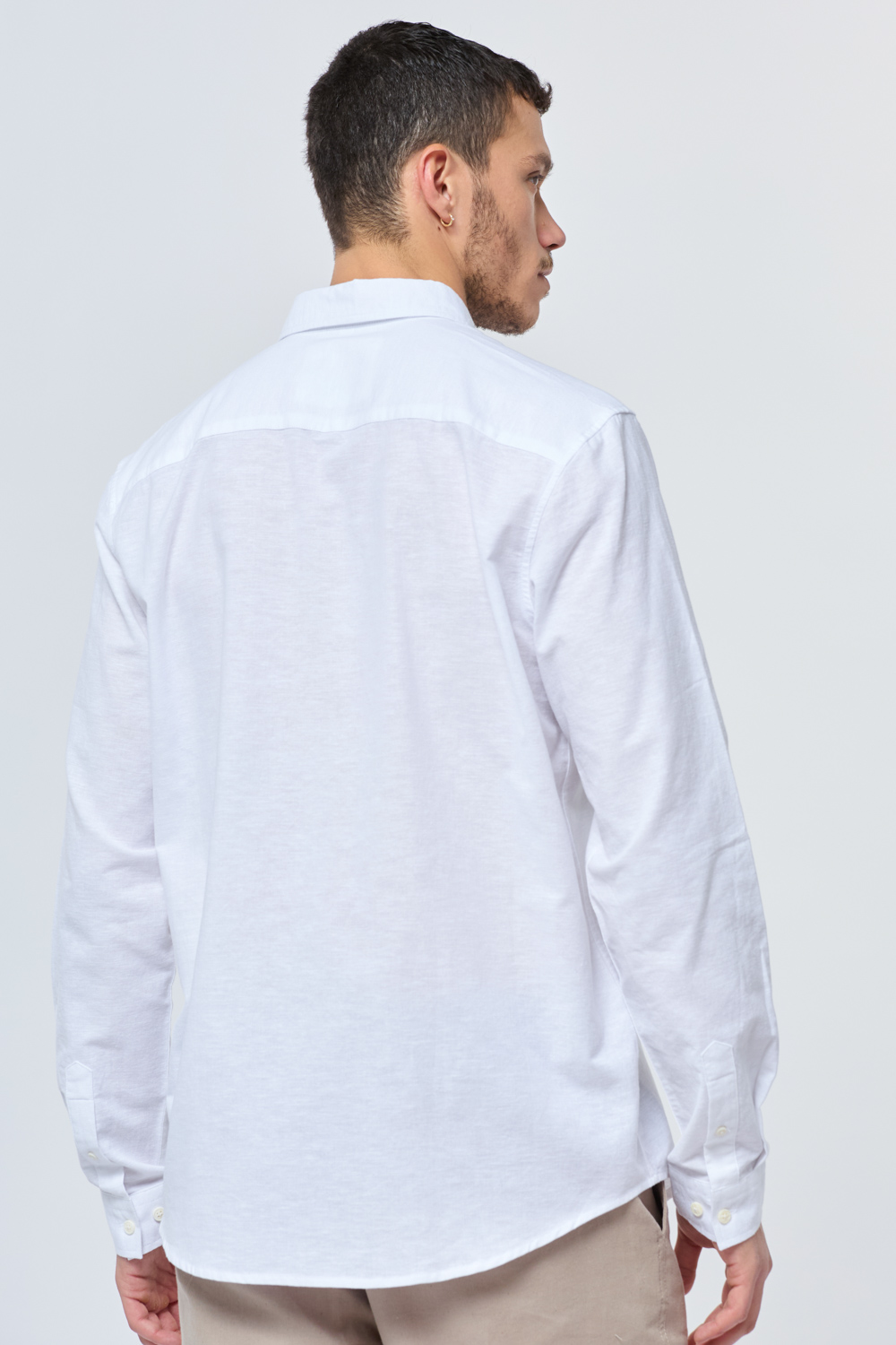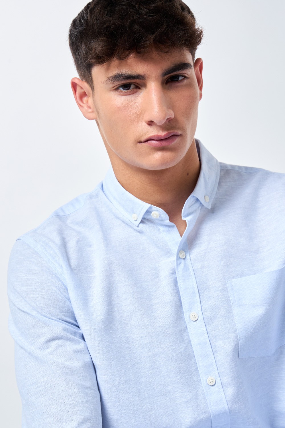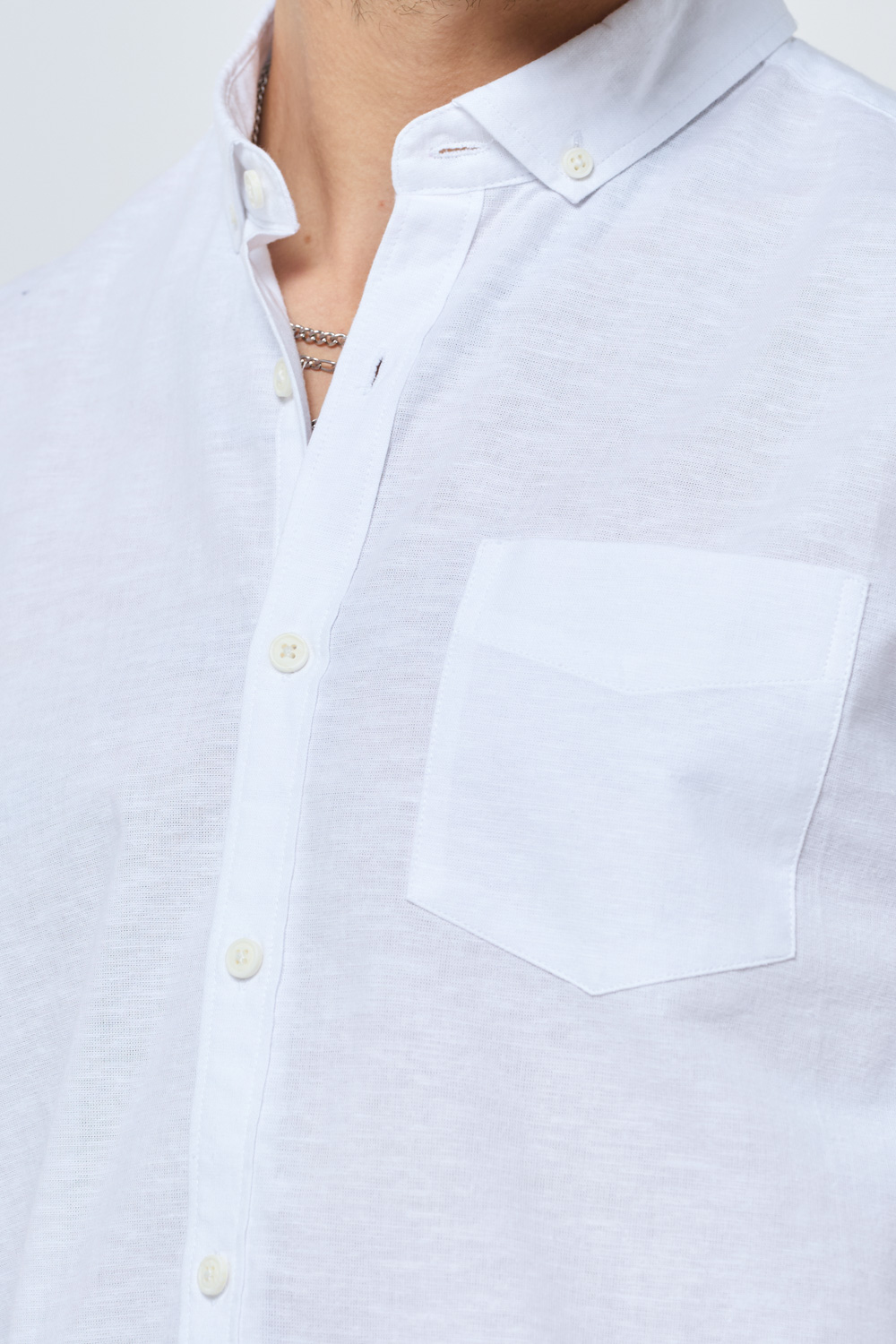 חולצה מכופתרת בד בשילוב פשתן כיס חזה קדמי גזרה רחבה comfort fit