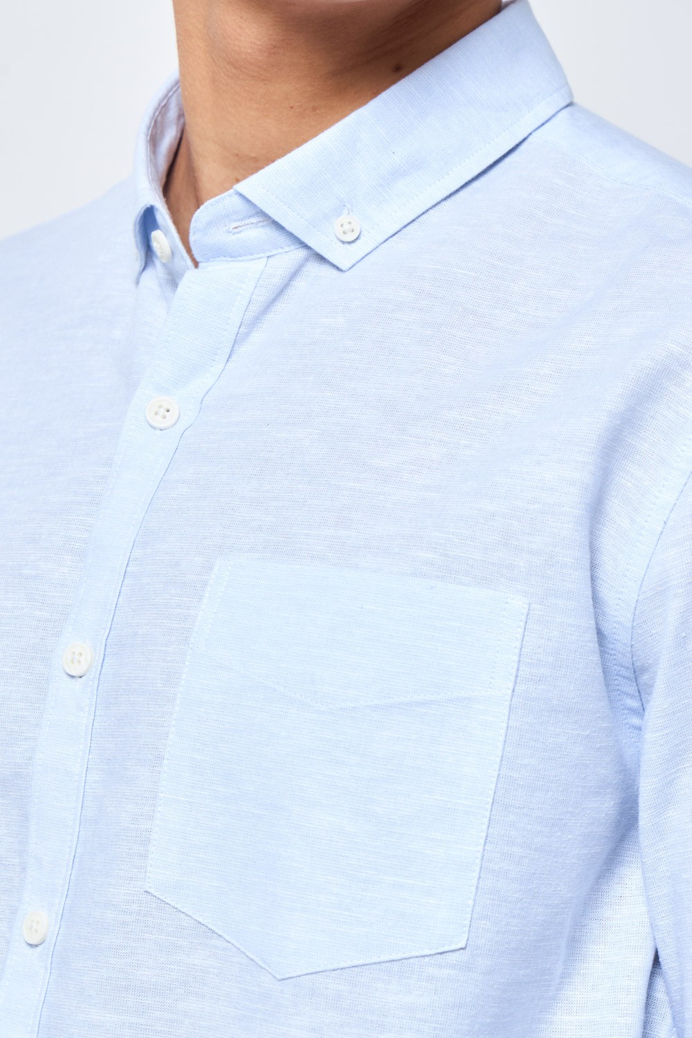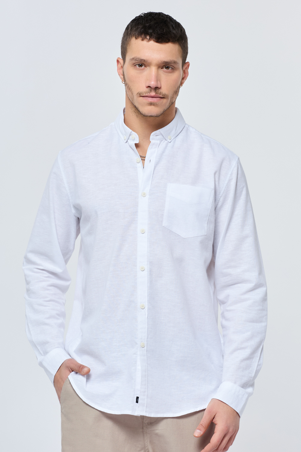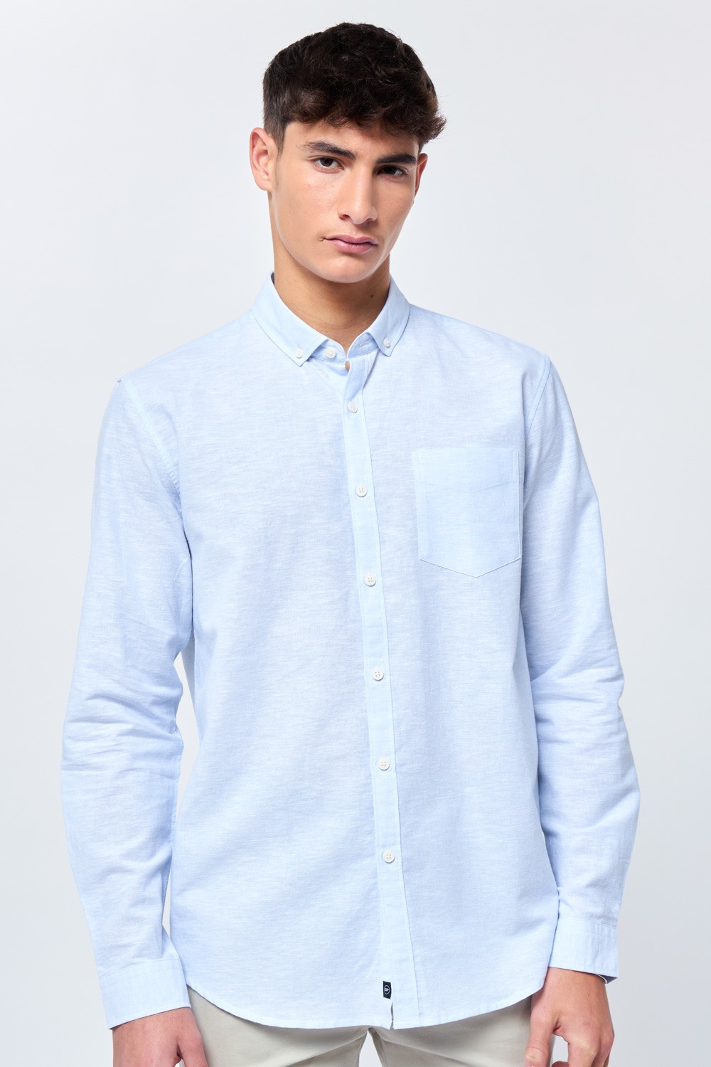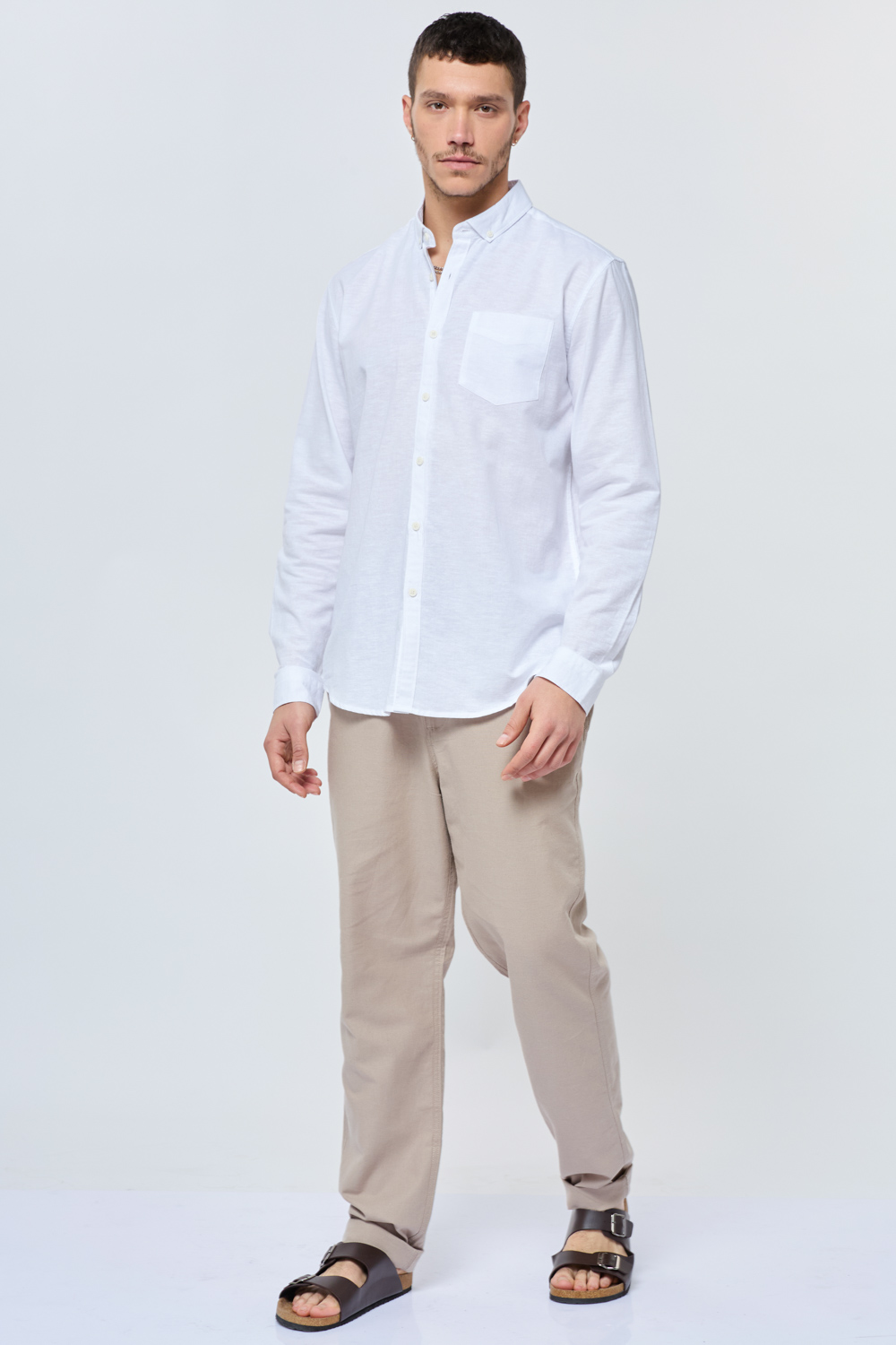 חולצה מכופתרת בד בשילוב פשתן כיס חזה קדמי גזרה רחבה comfort fit