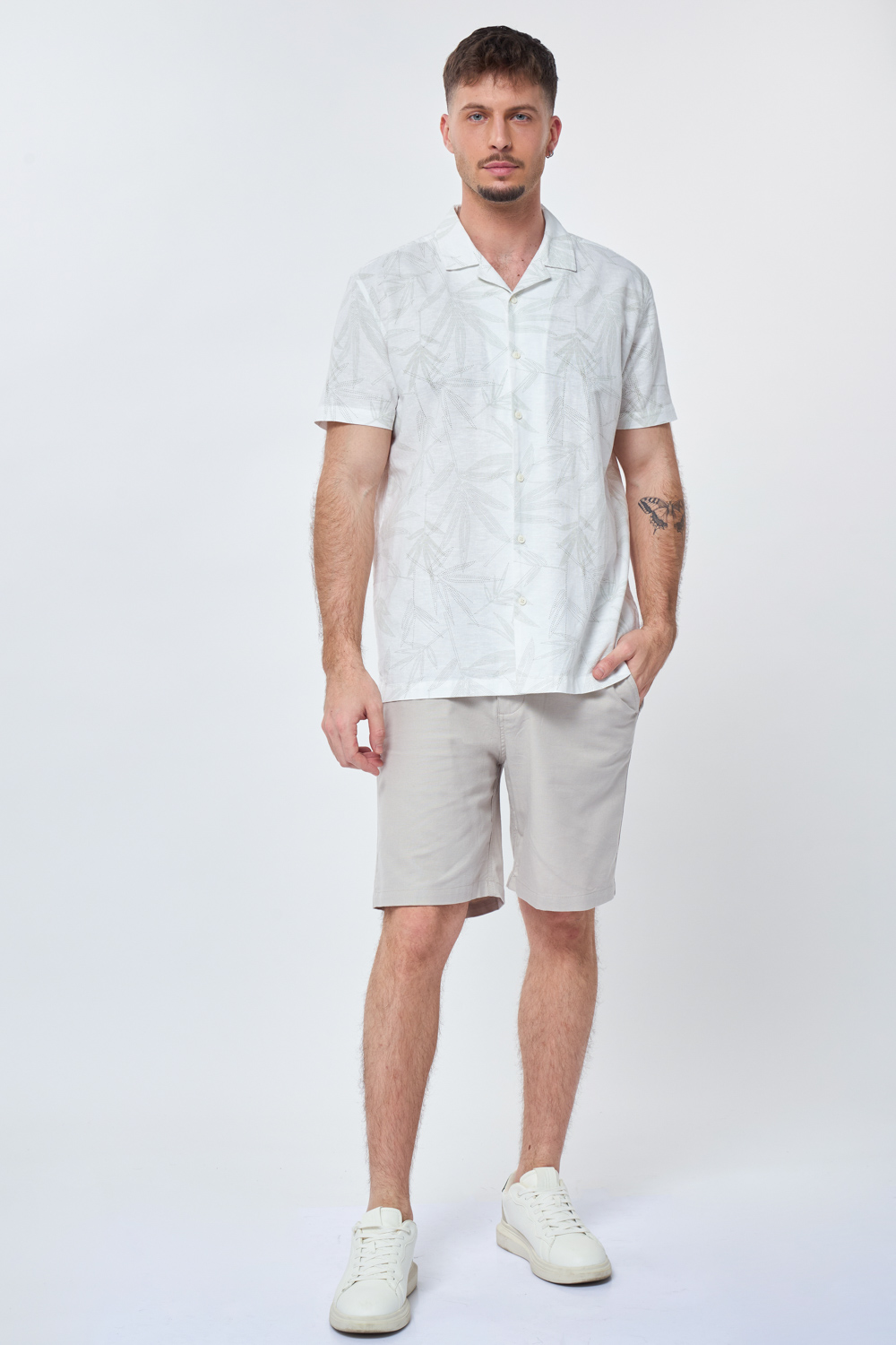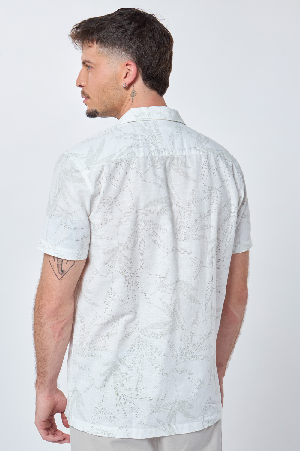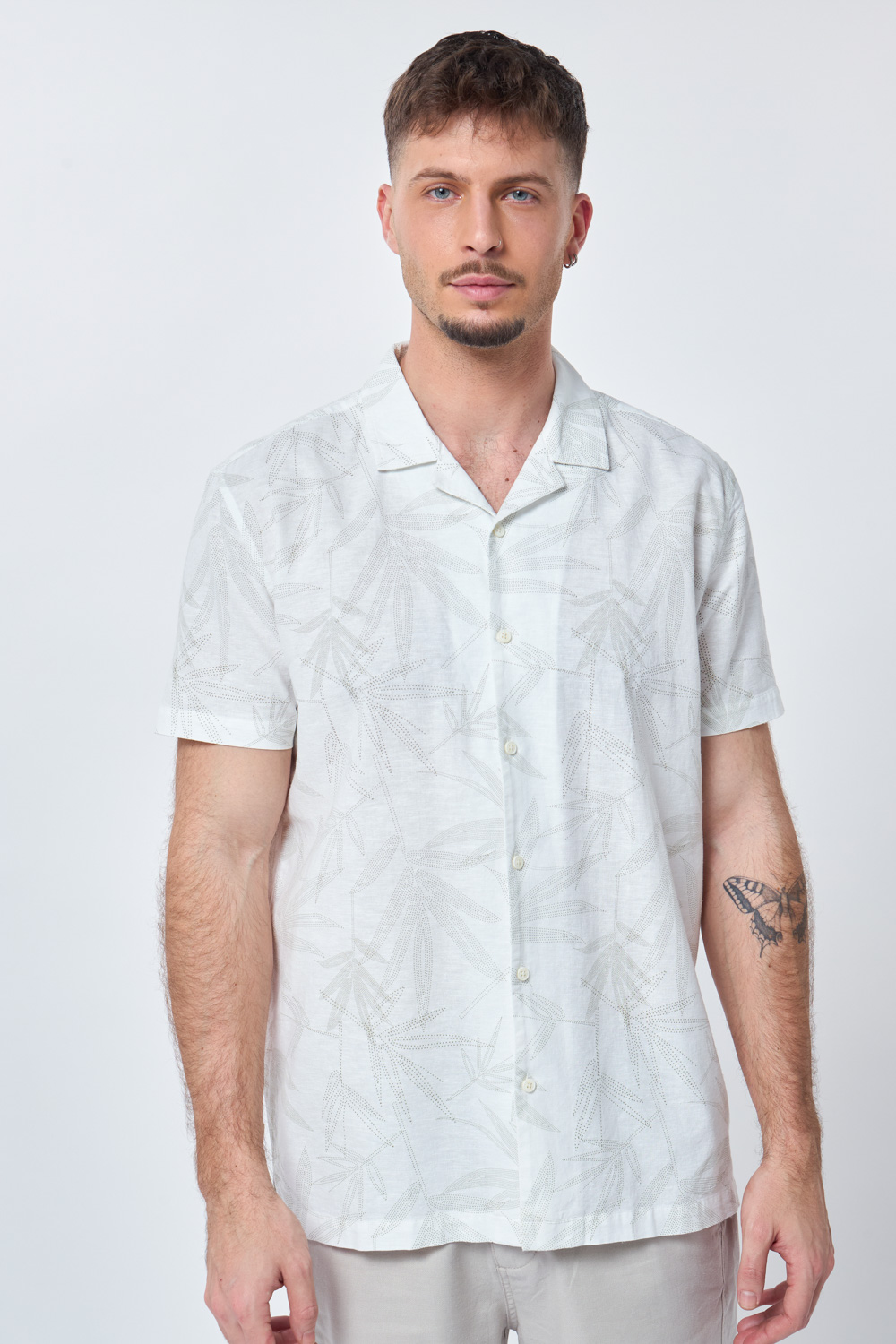 חולצה מכופתרת בשילוב פשתן – מודפס