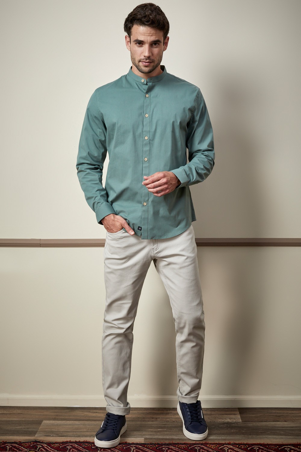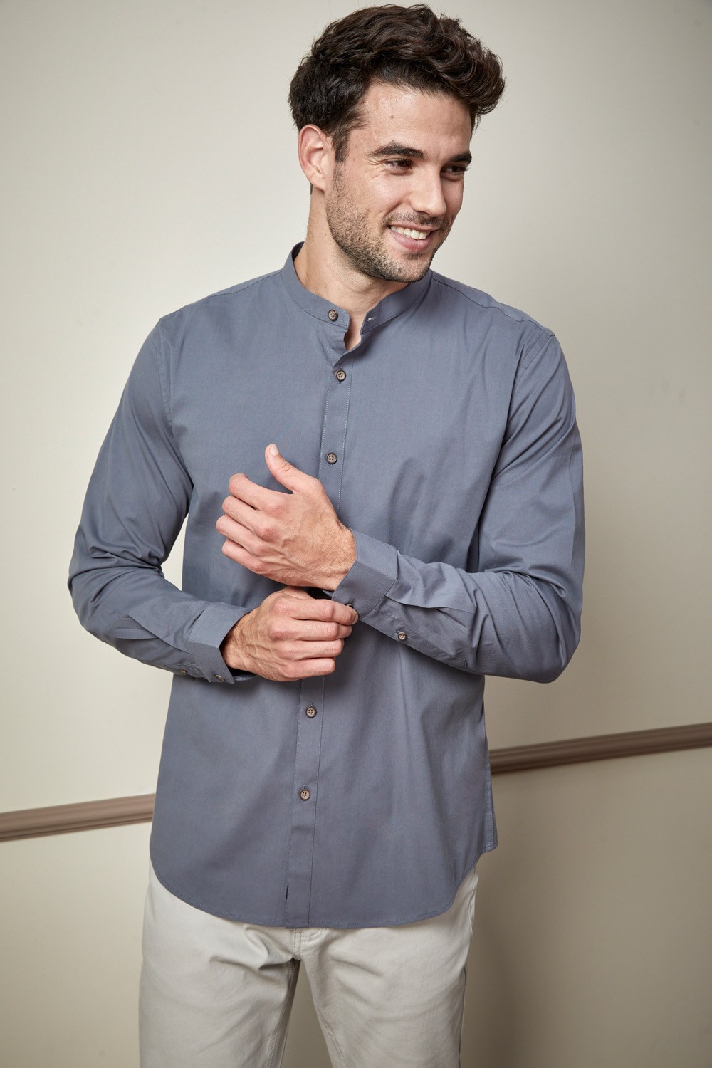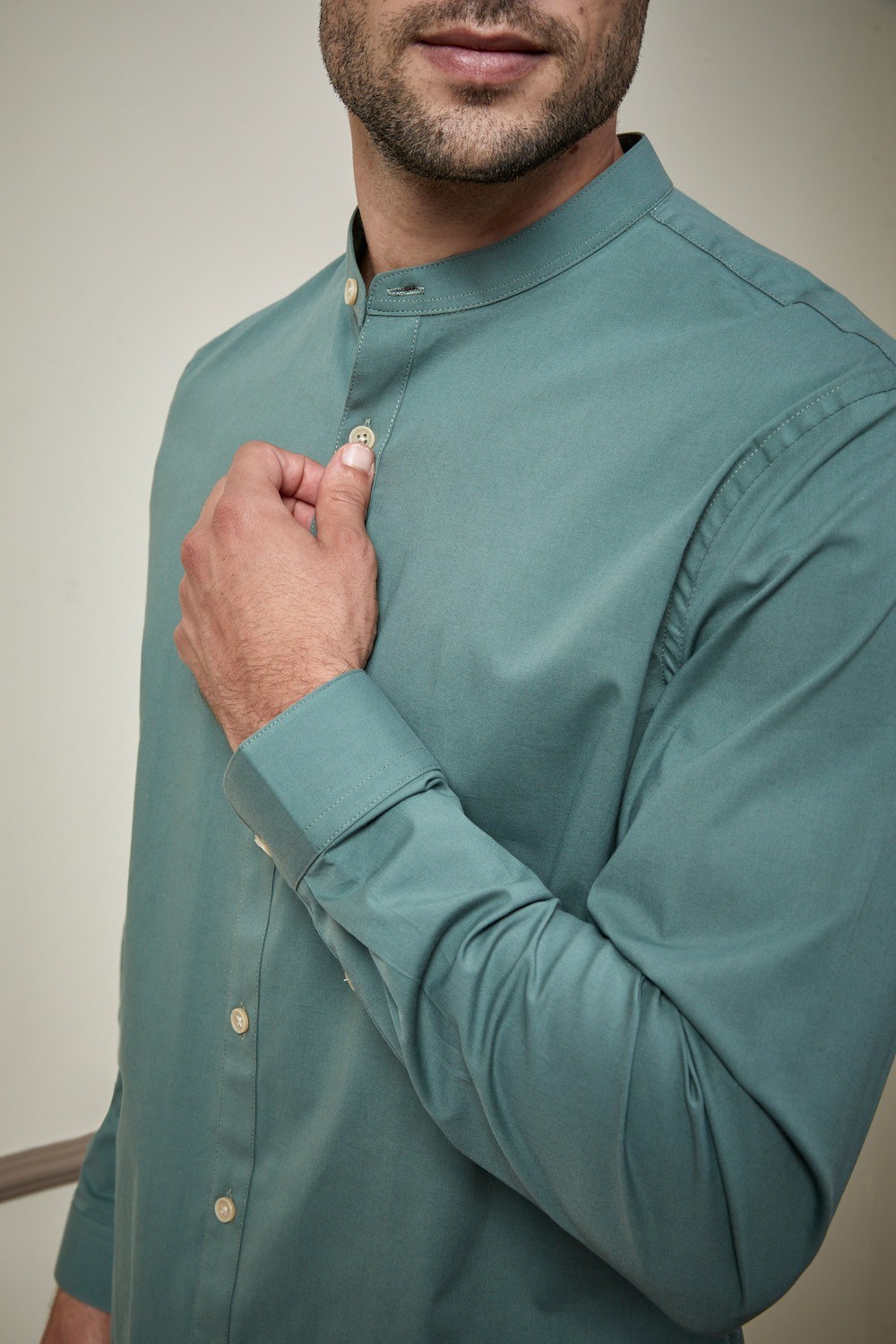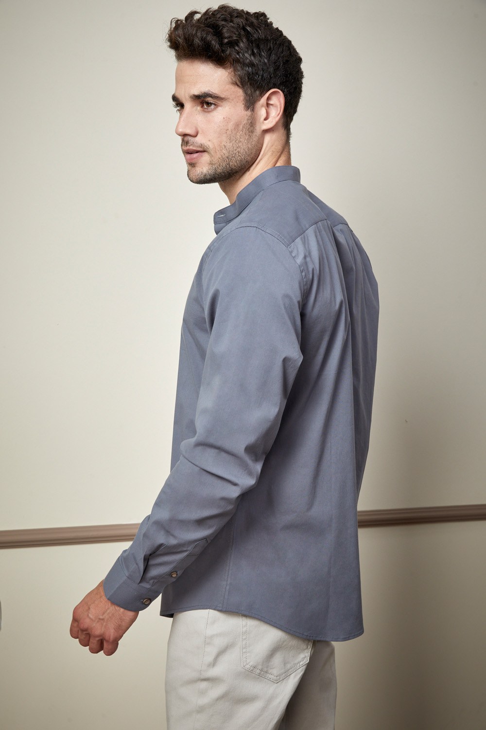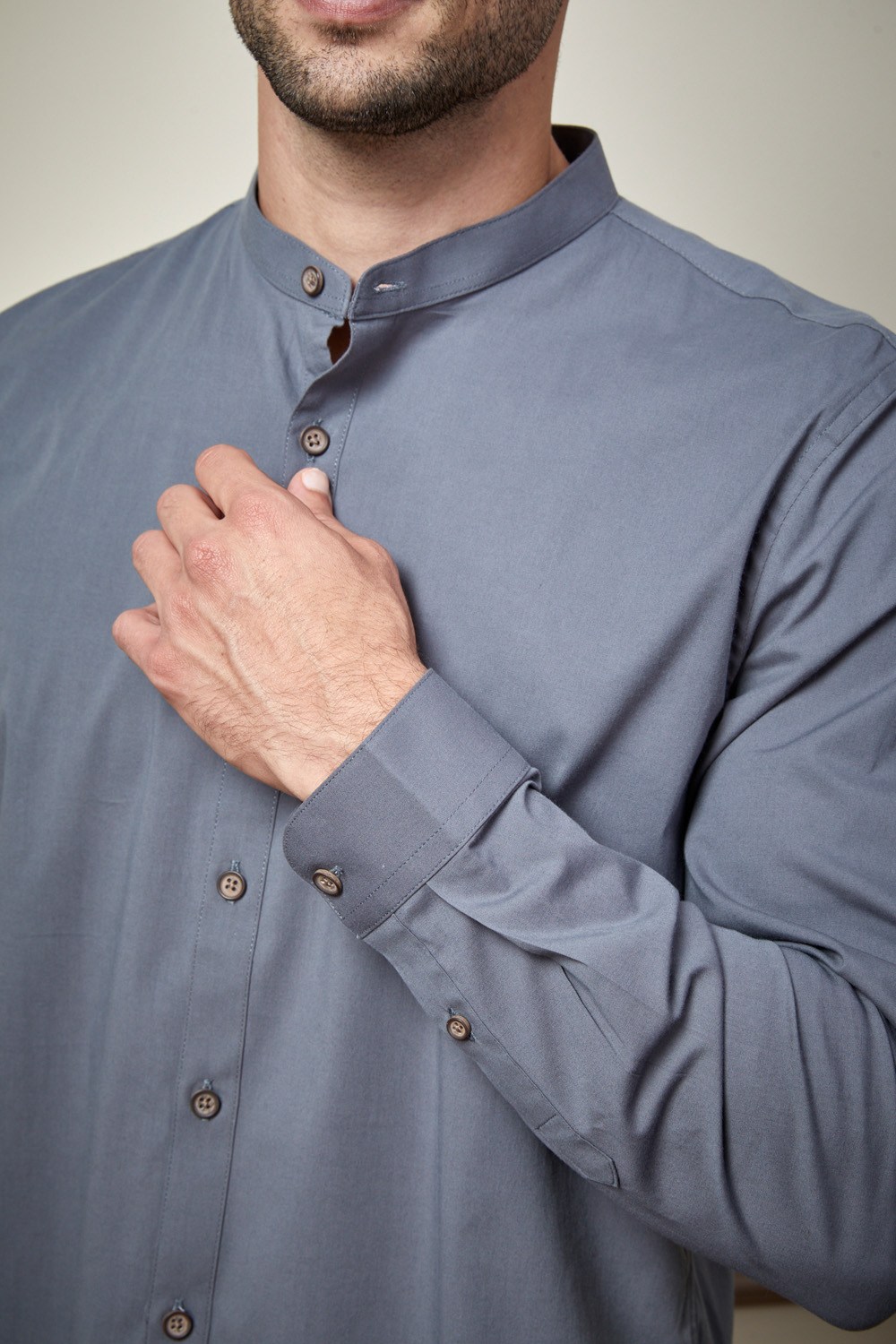 חולצה מכופתרת צוואורן סיני בד פיצ'