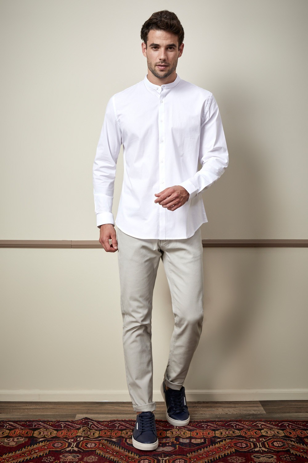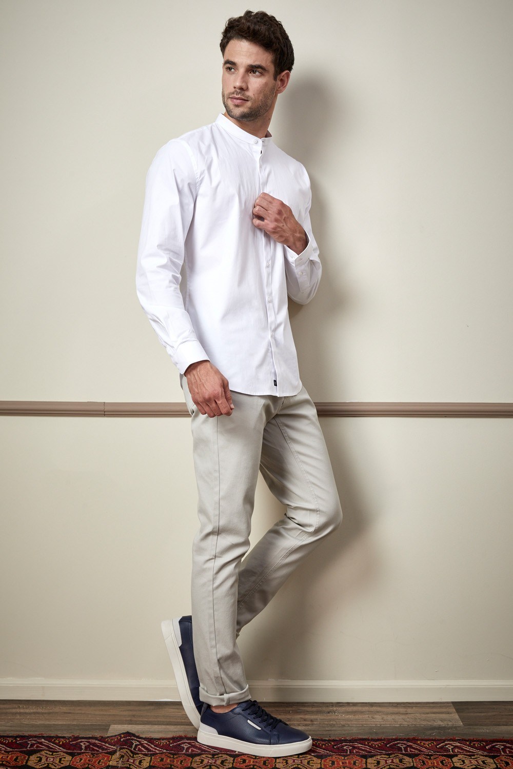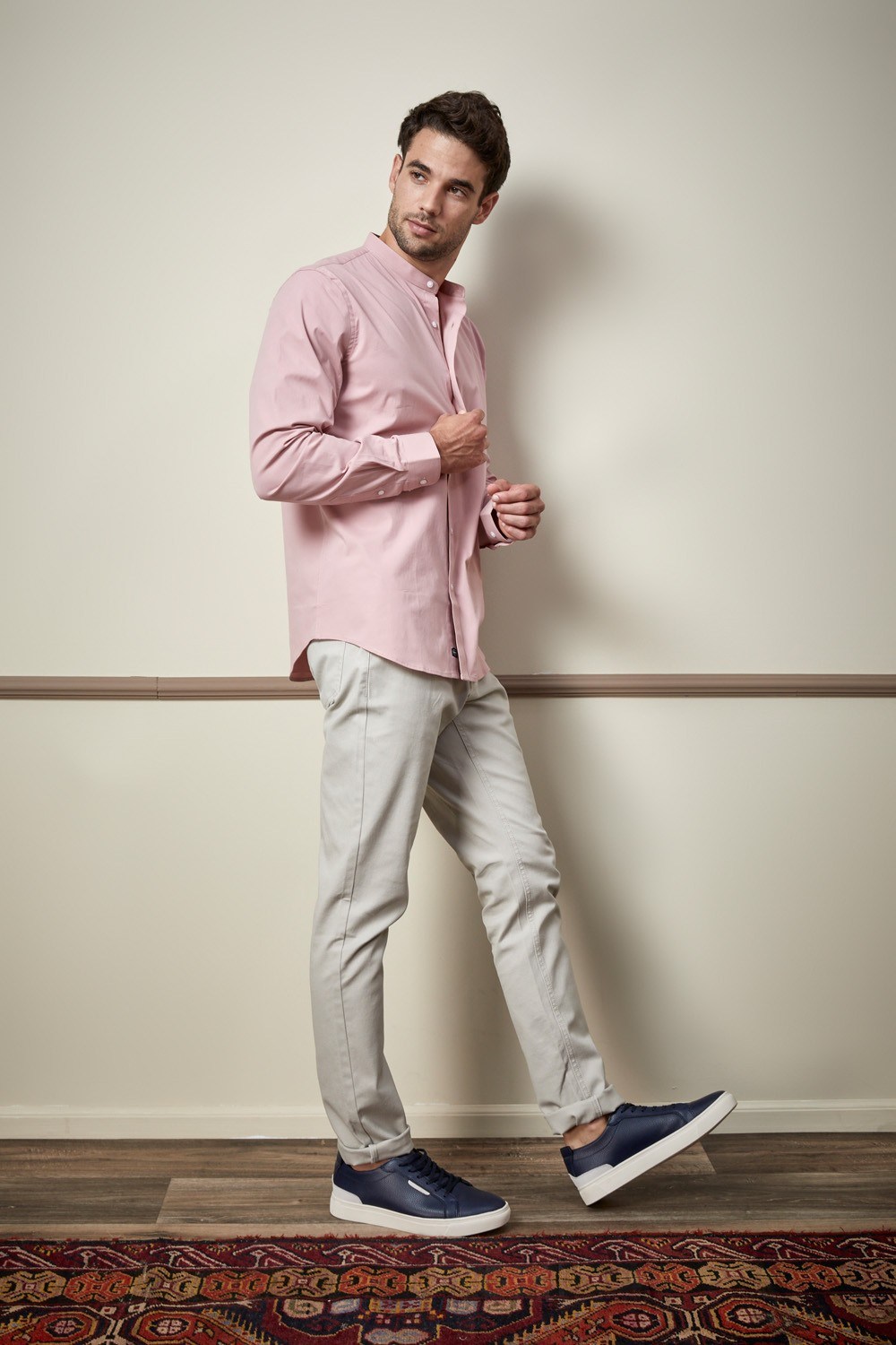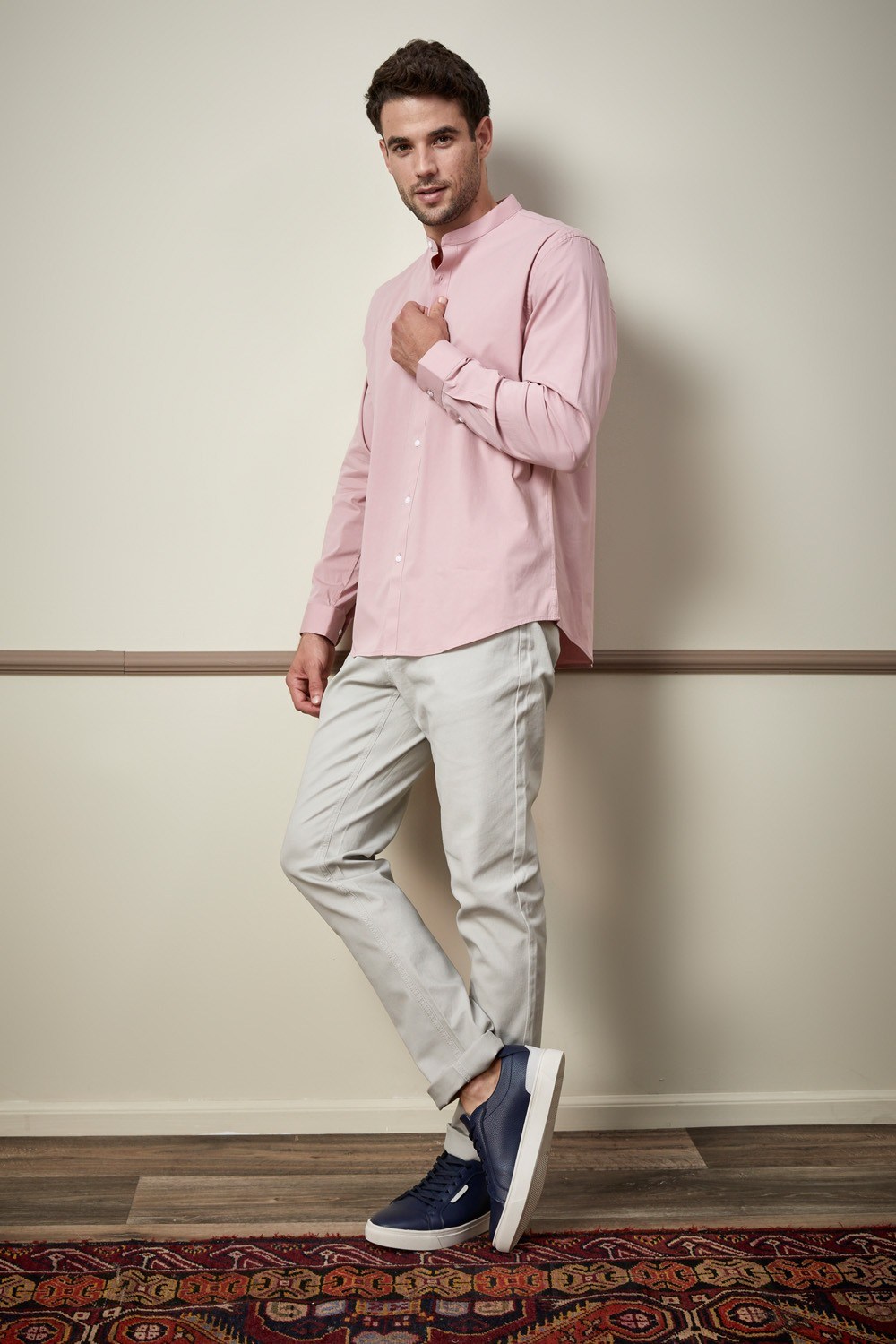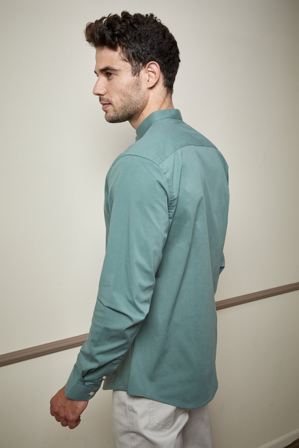 חולצה מכופתרת צוואורן סיני בד פיצ'