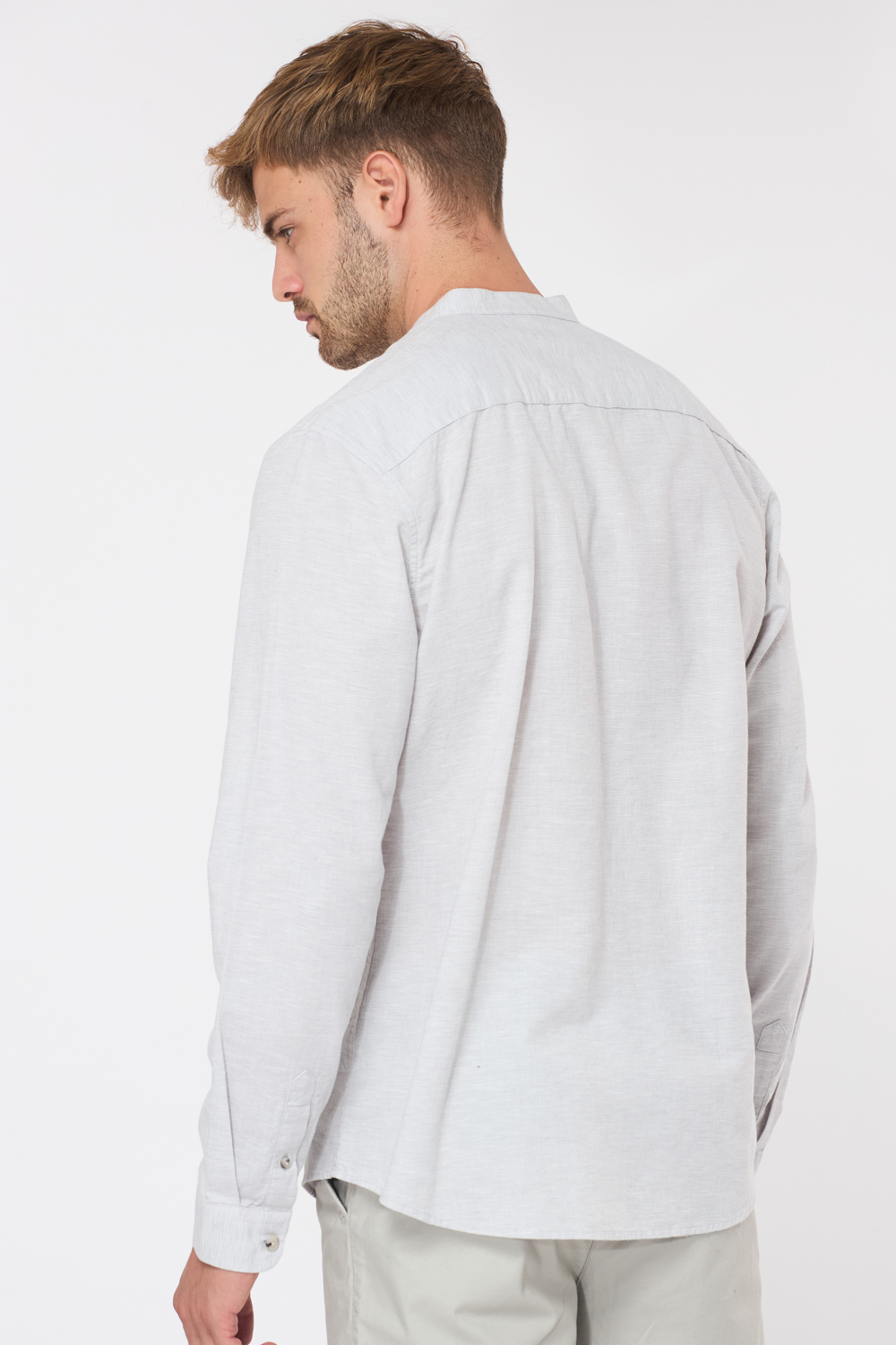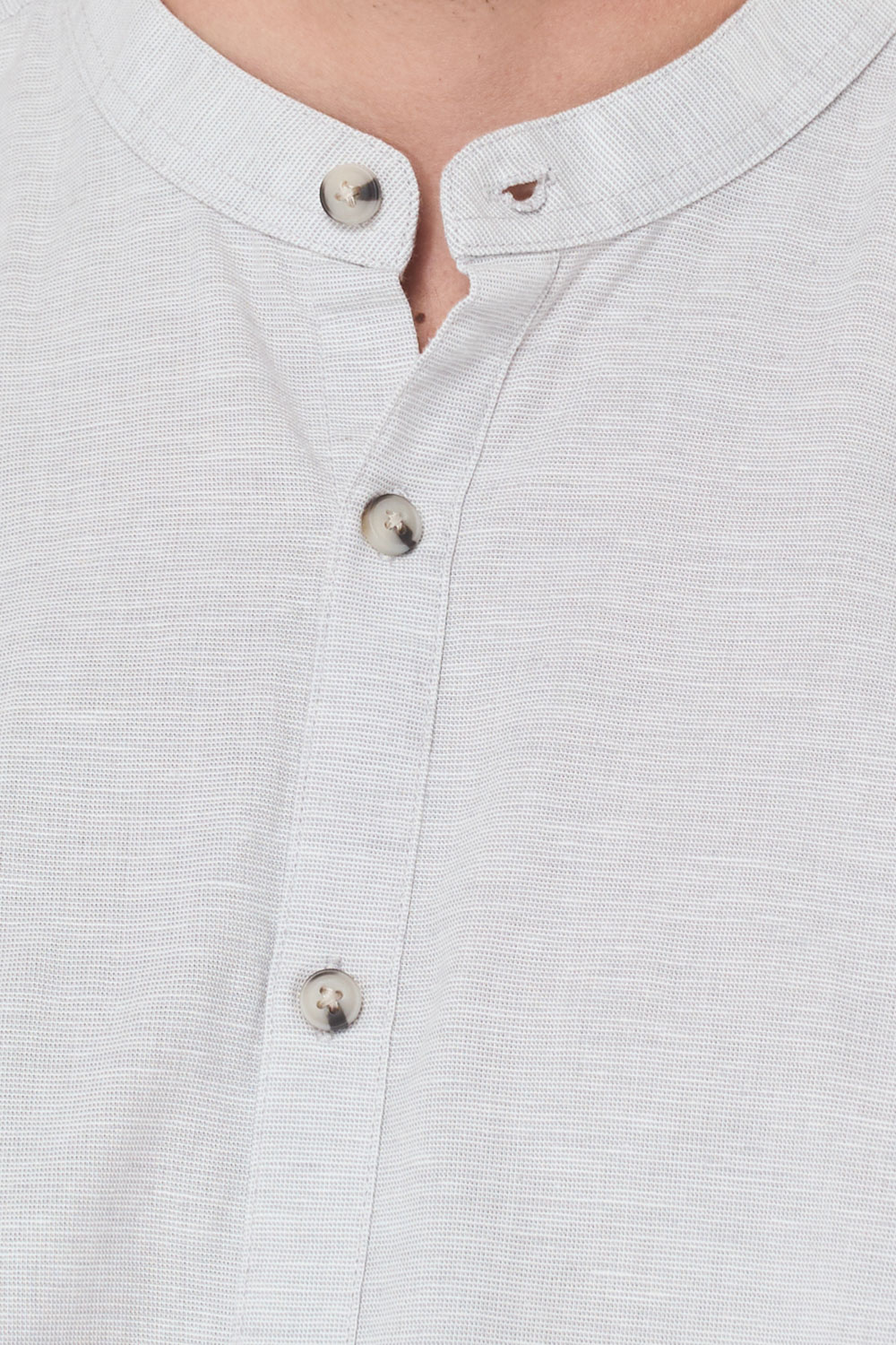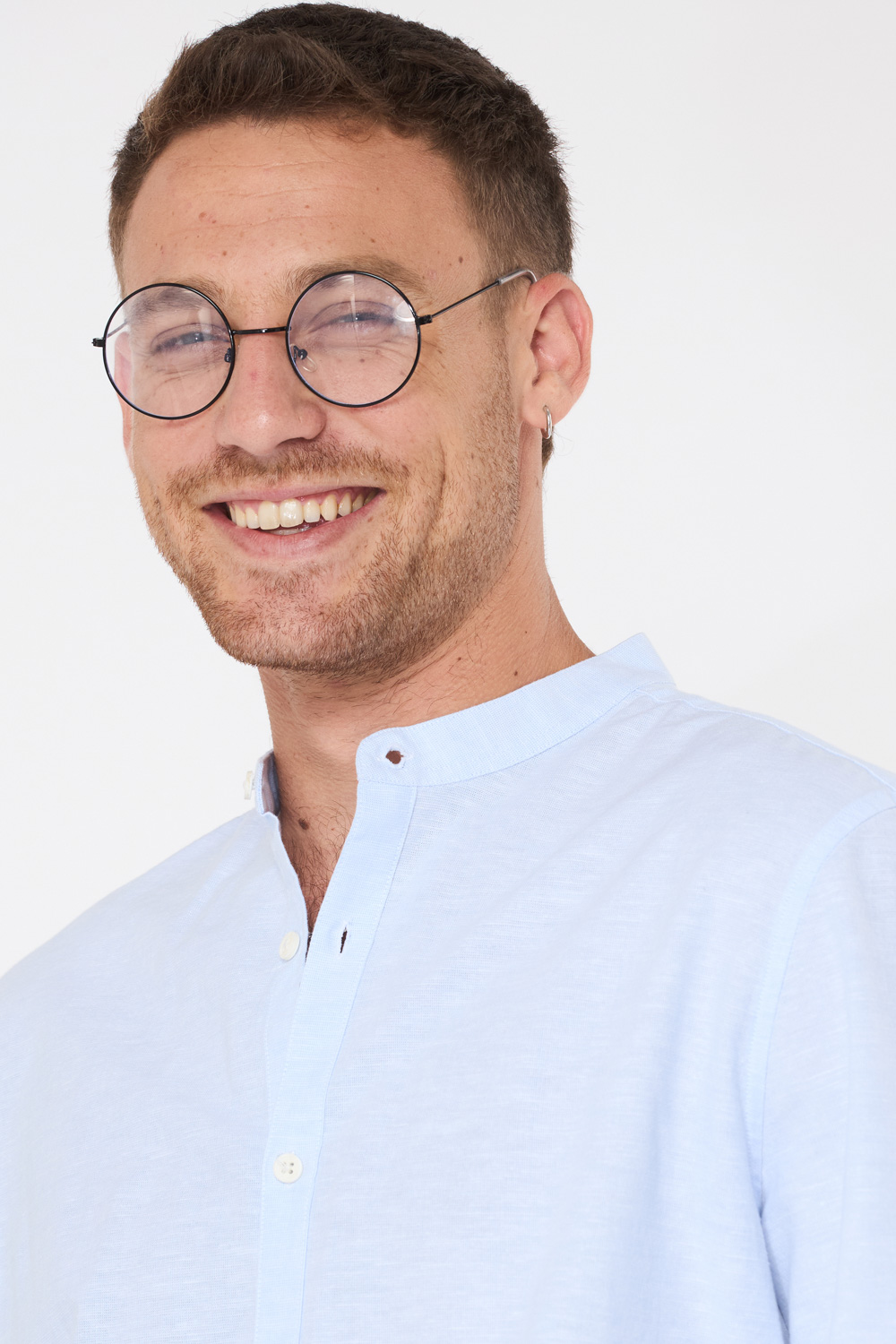חולצה מכופתרת צווארון סיני בשילוב פשתן - תכלת