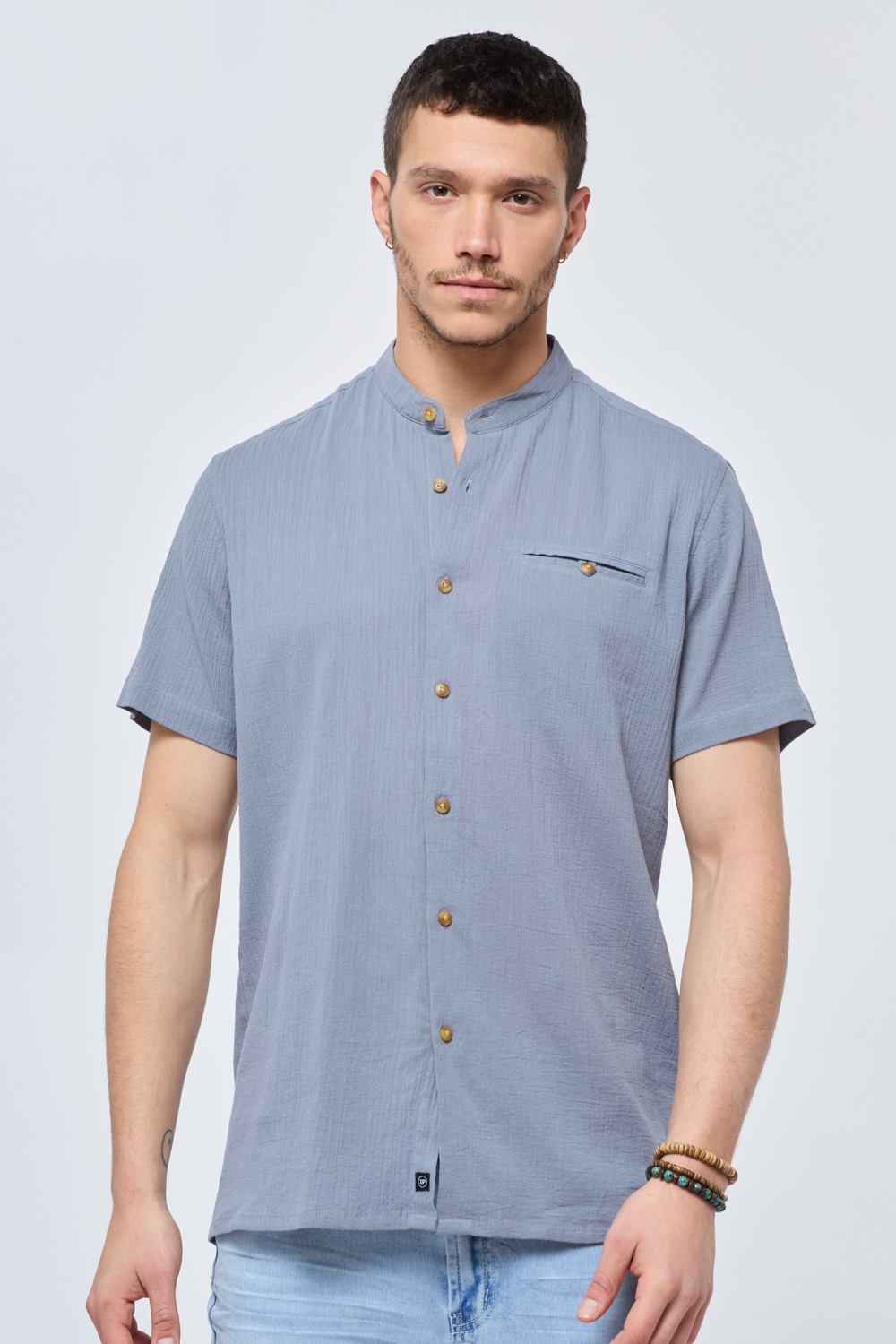 חולצה מכופתרת crep צווארון סיני