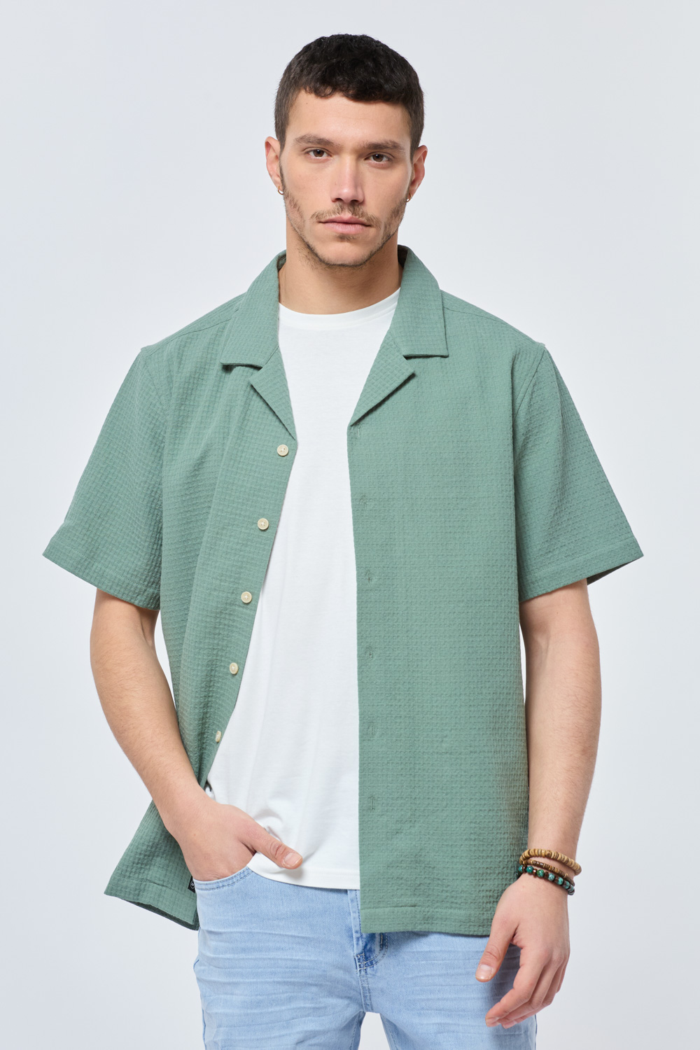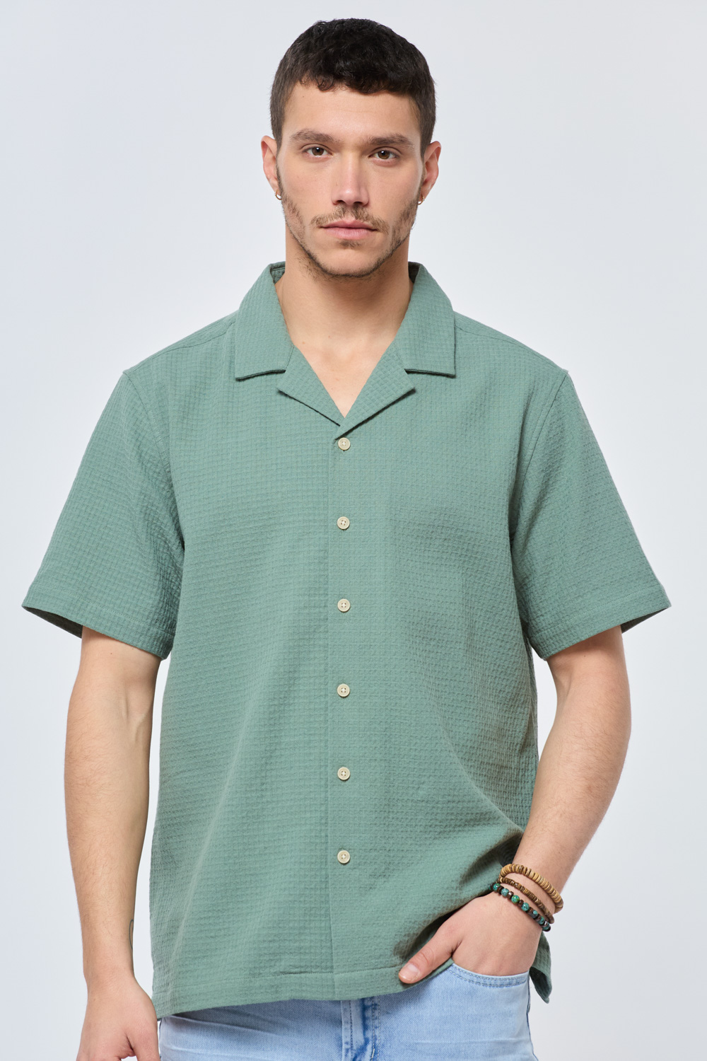 חולצה מכופתרת heavy waffle