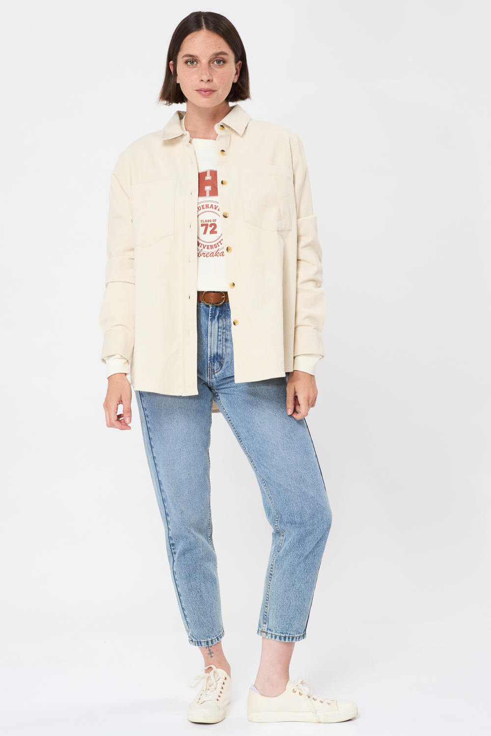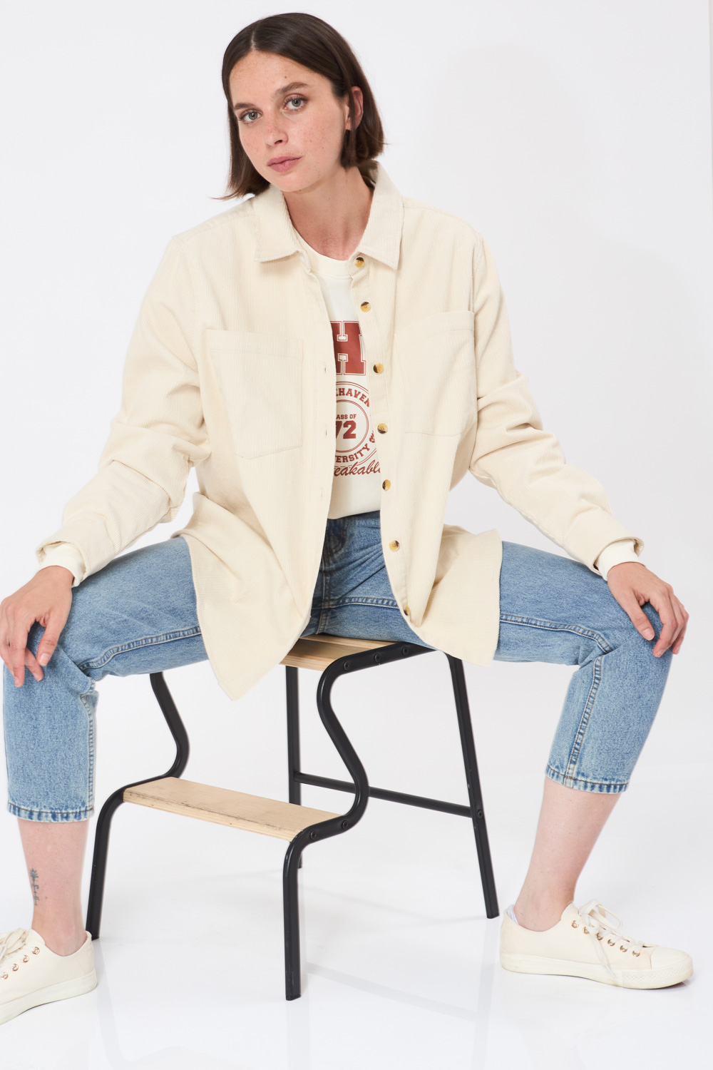 חולצת אוברסייז קורדרוי – אבן