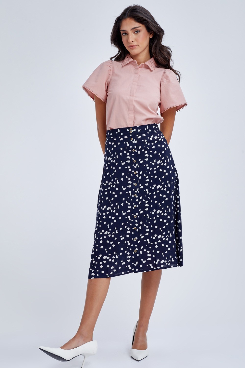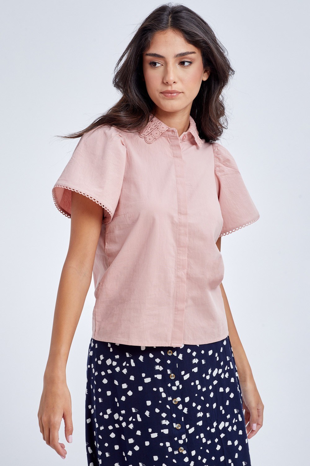 חולצת אריג עם צווארון תחרה