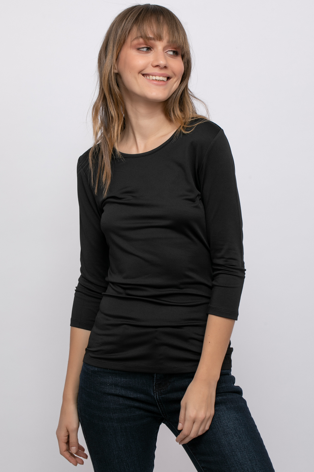 חולצת בסיס קלילה ונוחה, מבד נעים ובשלל צבעי העונה. שרוול 3/4 ומחשוף ניקי.