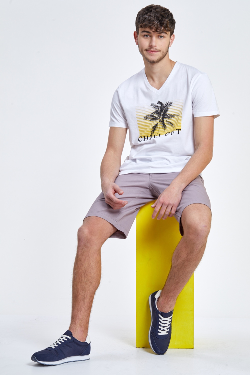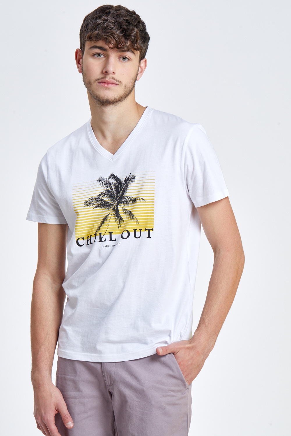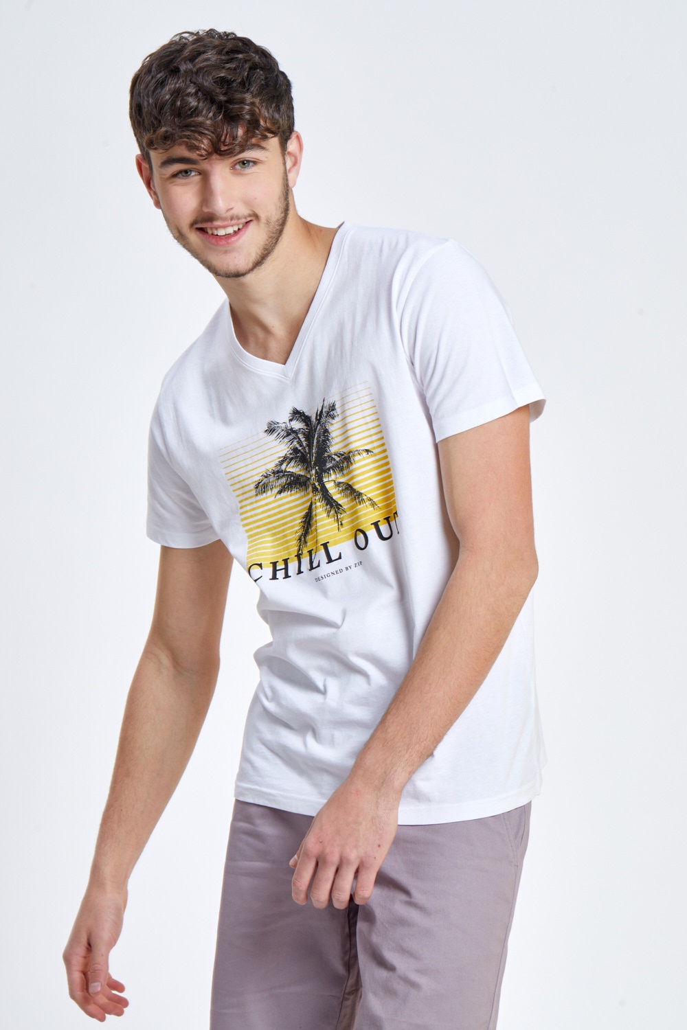 חולצת טי עם מפתח צוואר Y בצבע קונטרסטי