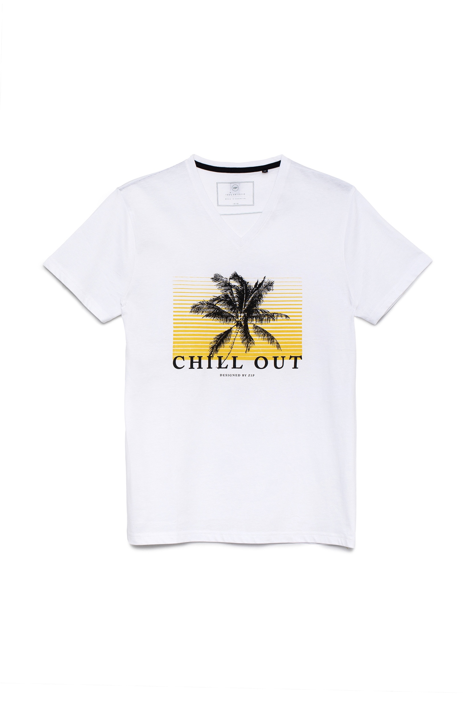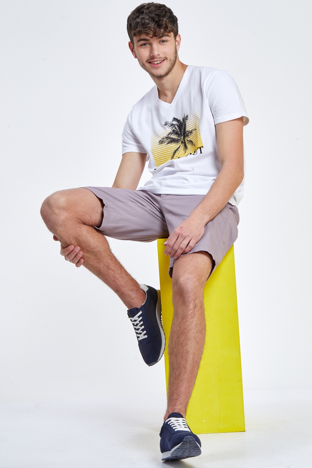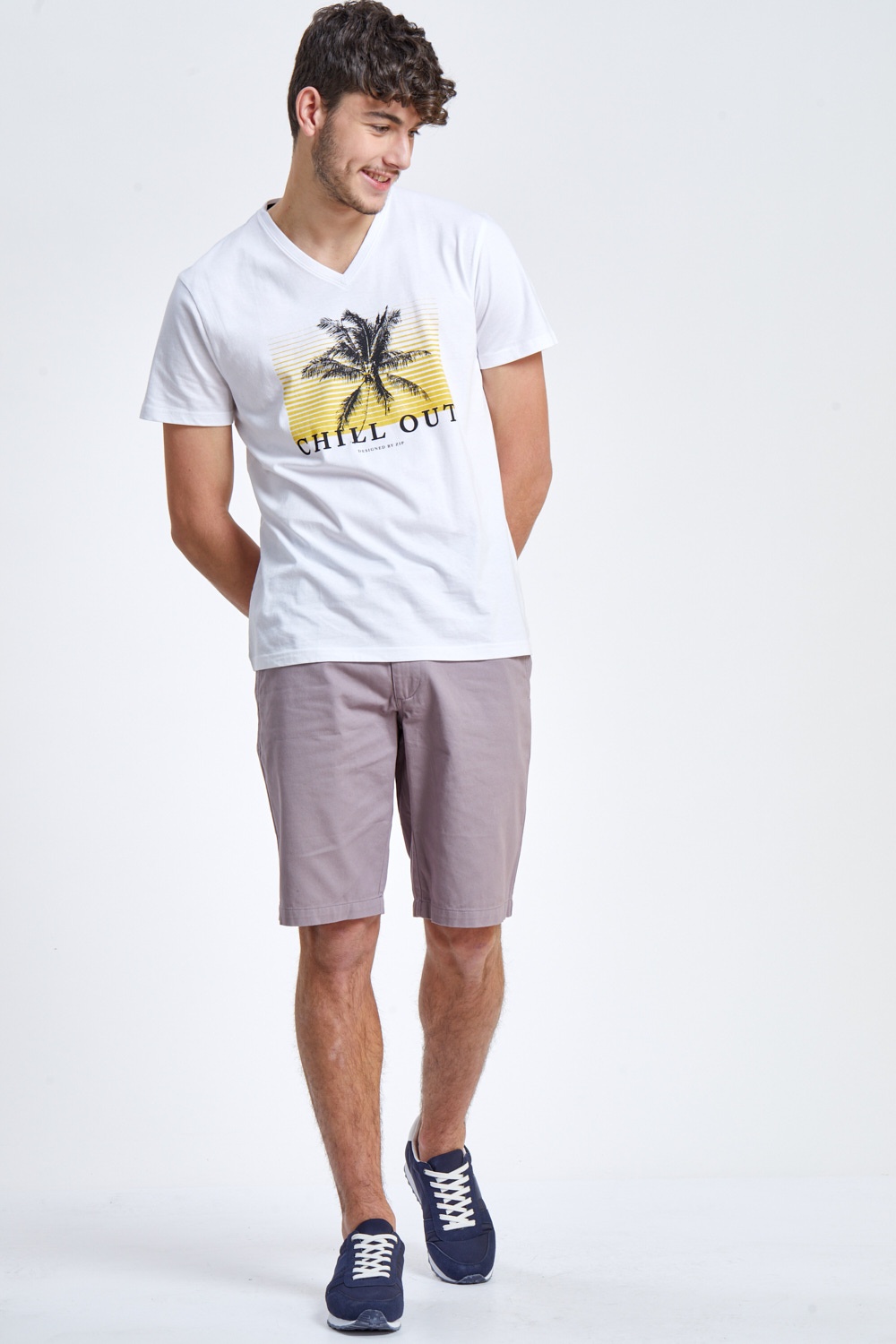 חולצת טי עם מפתח צוואר Y בצבע קונטרסטי