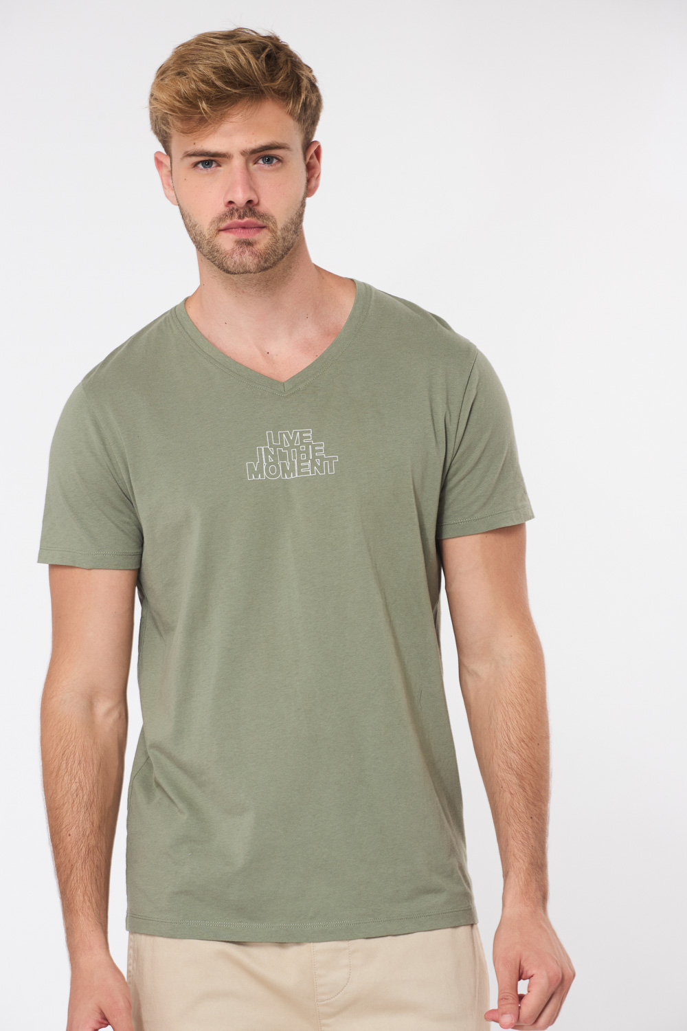 חולצת טי הדפס LIVE IN THE MOMENT