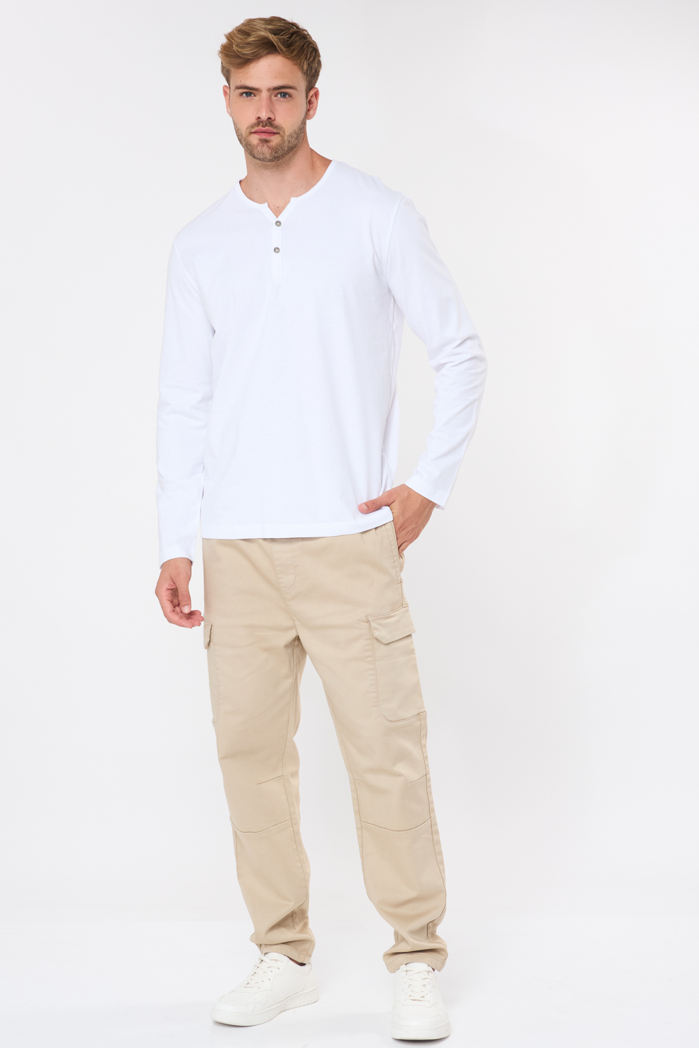 חולצת טי צווארון Y - לבן