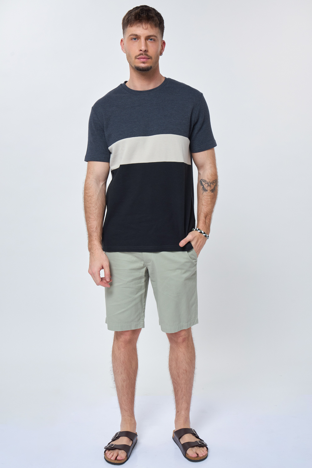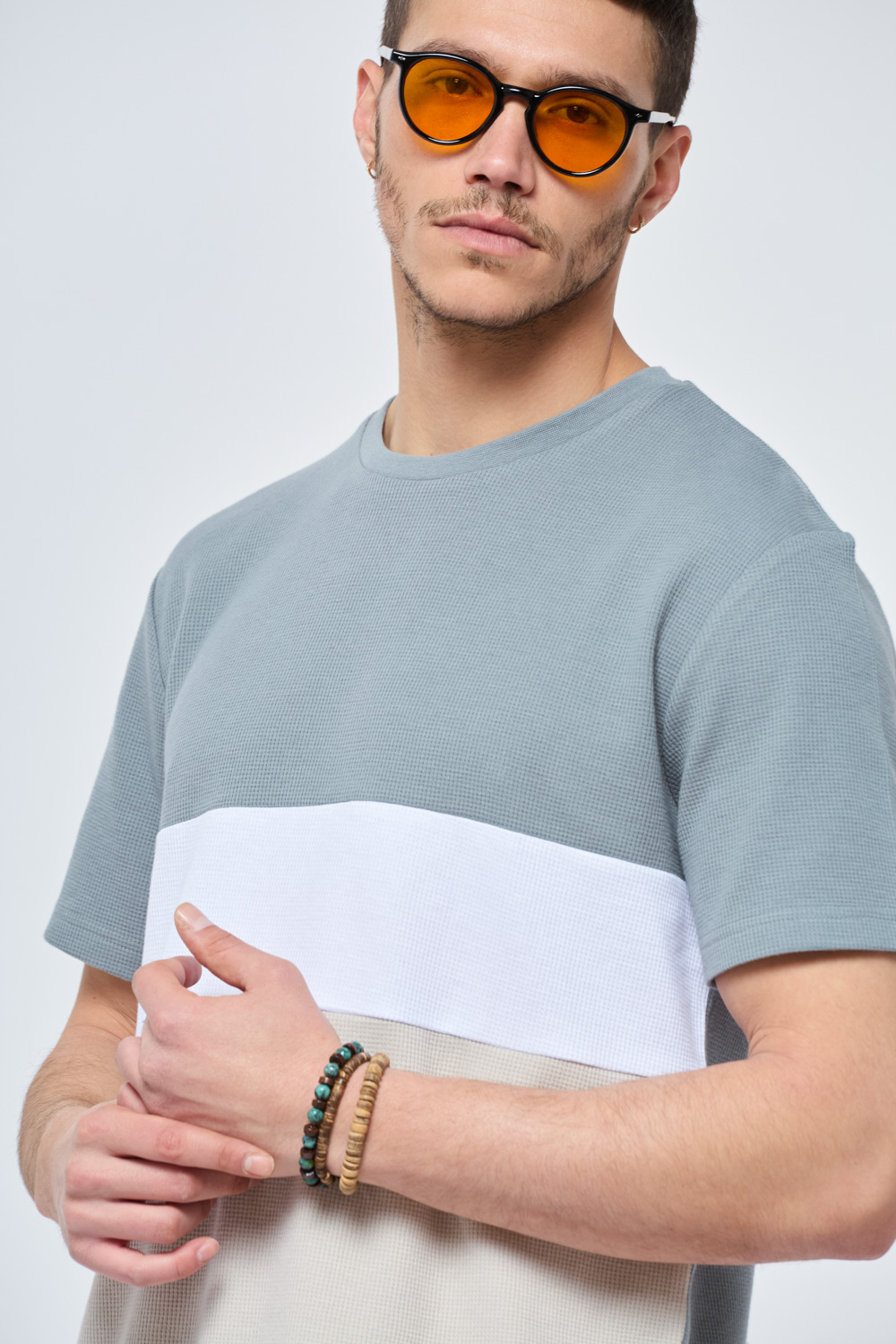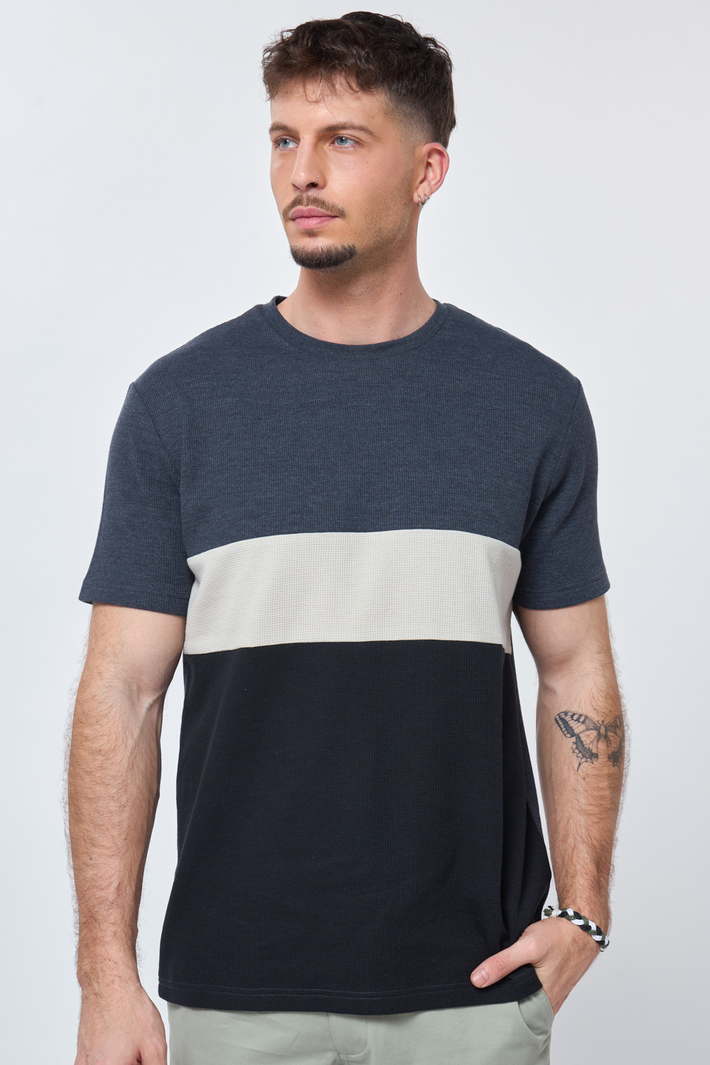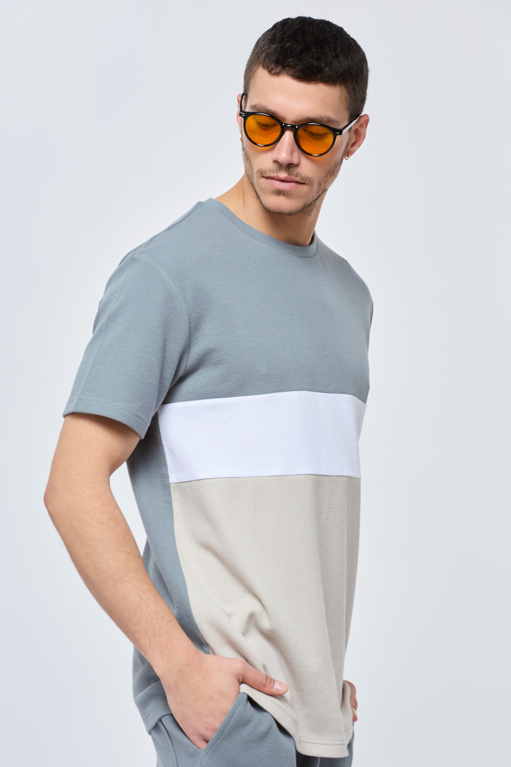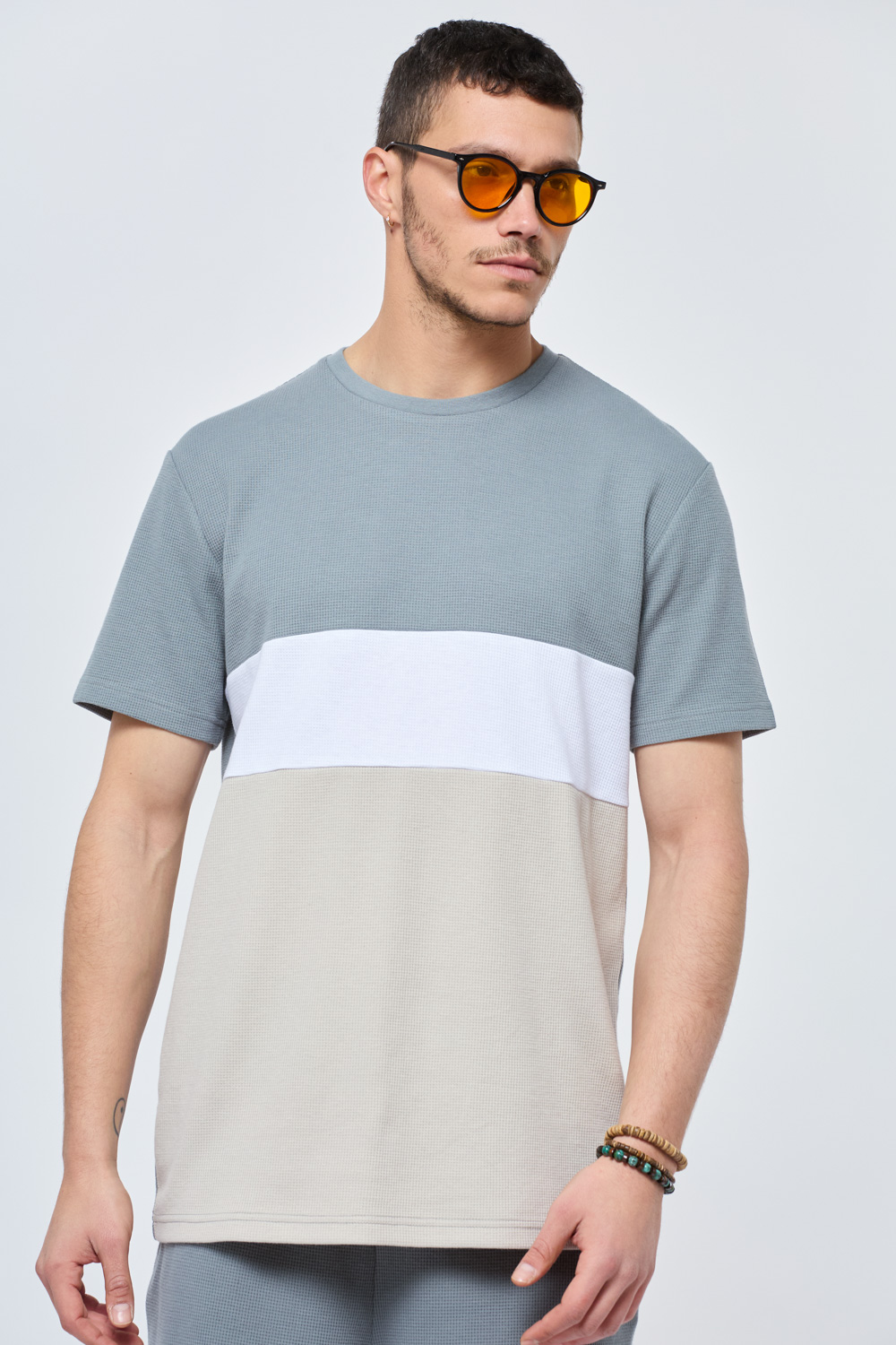 חולצת טי waffle קולור בלוק פסים