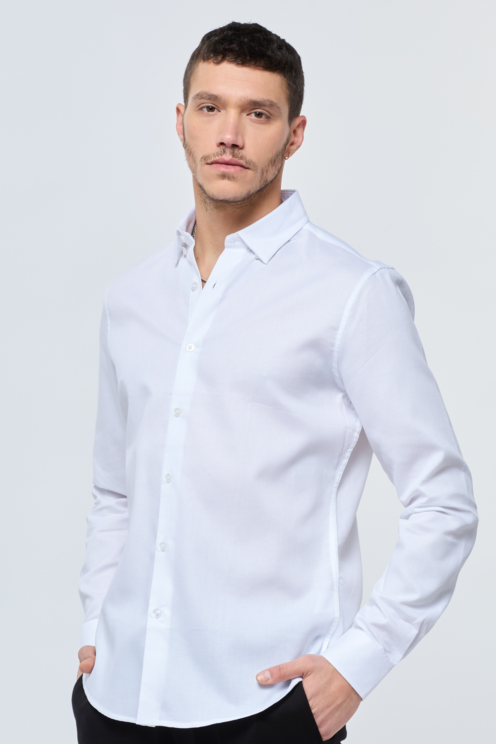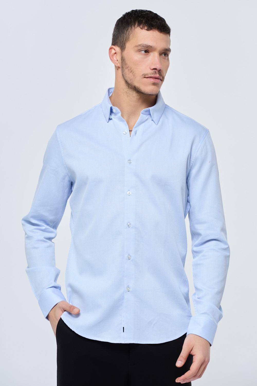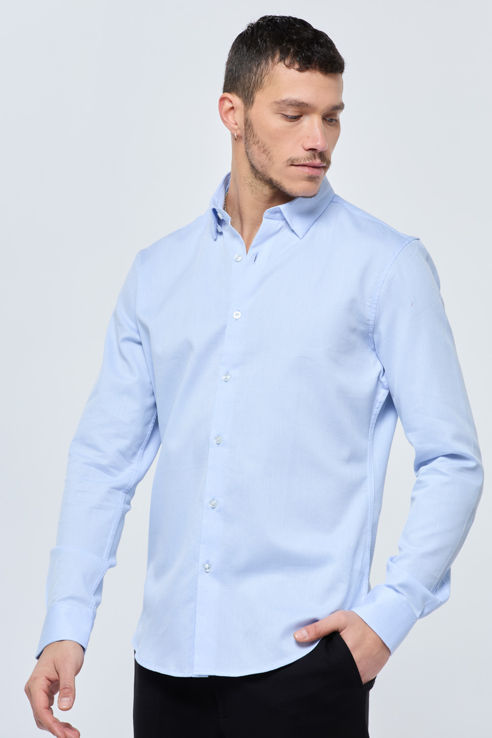 חולצת מכופתרת בד טקסטורה מחויט
