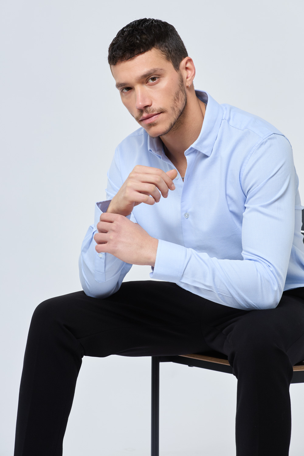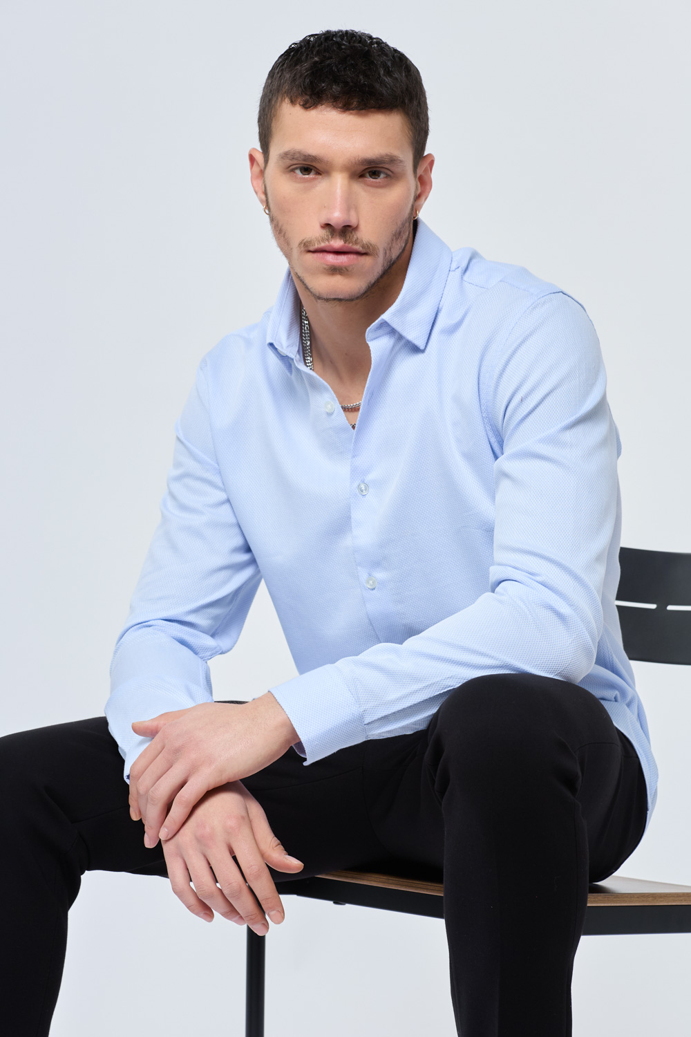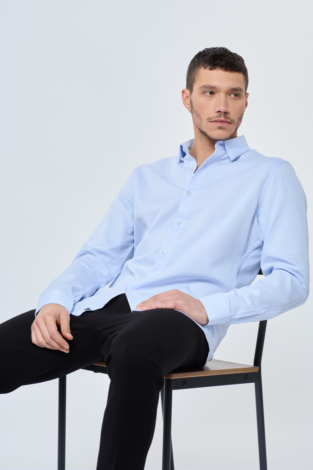 חולצת מכופתרת בד טקסטורה מחויט