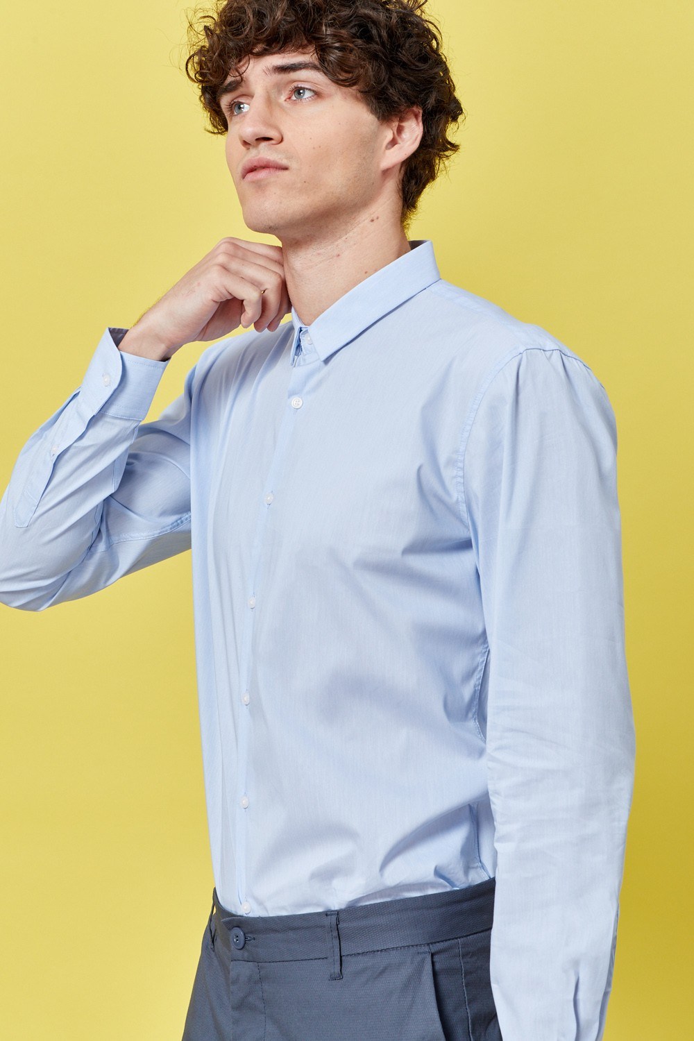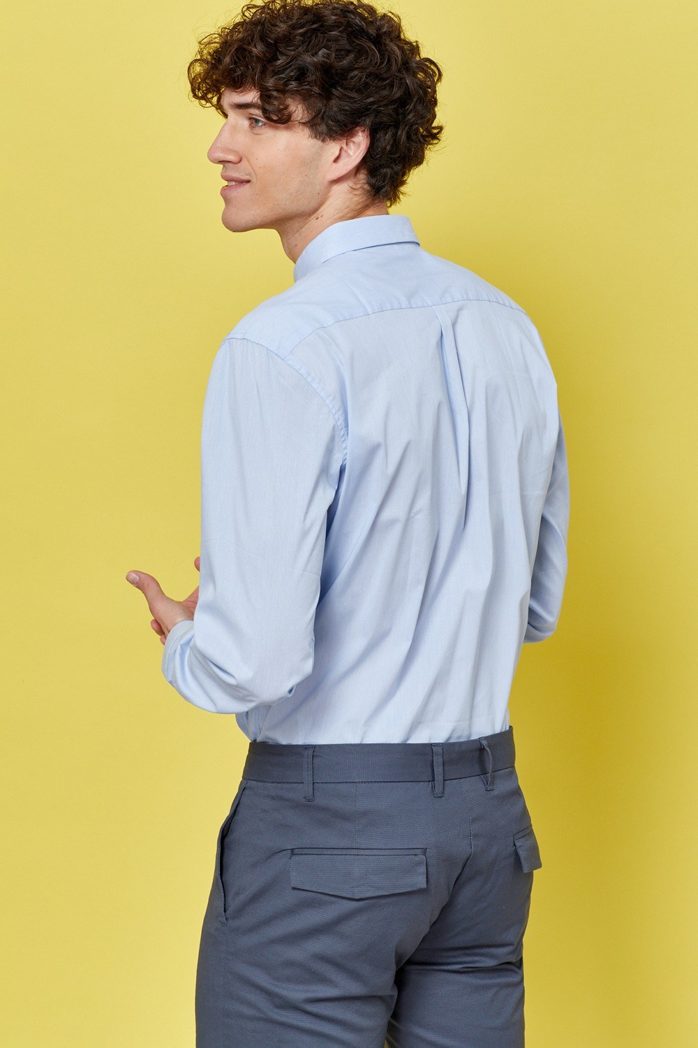 | חולצה מכופתרת בד תכלת עם טקסטורה גזרה רגילה standard fitהרכב בד: 71% כותנה, 25% ניילון, 4% ספנדקסגובה דוגמן: 192 ס"ממידה דוגמן: L |