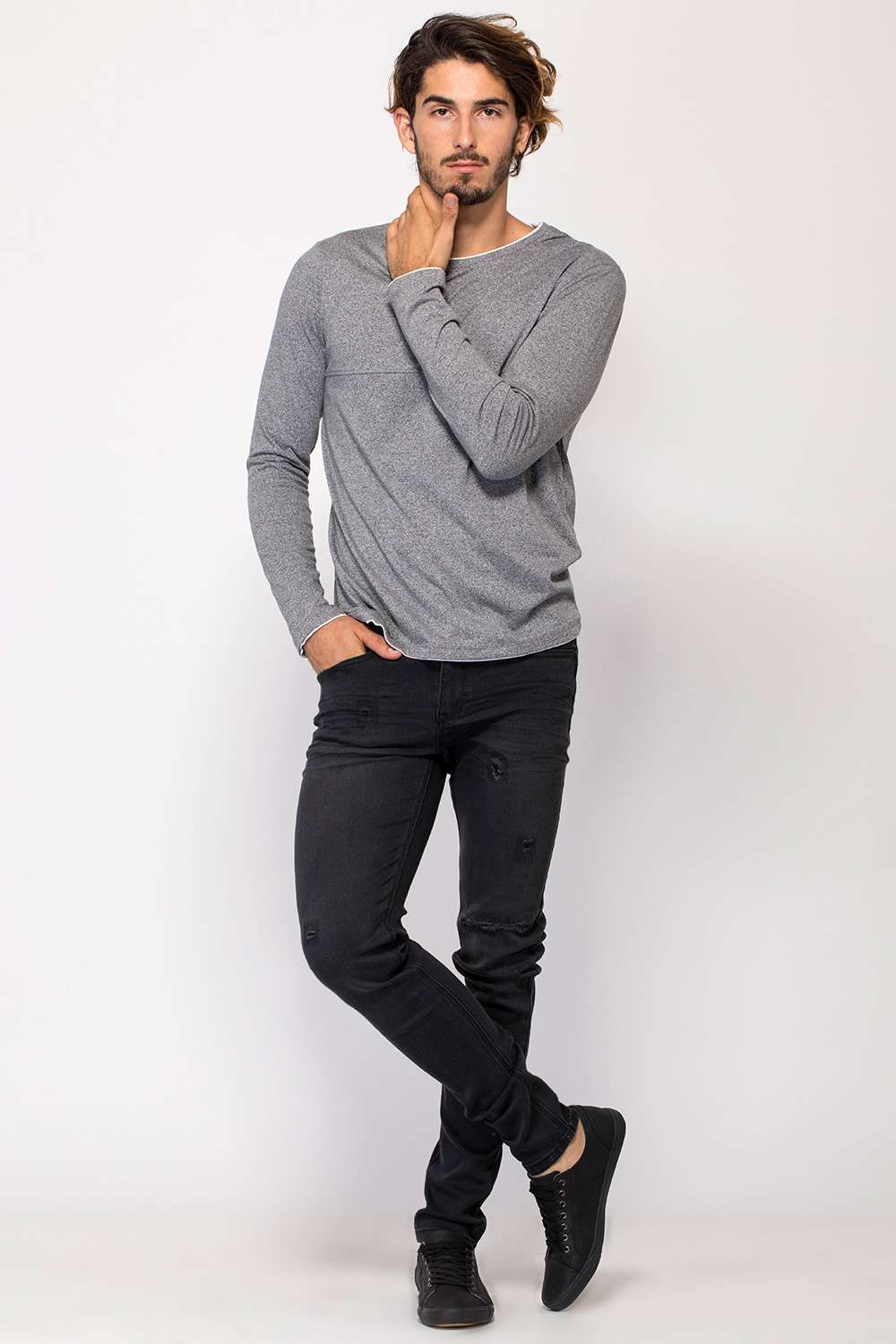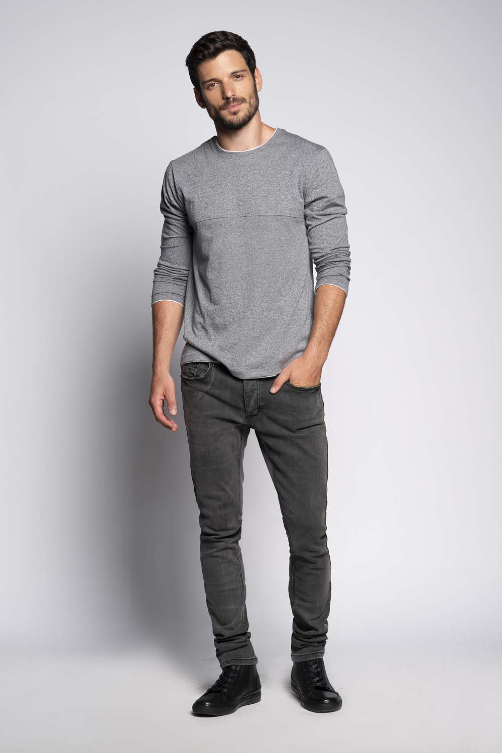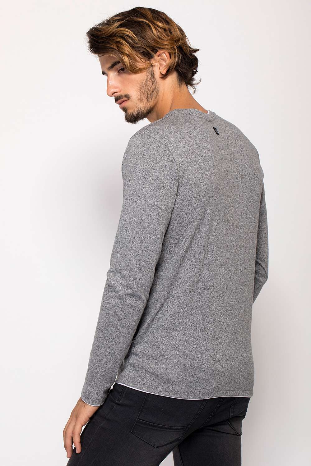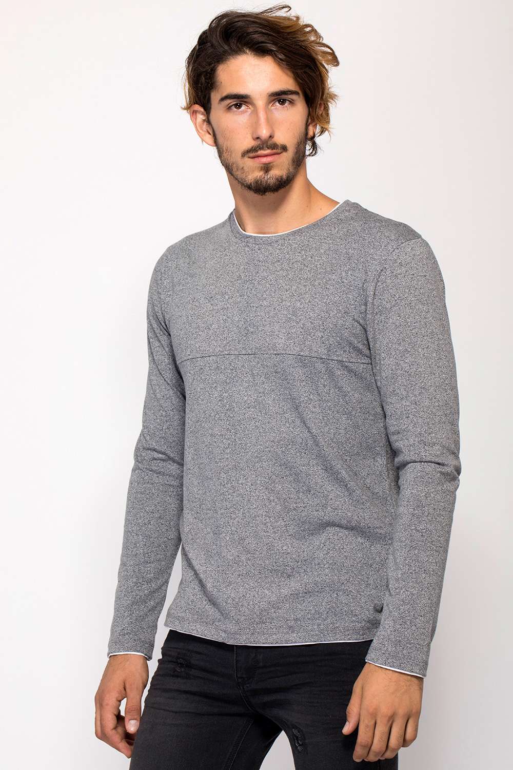 חולצת טי בטקסטורת מלאנג´ ובמראה שכבות