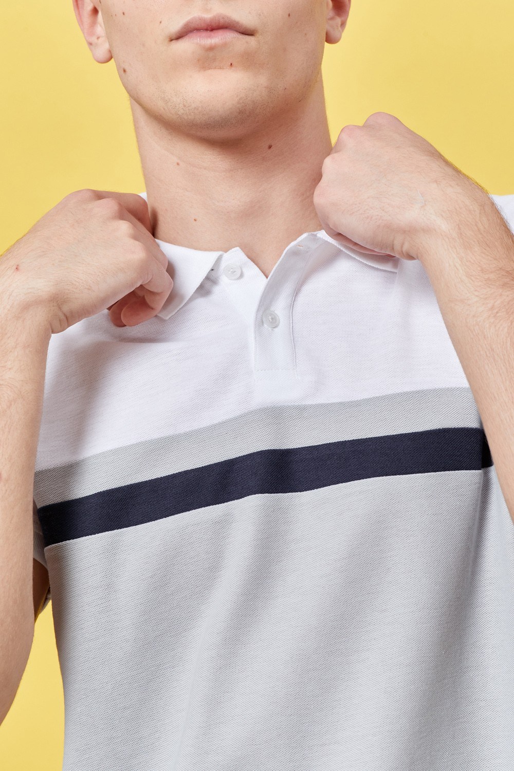 | חולצת פולו פיקה שילוב צבעים עם פס חזה הרכב בד: 35% כותנה, 65% פוליאסטר גובה דוגמן: מידה דוגמן: 183 ס"מ מידה דוגמן: M |