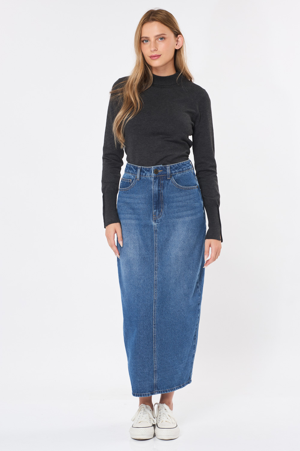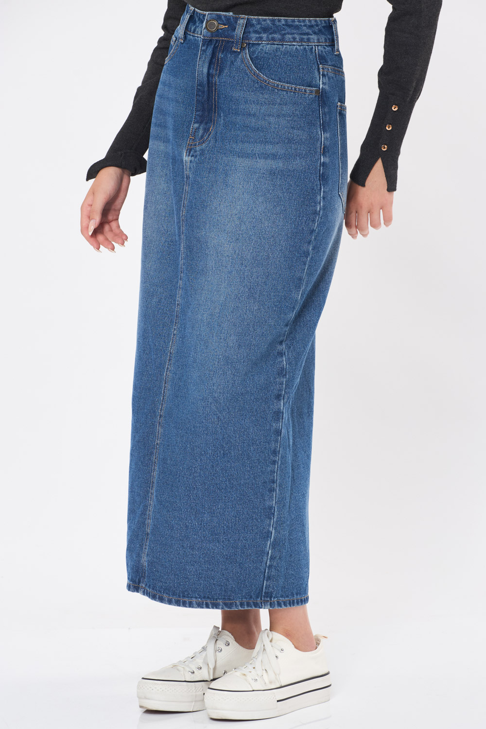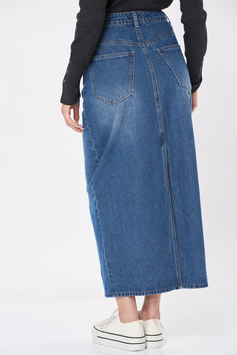 חצאית ג'ינס מקסי שליץ אחורי – כחול