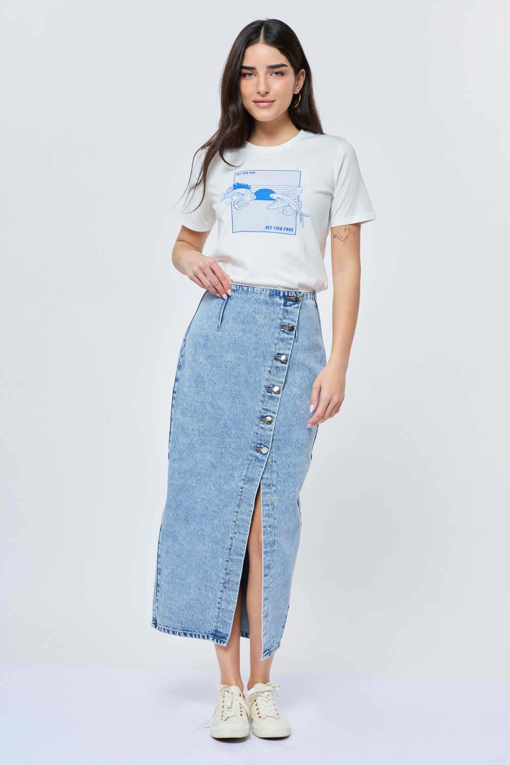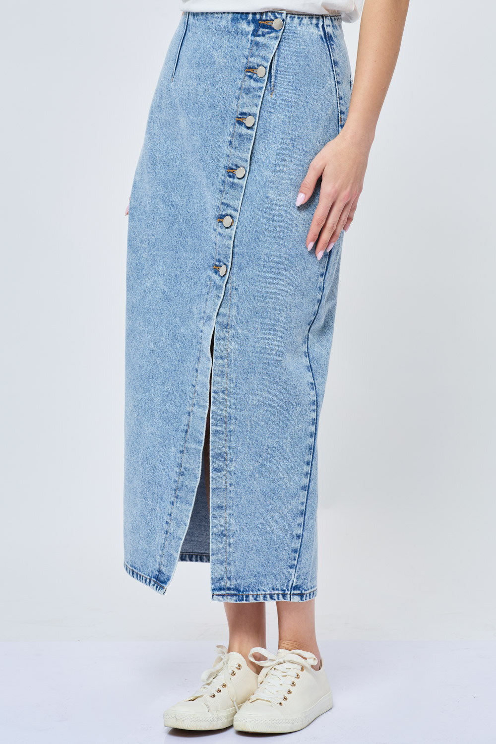 חצאית ג'ינס כפתורים באלכסון