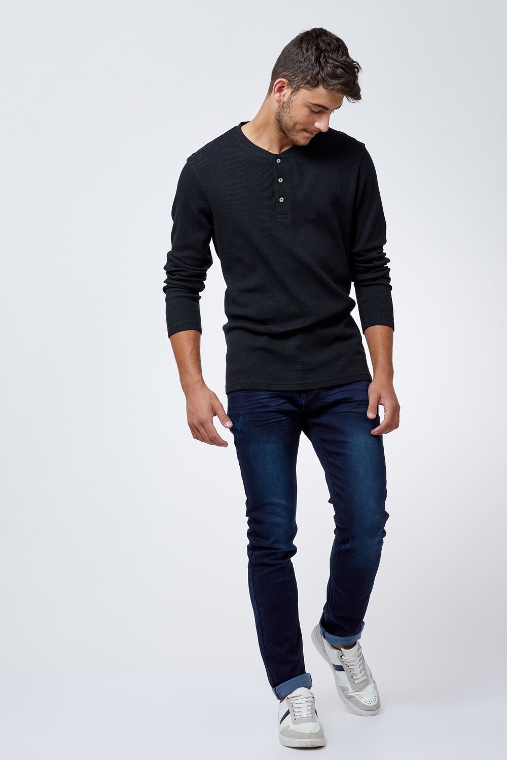 טי ואפל צווארון סבא כפתורים