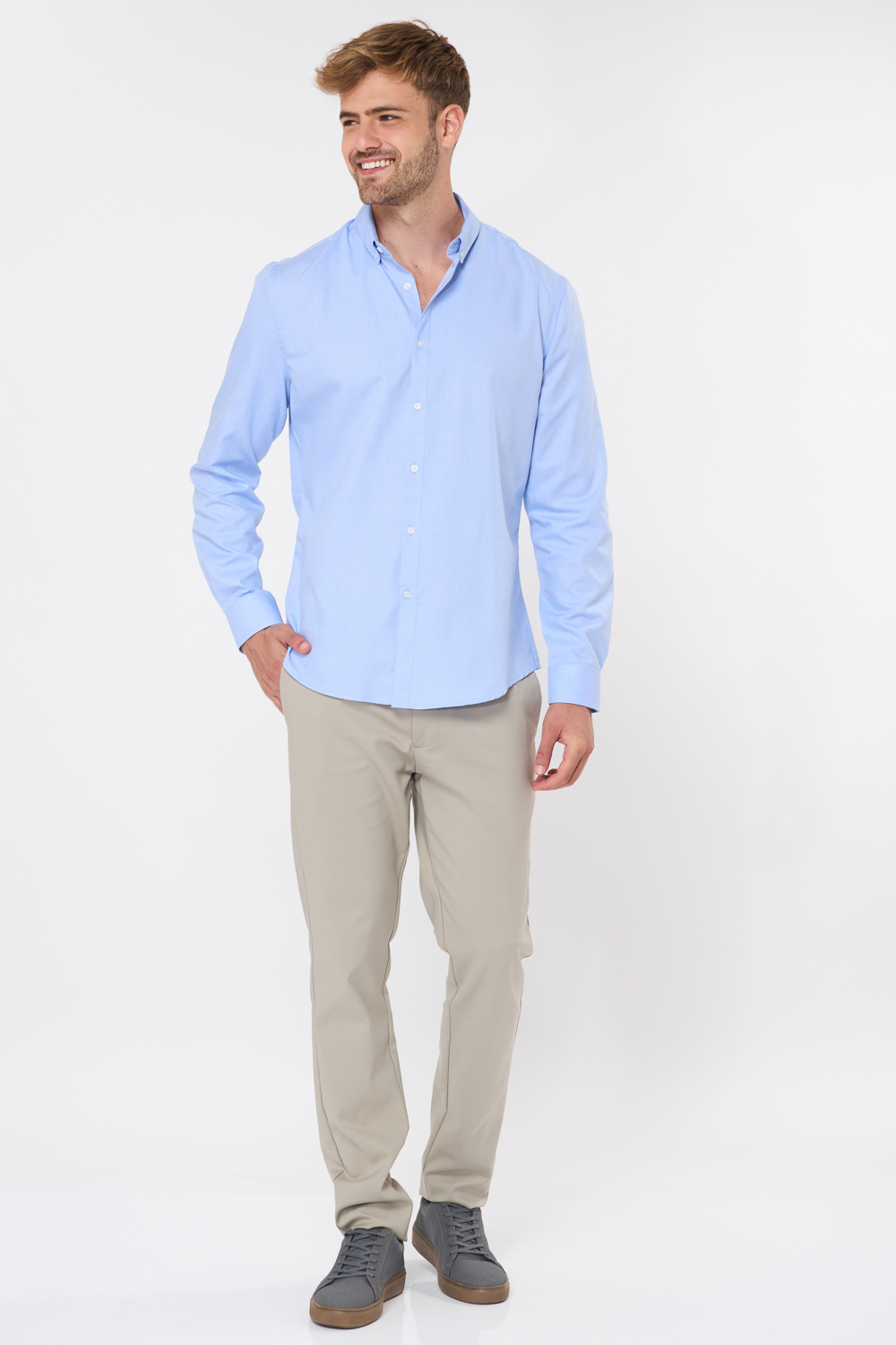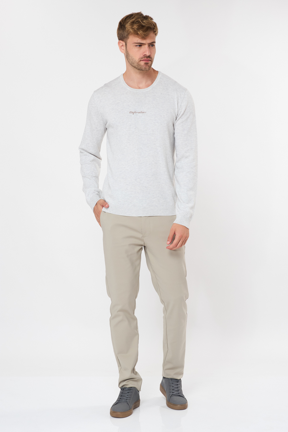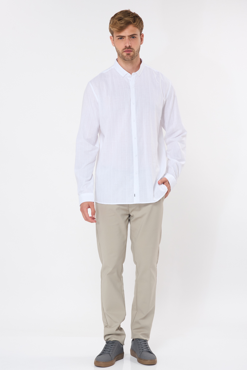 מכנסי אלגנט חלקים בגזרה צרה – אבן