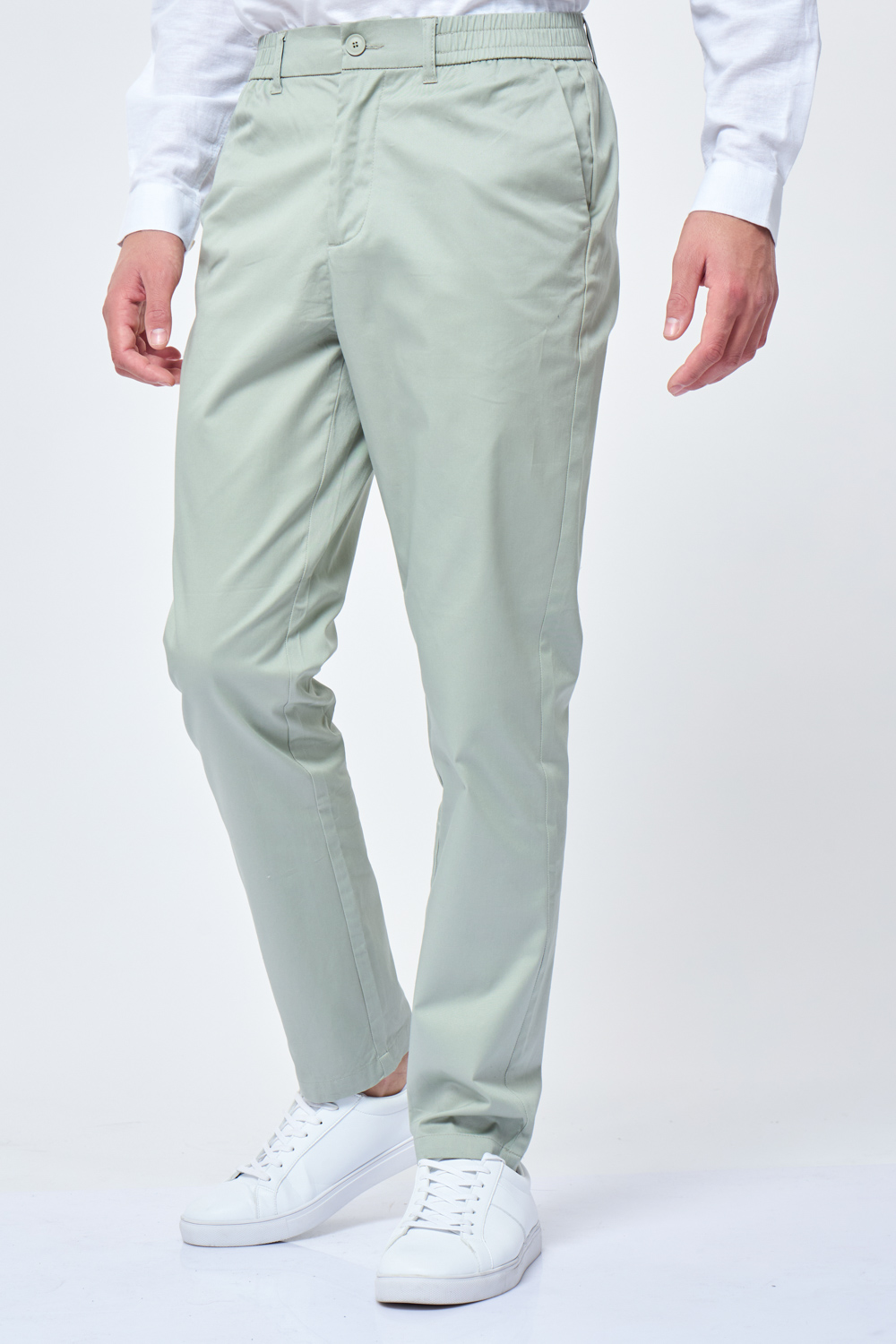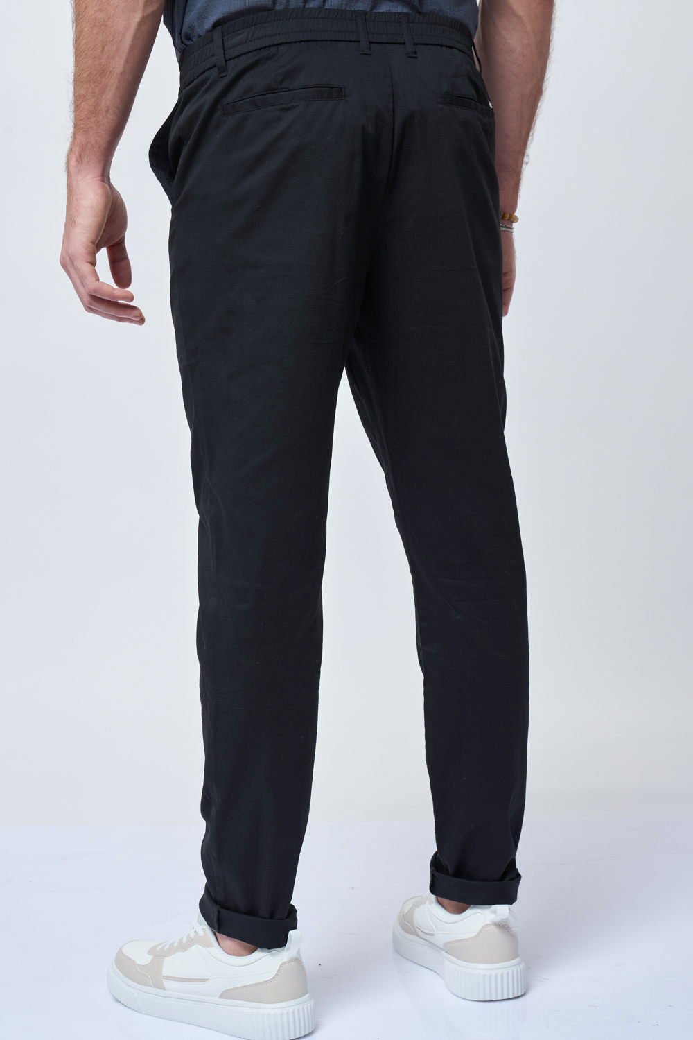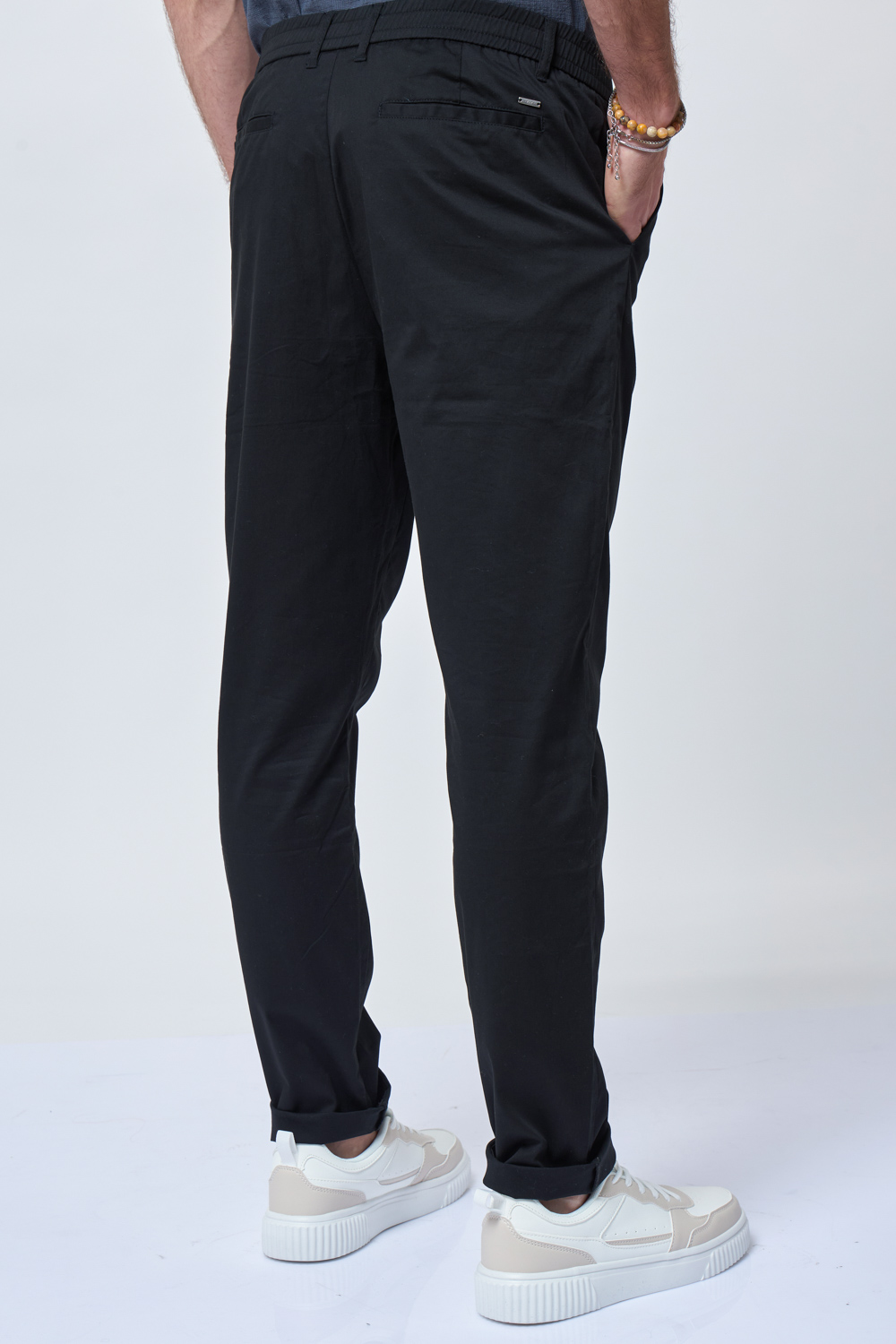 מכנס אלגנט עם חגורת גומי נוחה בד דק עם גימור בראש איכותי גזרה צרה