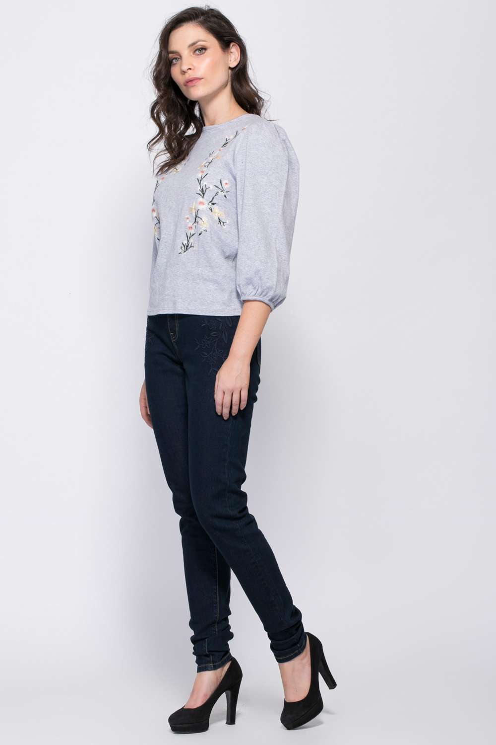 מכנסי ג'ינס סקיני בשילוב רקמה
