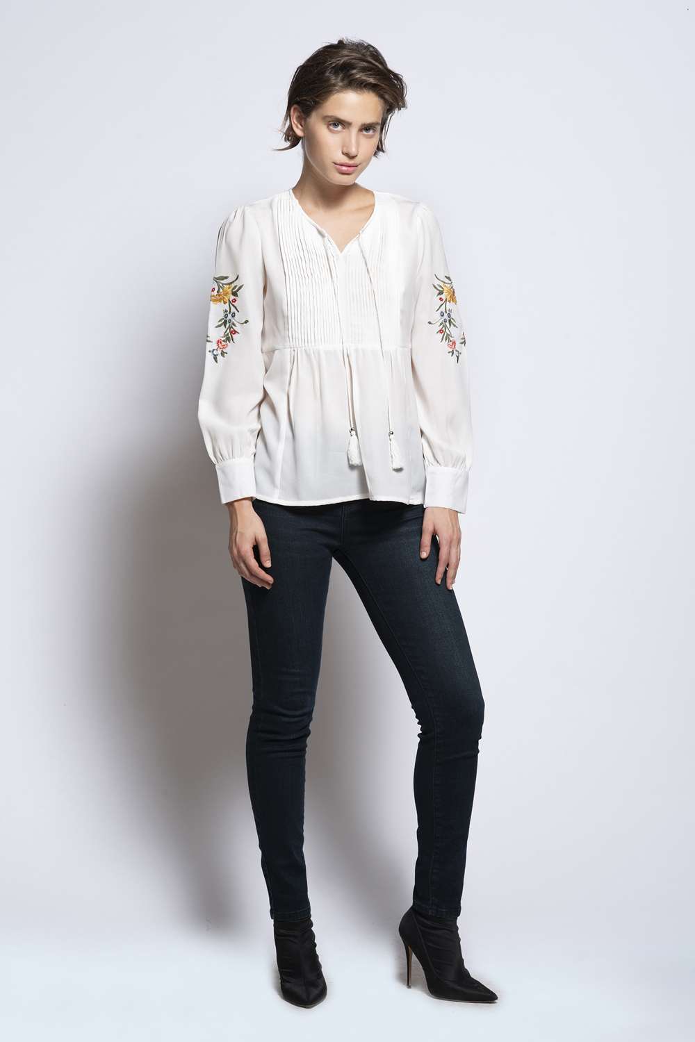 מכנסי סקיני חמישה כיסים בצללית צרה ומחמיאה, מכפלת צרה המתלבשת על הקרסול, שילוב כפתור וניטים מוכספים. גזרה הדוקה, מחטבת והתאמה מושלמת לגוף.