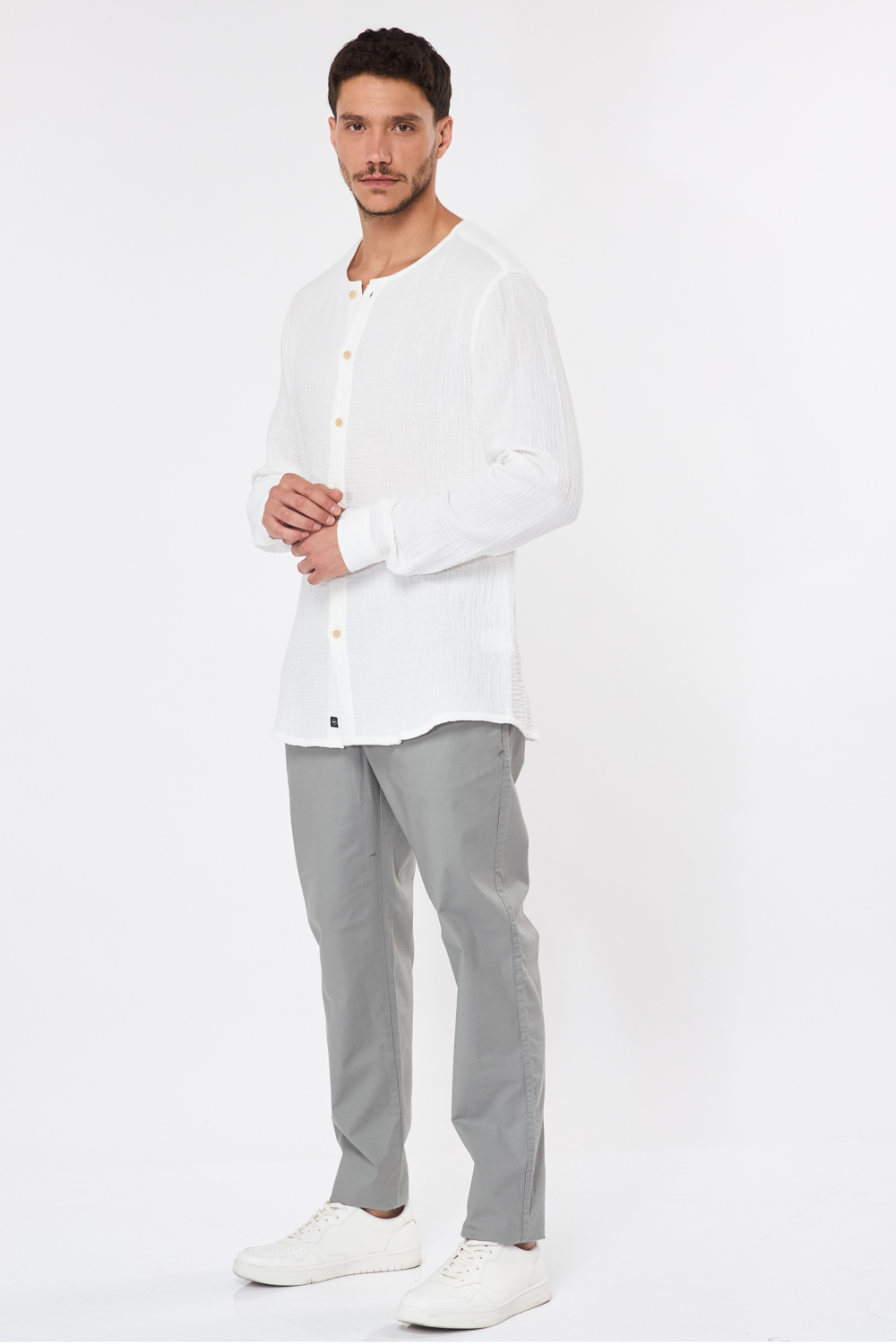 מכנסי טקסטורה עם גומי – ירוק אפרפר