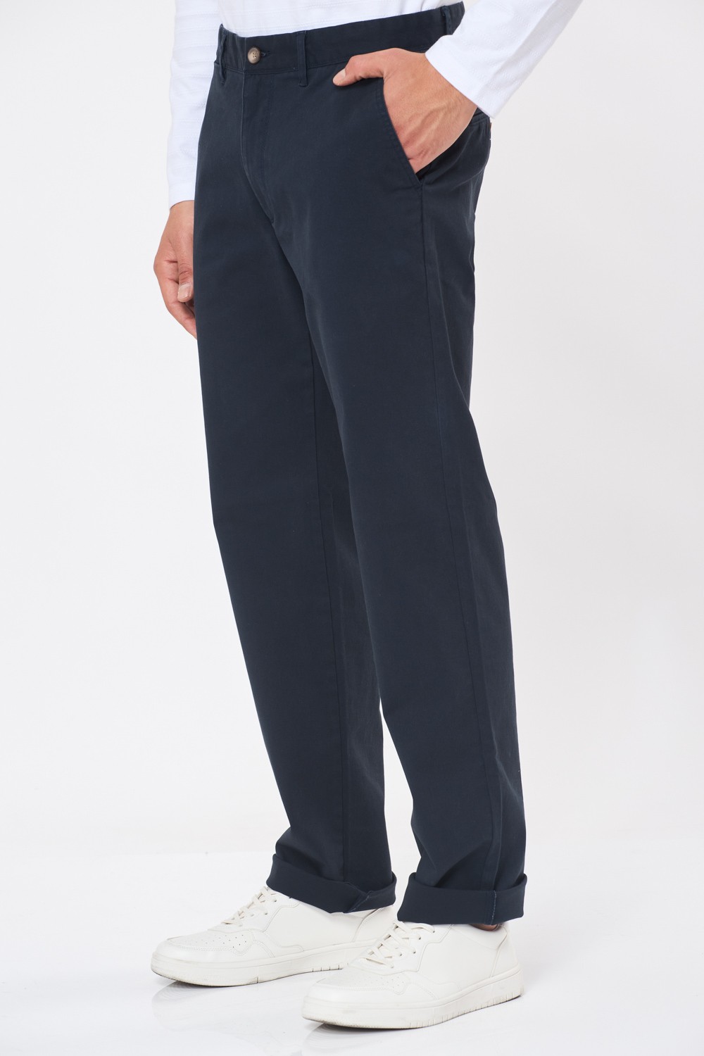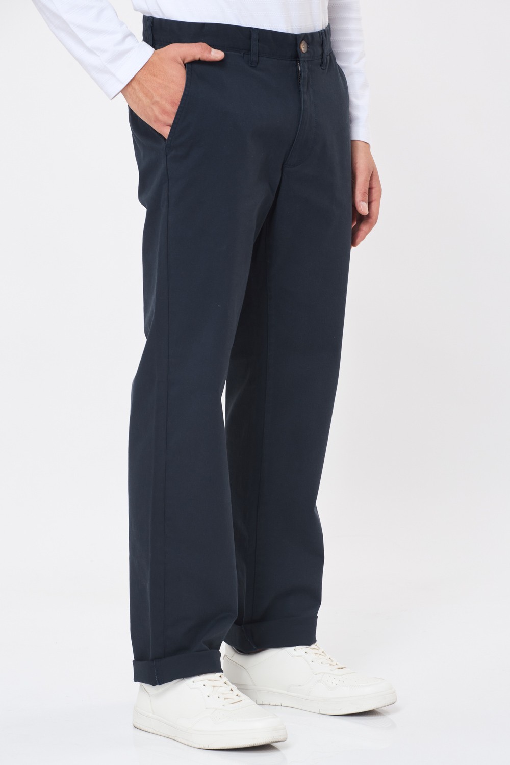 מכנסי צ'ינו בסיסים גימור פיצ' גזרה ישרה - כחול נייבי