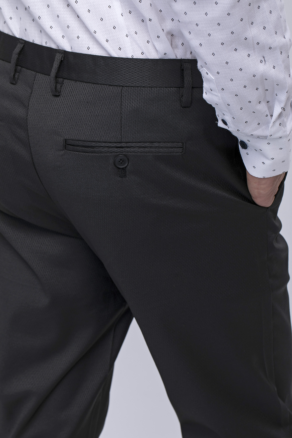 מכנס שחור אלגנט עם דוגמא בד. הרכב בד: 83% פוליאסטר 15% ויסקוזה