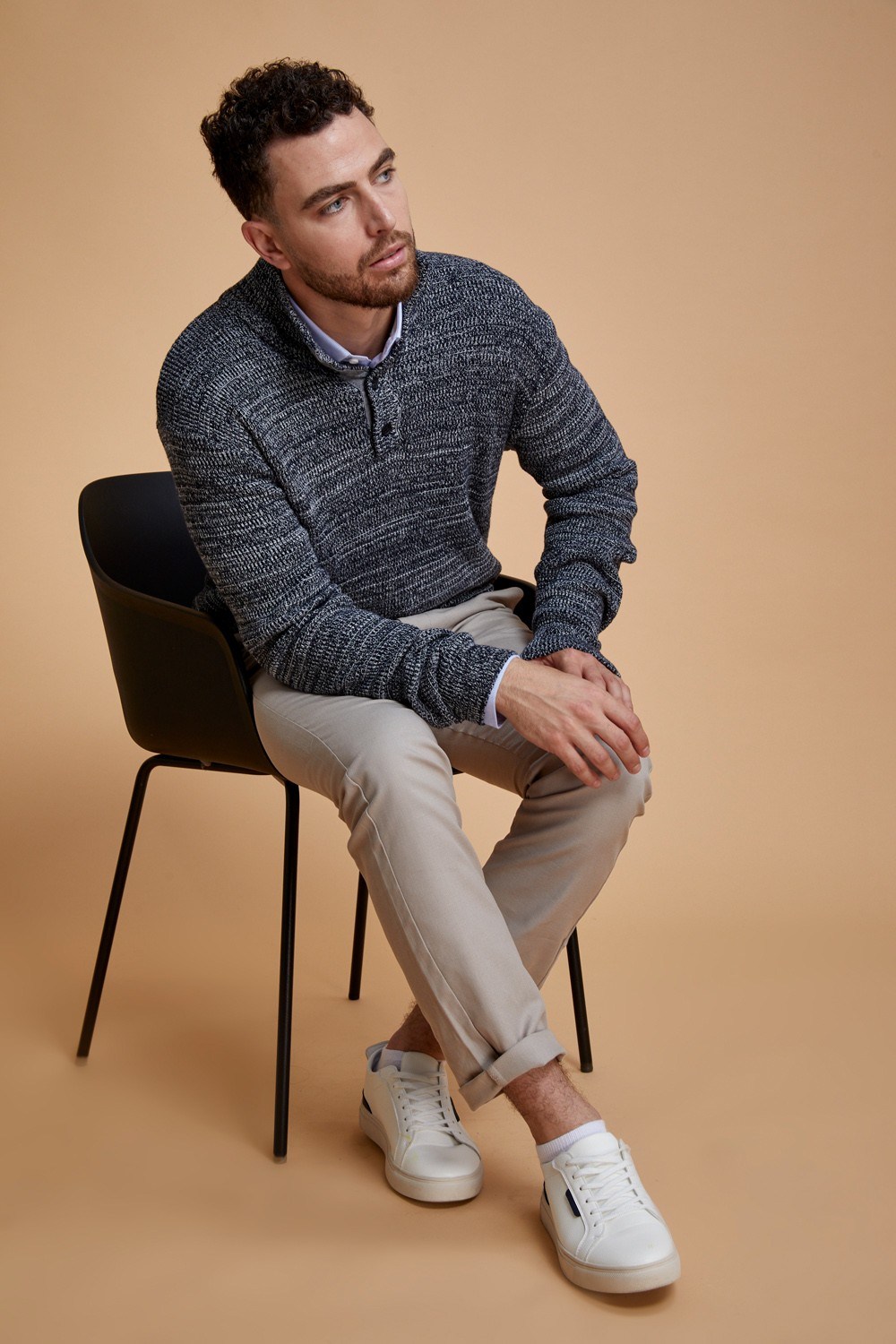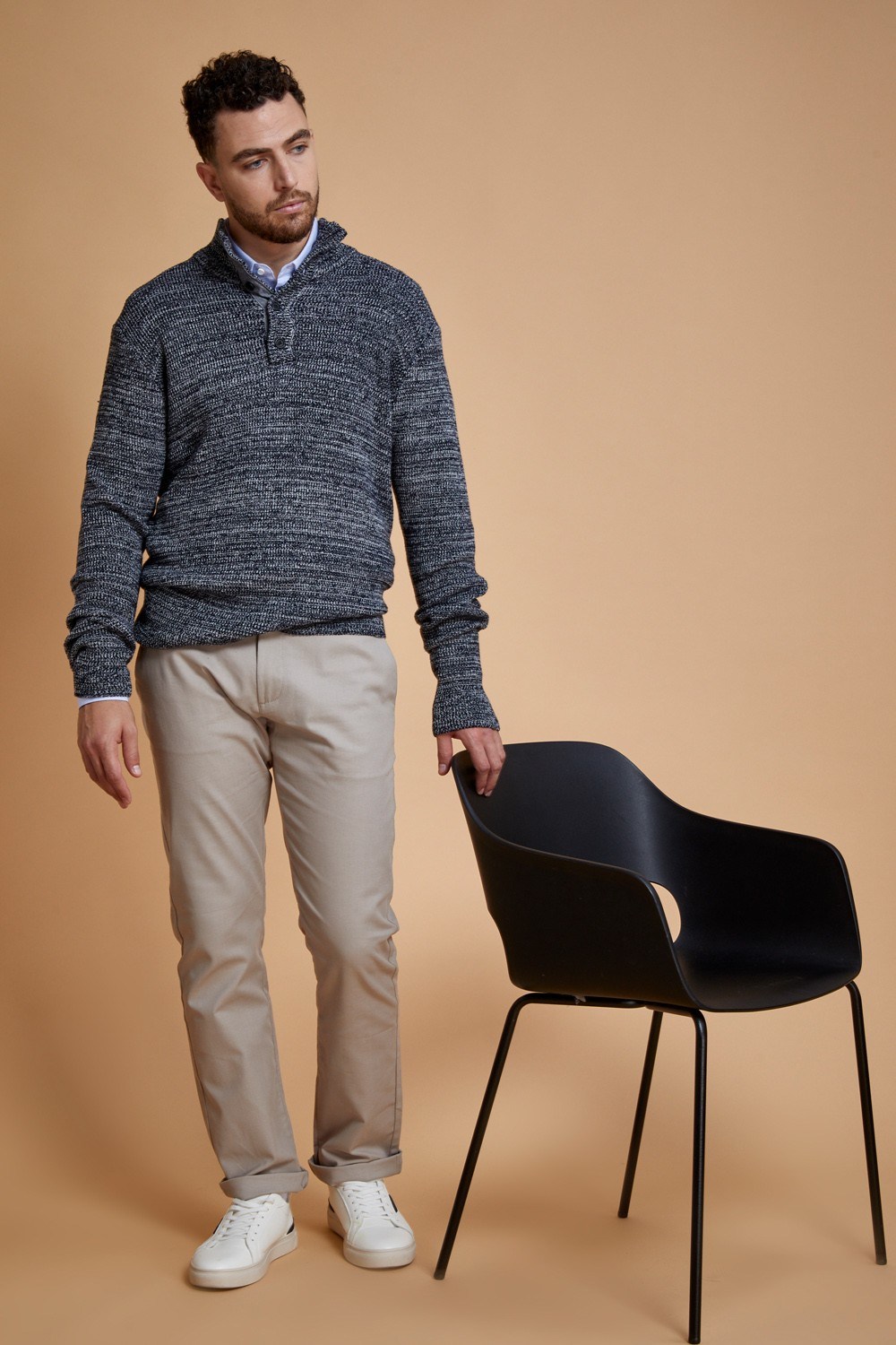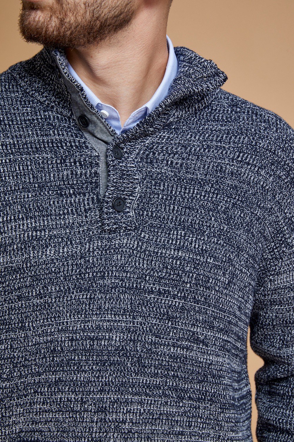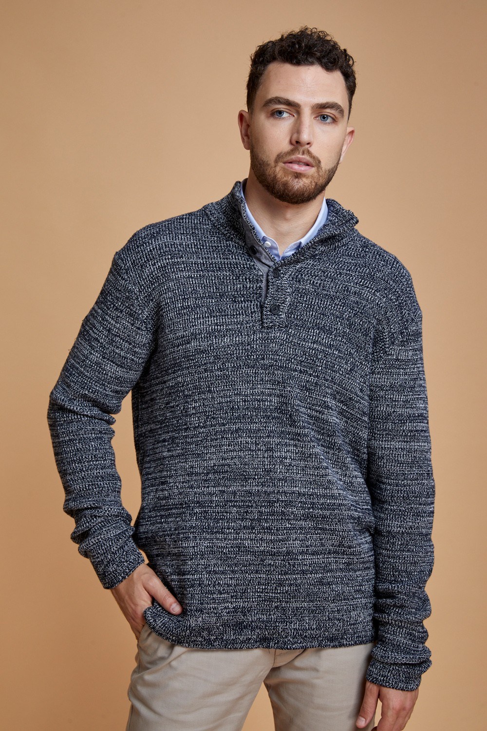 סוודר עבה צווארון גבוה עם כפתרה